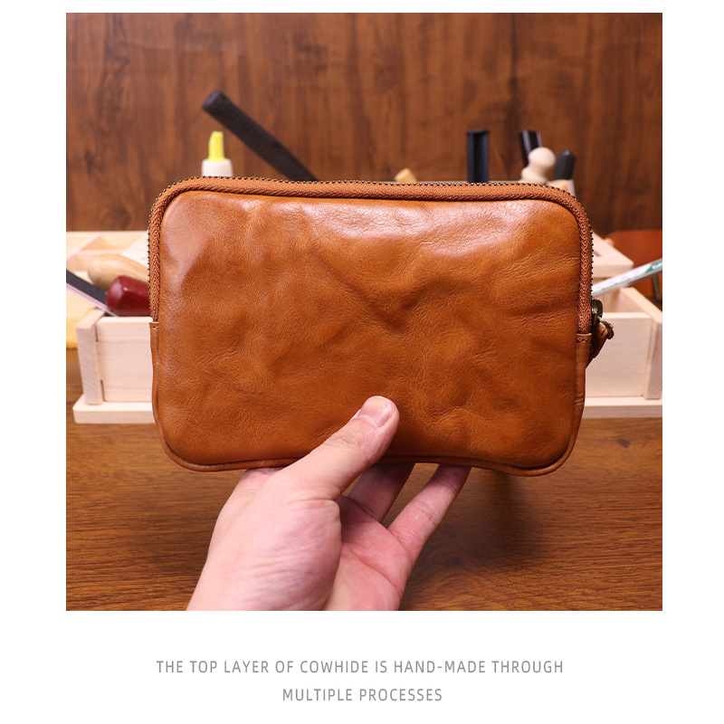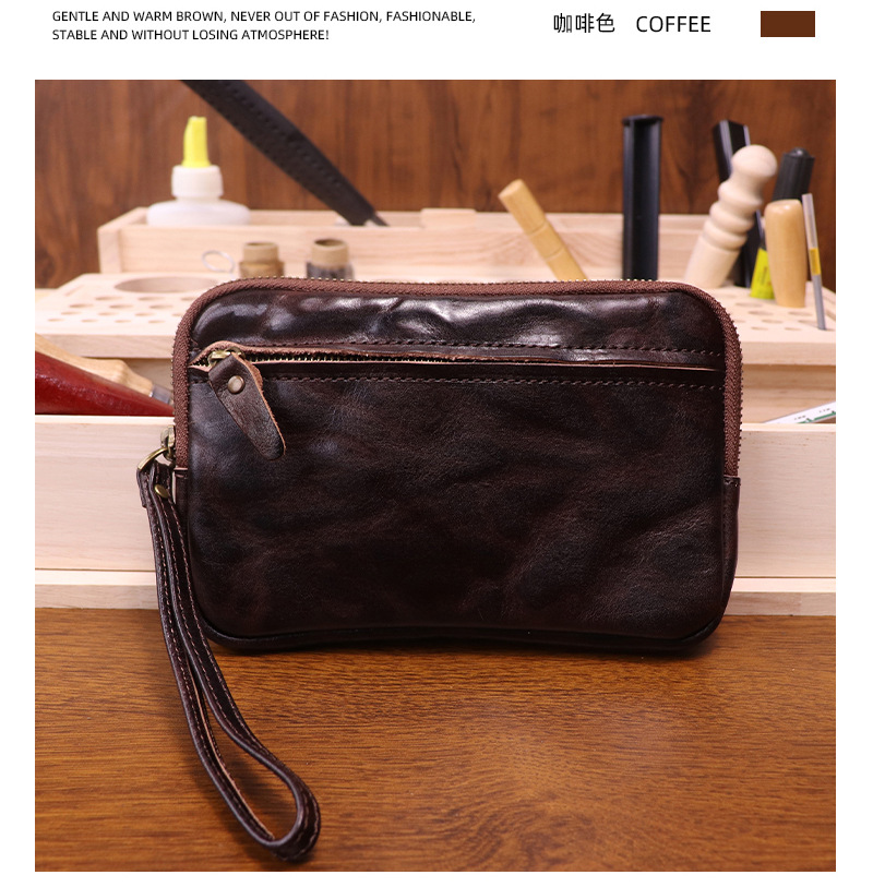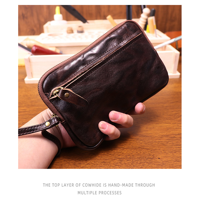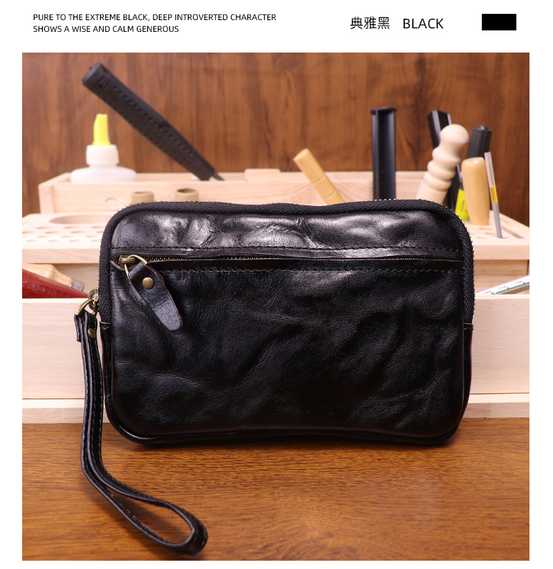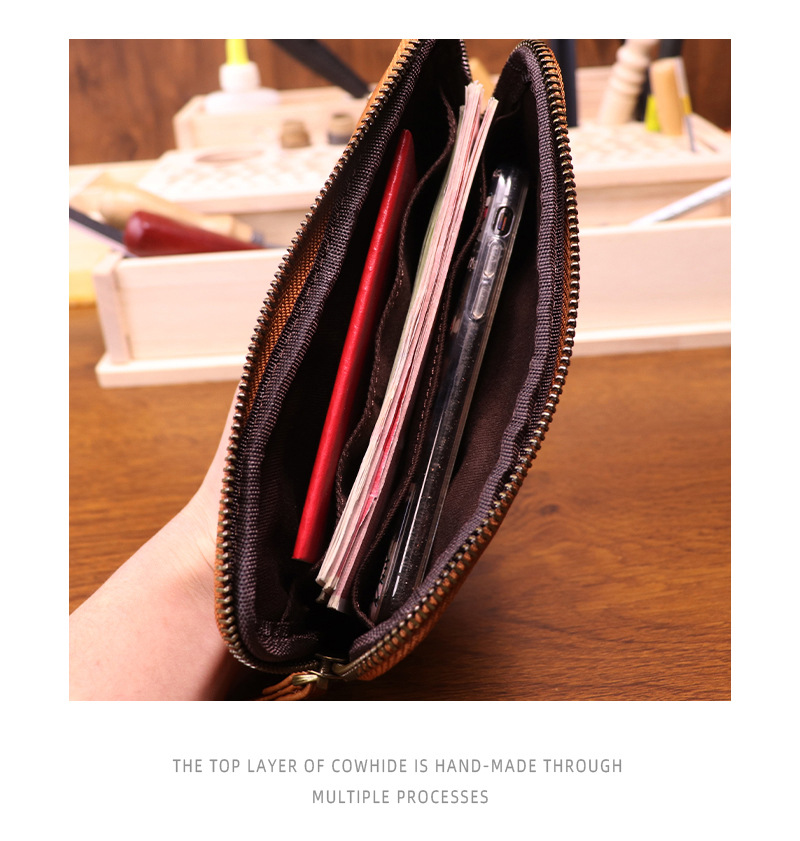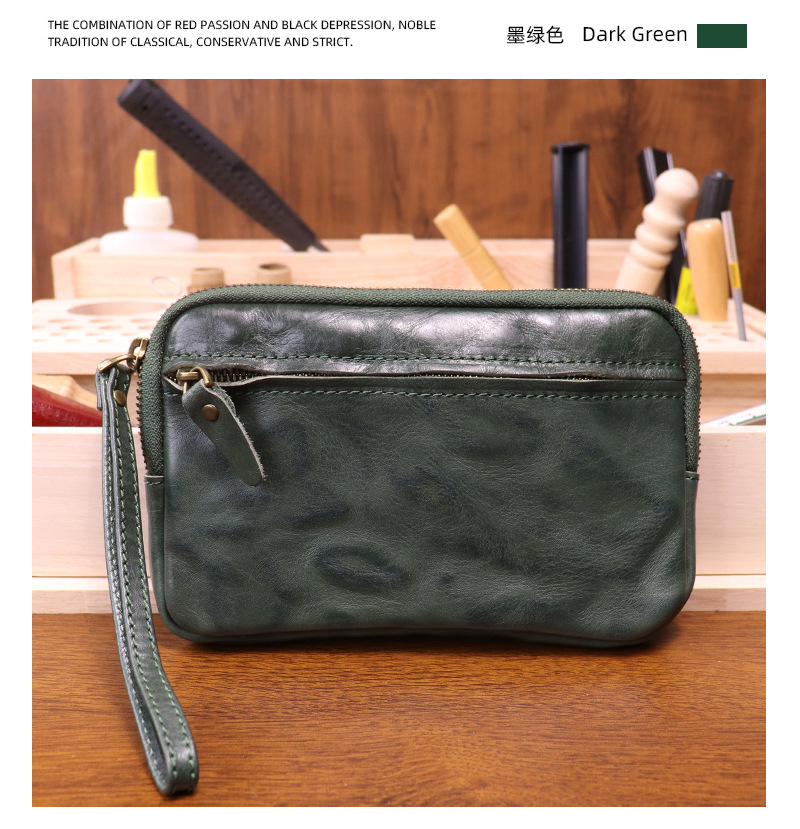 2024 새로운 스타일 복고풍 수제 컬러 Cowhide 클러치 백 여성 복고풍 간단한 대용량 휴대 전화 가방스토어 가기