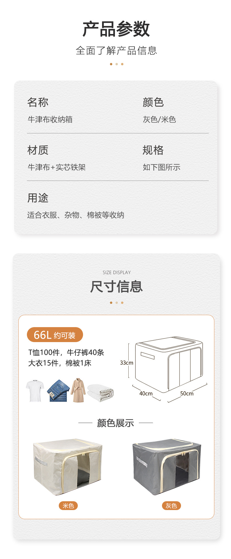 66L 보관 및 마감 상자 제조 업체 도매 옥스포드 천 베이너 상자 앞 창 모조 린넨 스틸 프레임 더블 휴대용 대용량스토어 가기