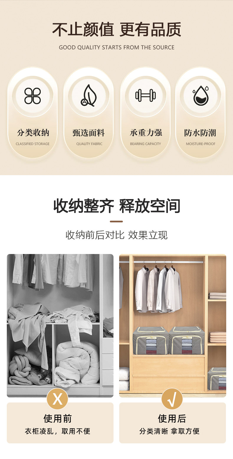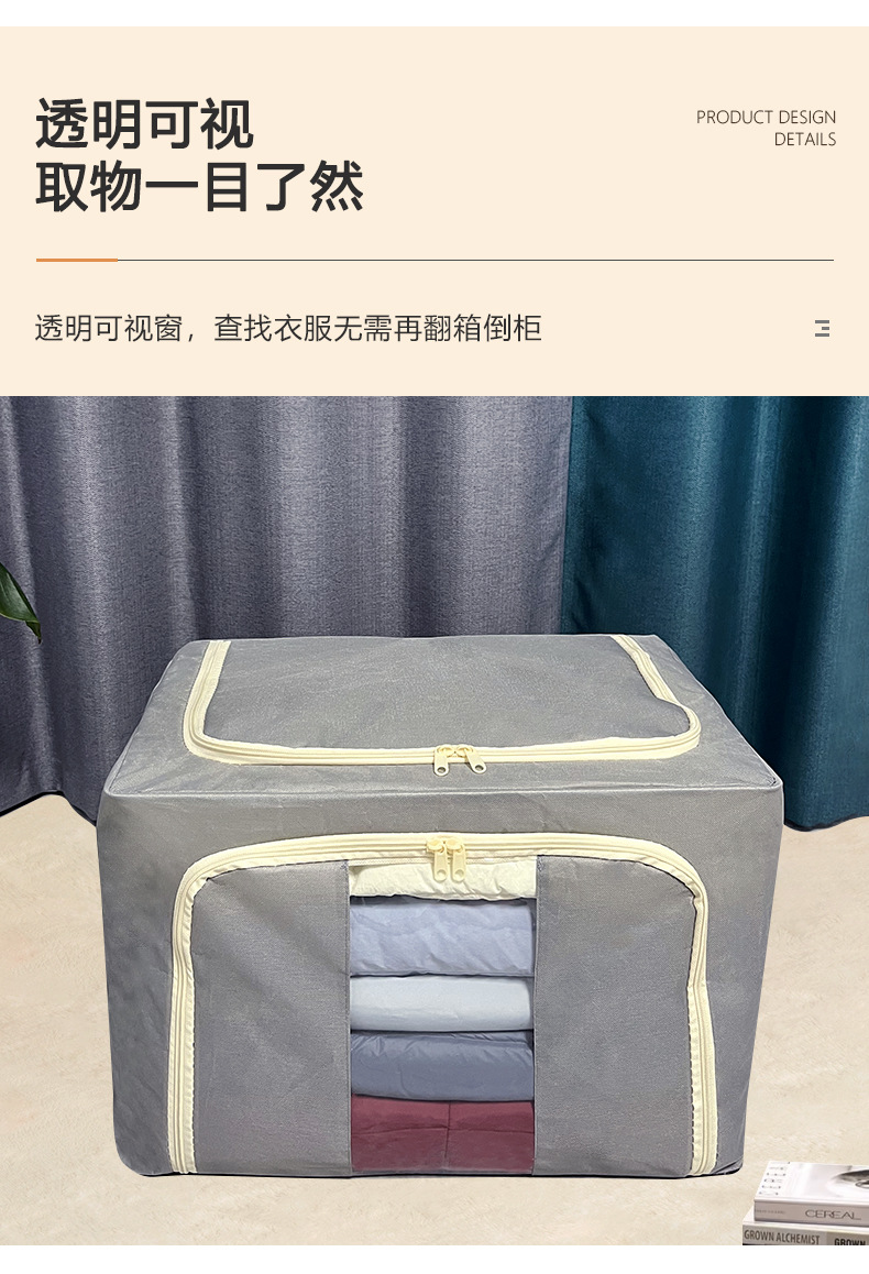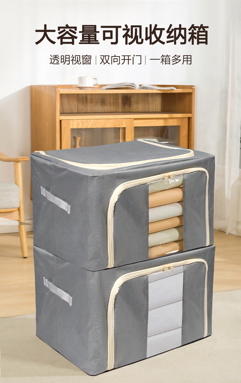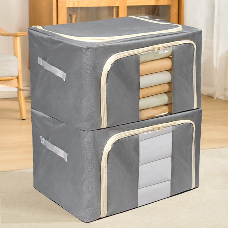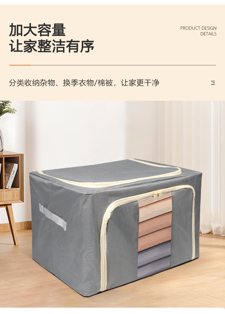 66L 보관 및 마감 상자 제조 업체 도매 옥스포드 천 베이너 상자 앞 창 모조 린넨 스틸 프레임 더블 휴대용 대용량
