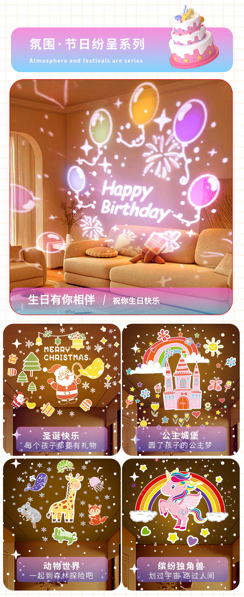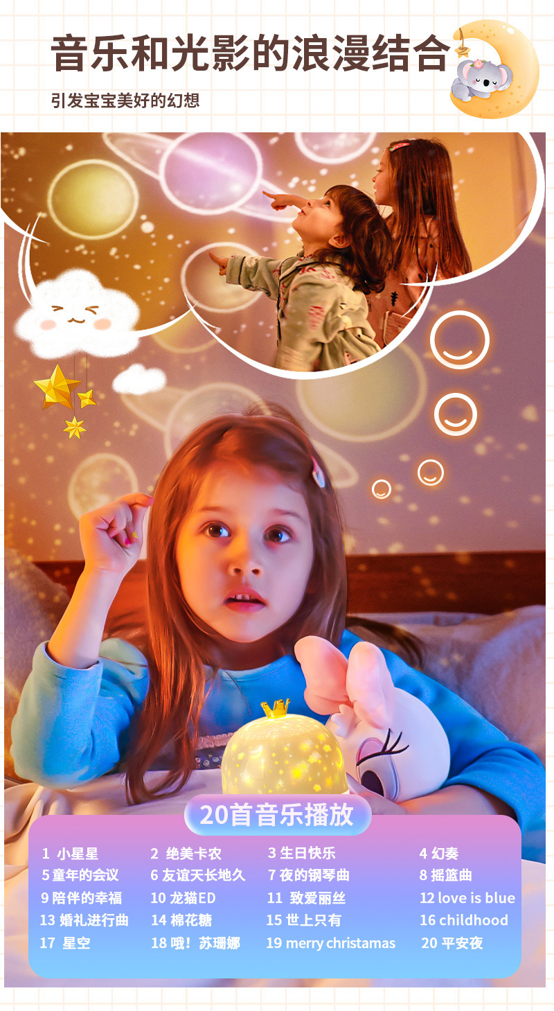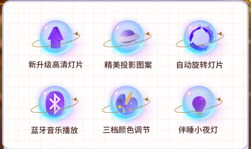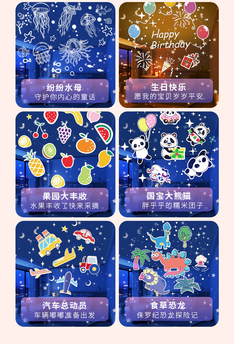 产品标配:梦幻皇冠投影灯*1;USB电源线*1;说明书*1;投影胶片*21;遥控器*1(仅充电款)
