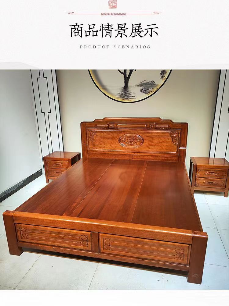 중국 로즈 우드 조각 단단한 나무 침대 1.8 미터 명나라와 청나라 왕조 고전 장내 및 테온 기술 골동품 1.5 미터 마스터 침실 더블 침대스토어 가기