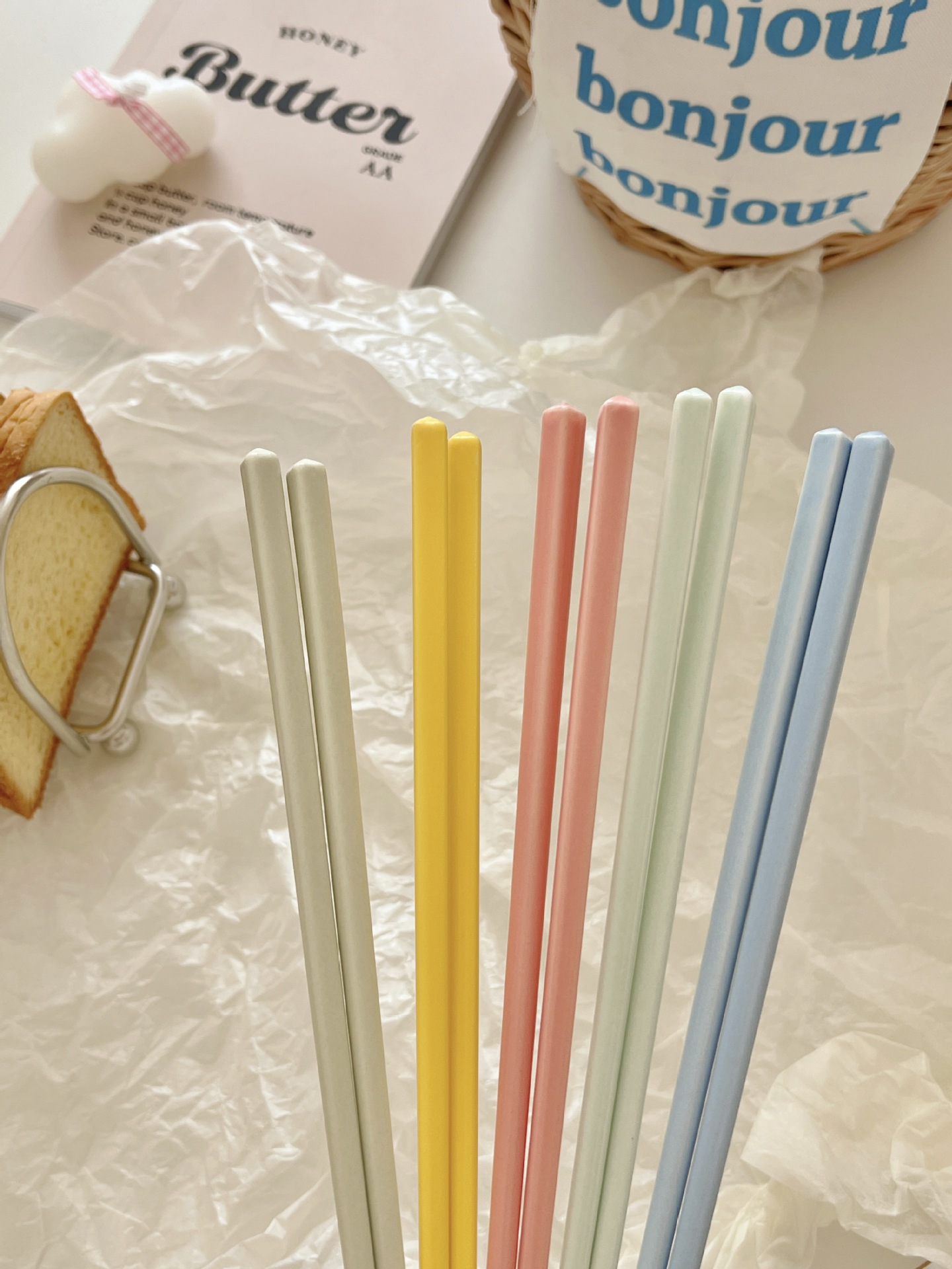[Guohe 도자기] 신선한 마카롱 컬러 1 인 젓가락 세라믹 젓가락 고온 내성 곰팡이 없음
