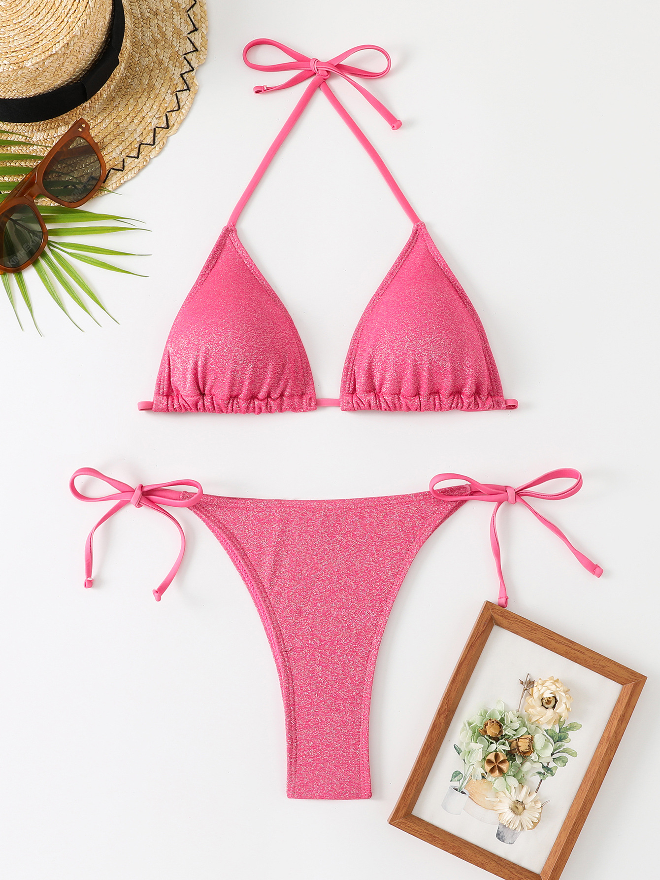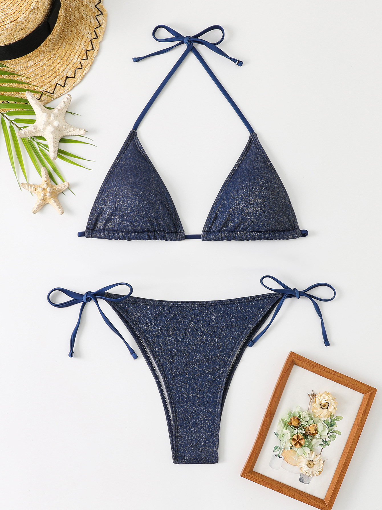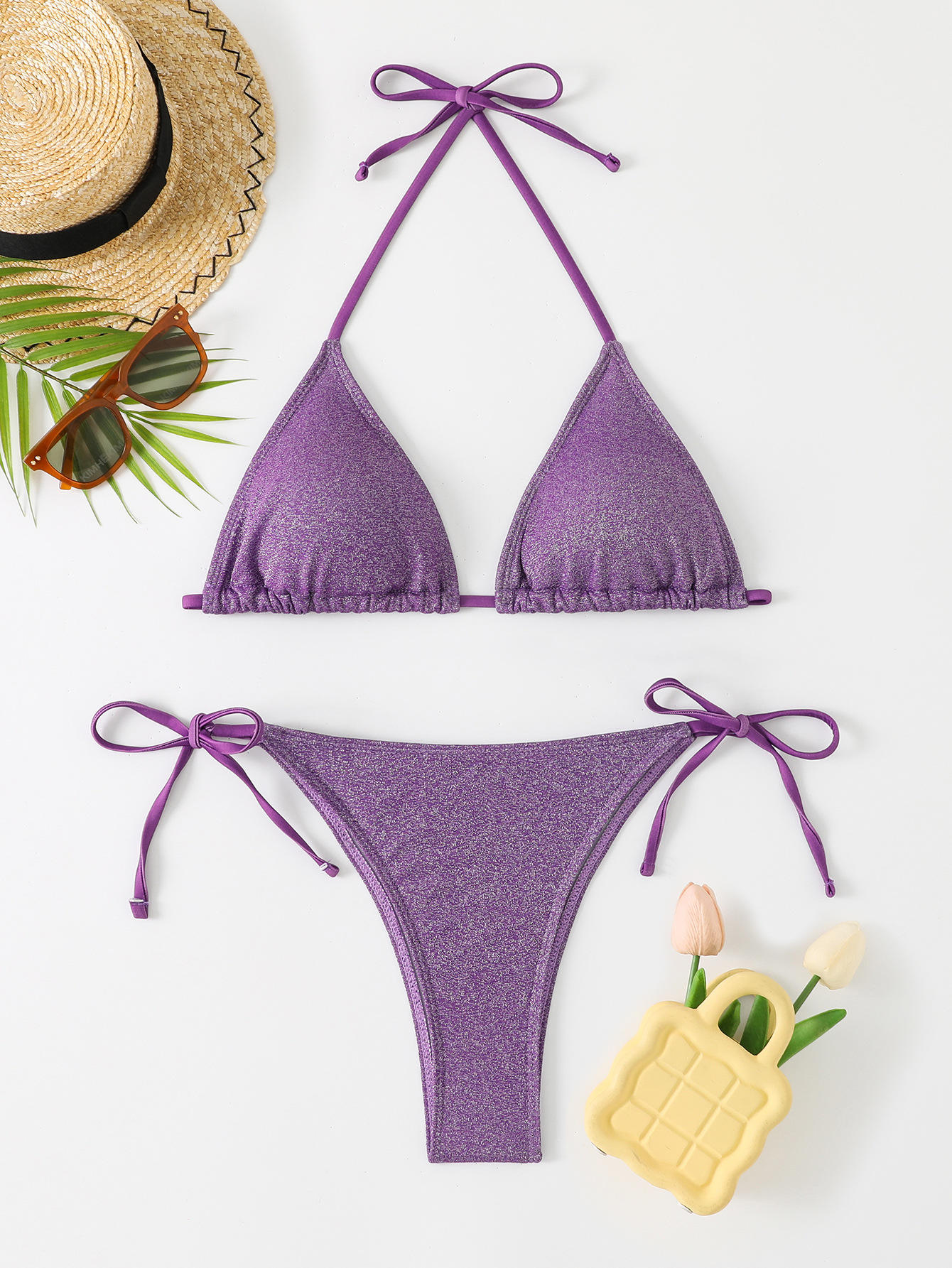 2024 대외 무역 새로운 삼각형 단색 분할 비키니 유럽과 미국 섹시한 교수형 목 스트랩 비치 수영복