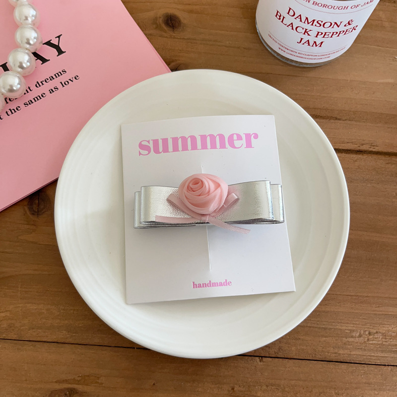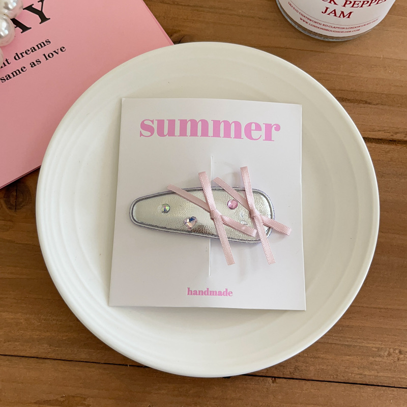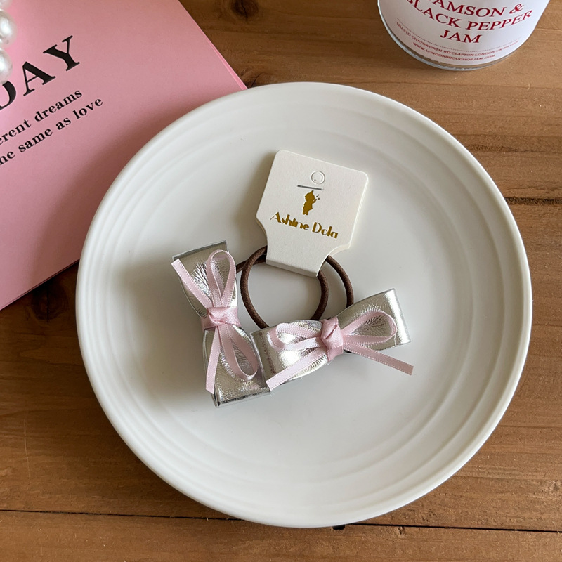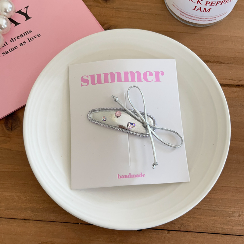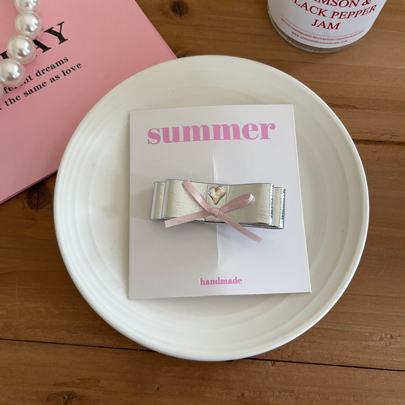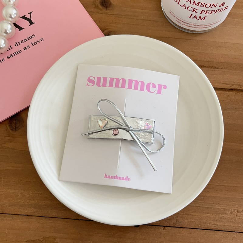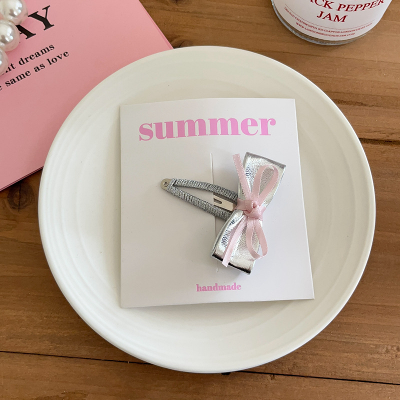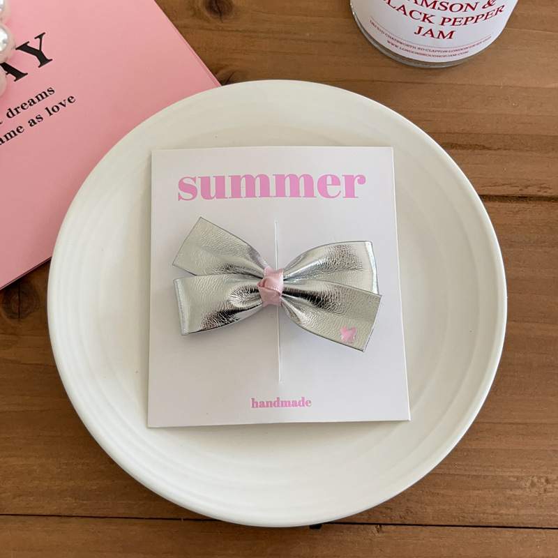 소녀의 실버 PU 가죽 시리즈 활 머리핀 헤어 코드 사이드 클립 헤어핀 헤어 스트랜드 헤어 액세서리 헤드웨어 새로운스토어 가기