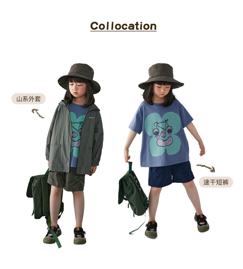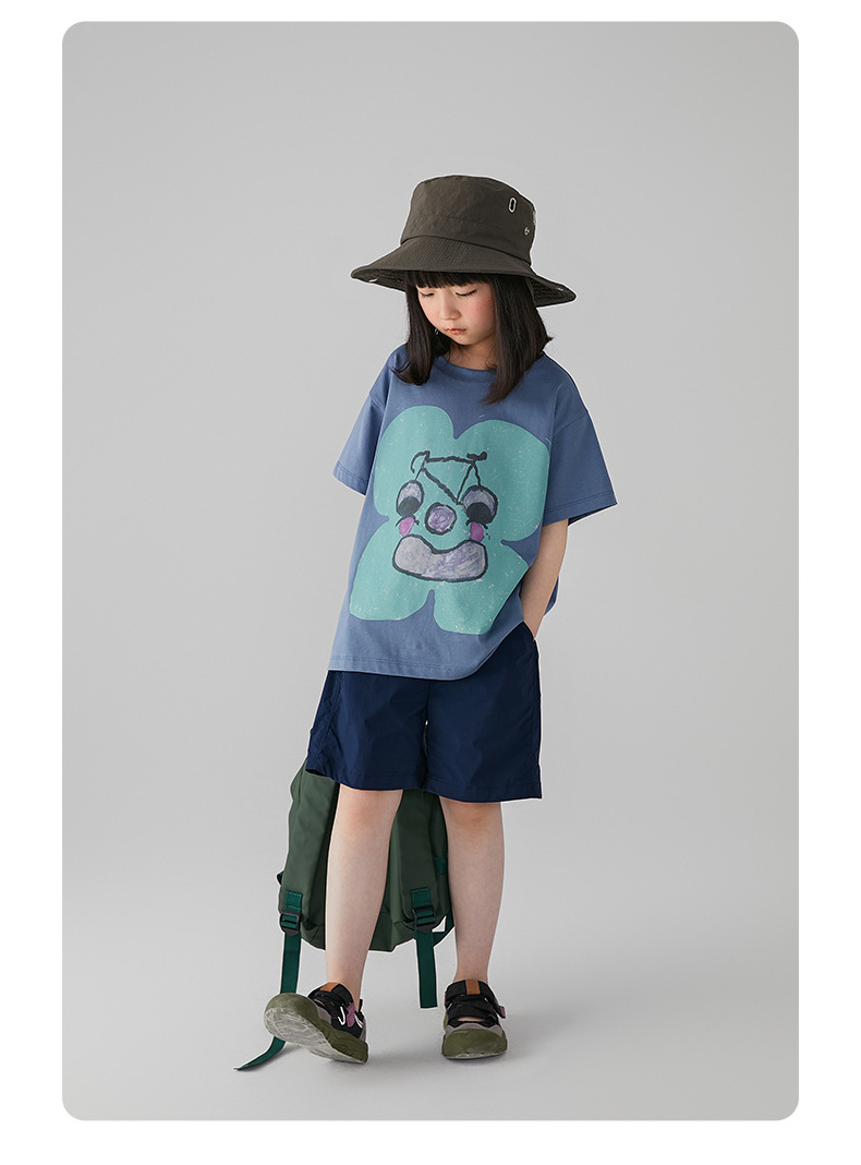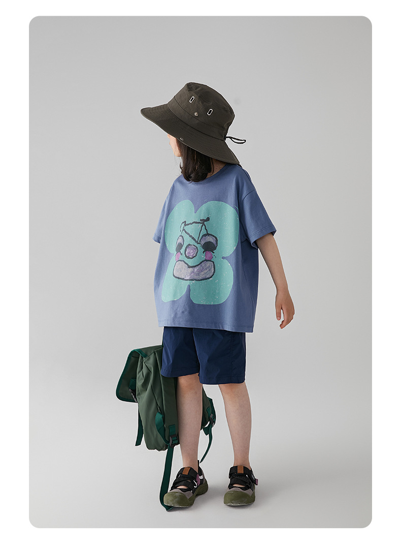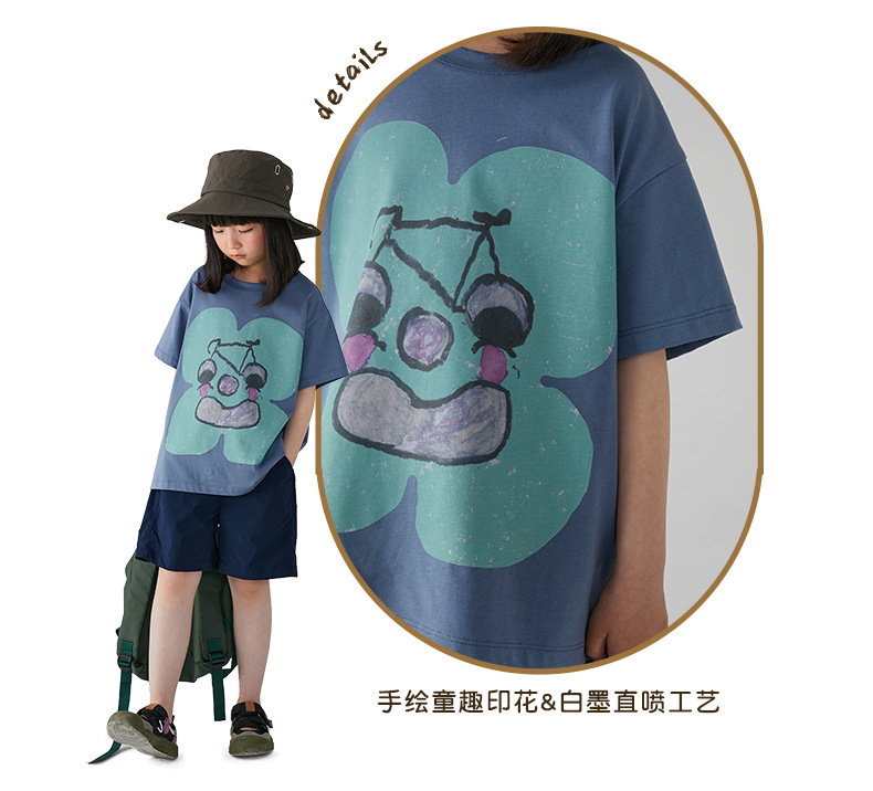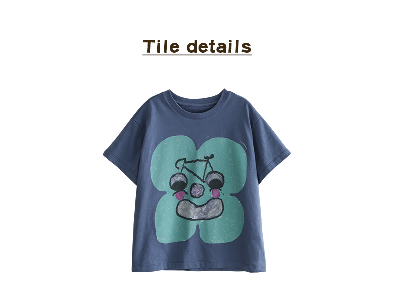 아동 의류 여름 소녀 티셔츠 새로운 중대형 어린이 추상 손으로 그린 인쇄 면화 티셔츠 어린이 라운드 넥 탑스토어 가기