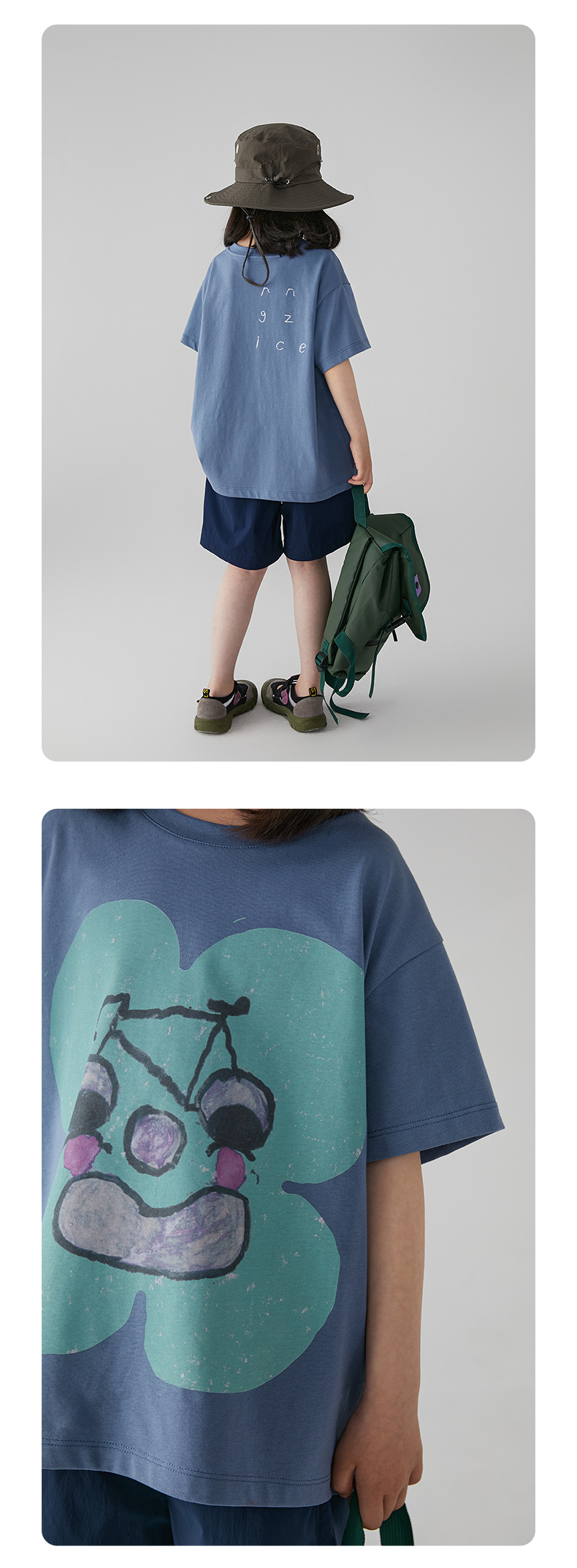 아동 의류 여름 소녀 티셔츠 새로운 중대형 어린이 추상 손으로 그린 인쇄 면화 티셔츠 어린이 라운드 넥 탑
