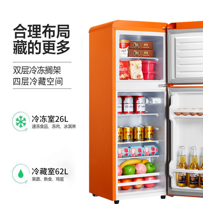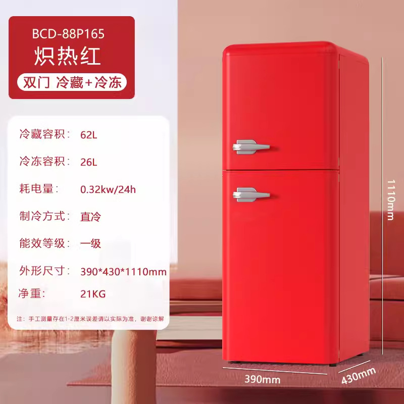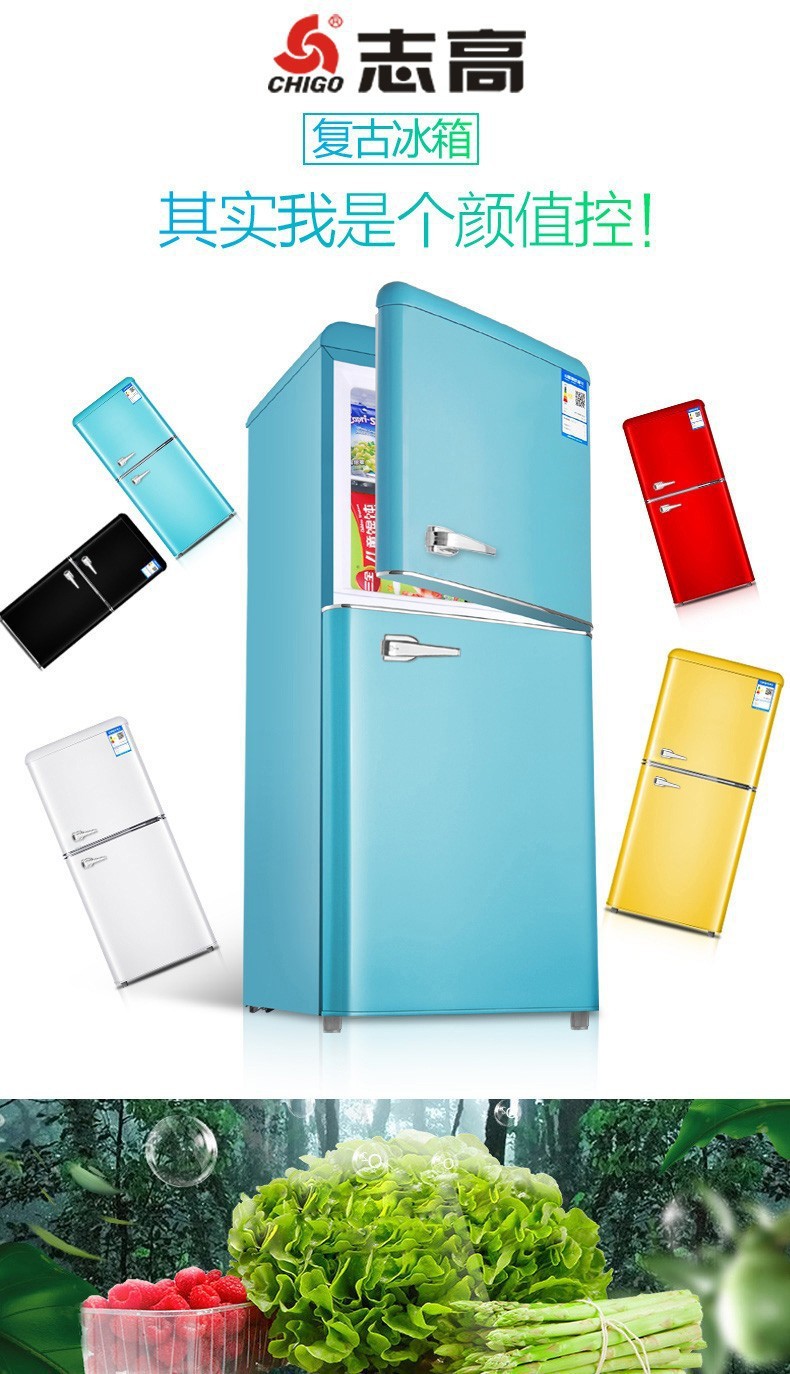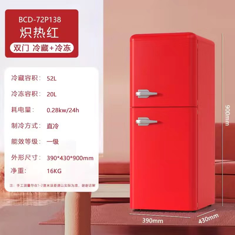 치고 사이버 연예인 레트로 냉장고 더블 도어 냉동 사무실 가정 기숙사 임대 미니 소형 절전스토어 가기