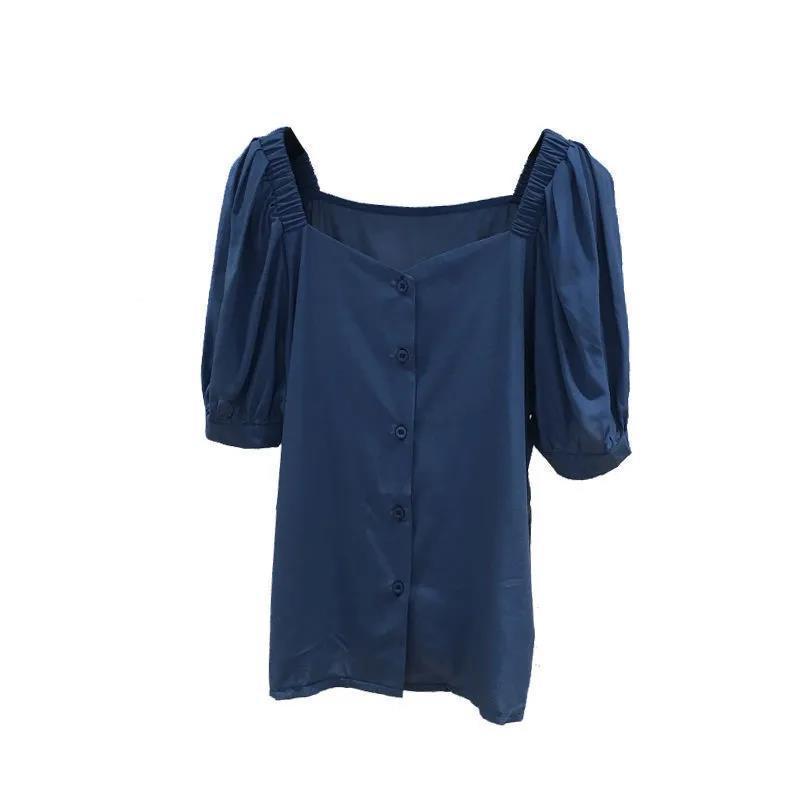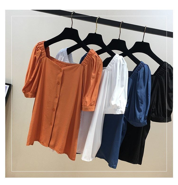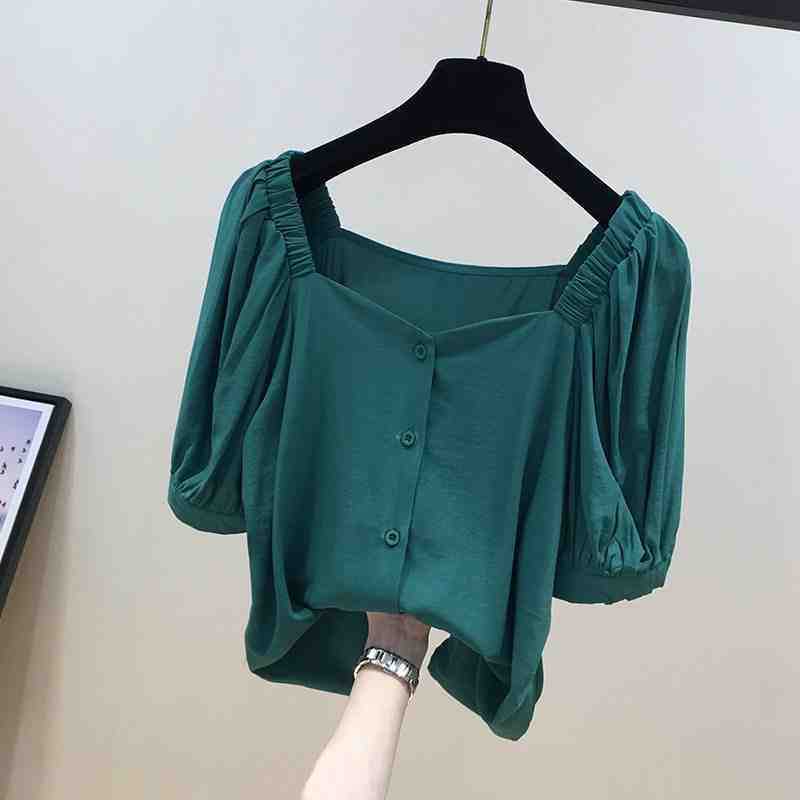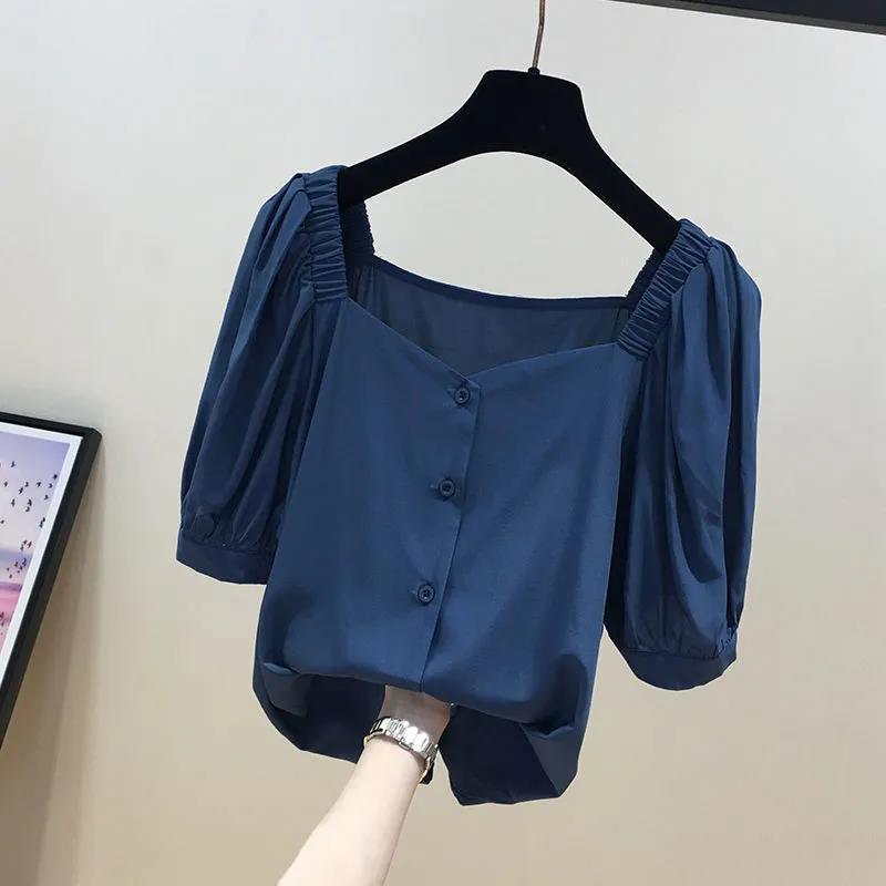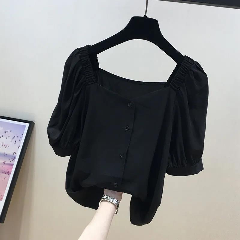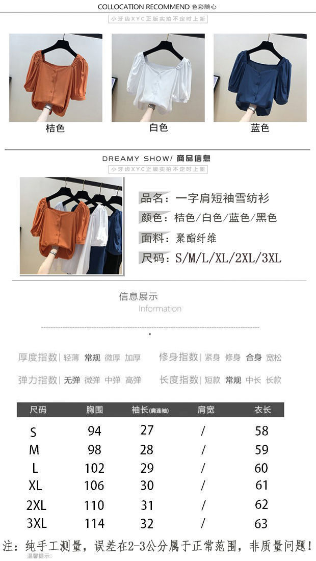 신선한 쉬폰 셔츠 반팔 어깨 탑 여자 2024 년 여름 새로운 올매치 우아한 벨리 커버 트렌디 셔츠스토어 가기