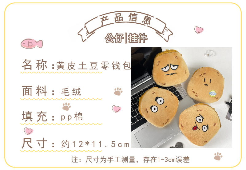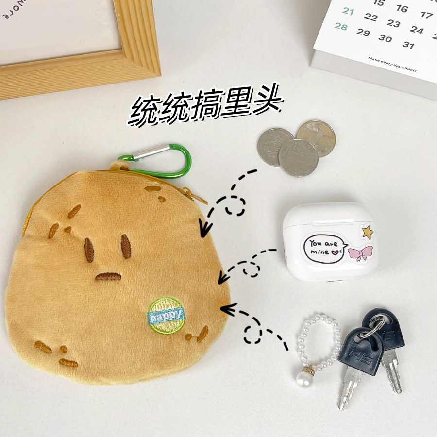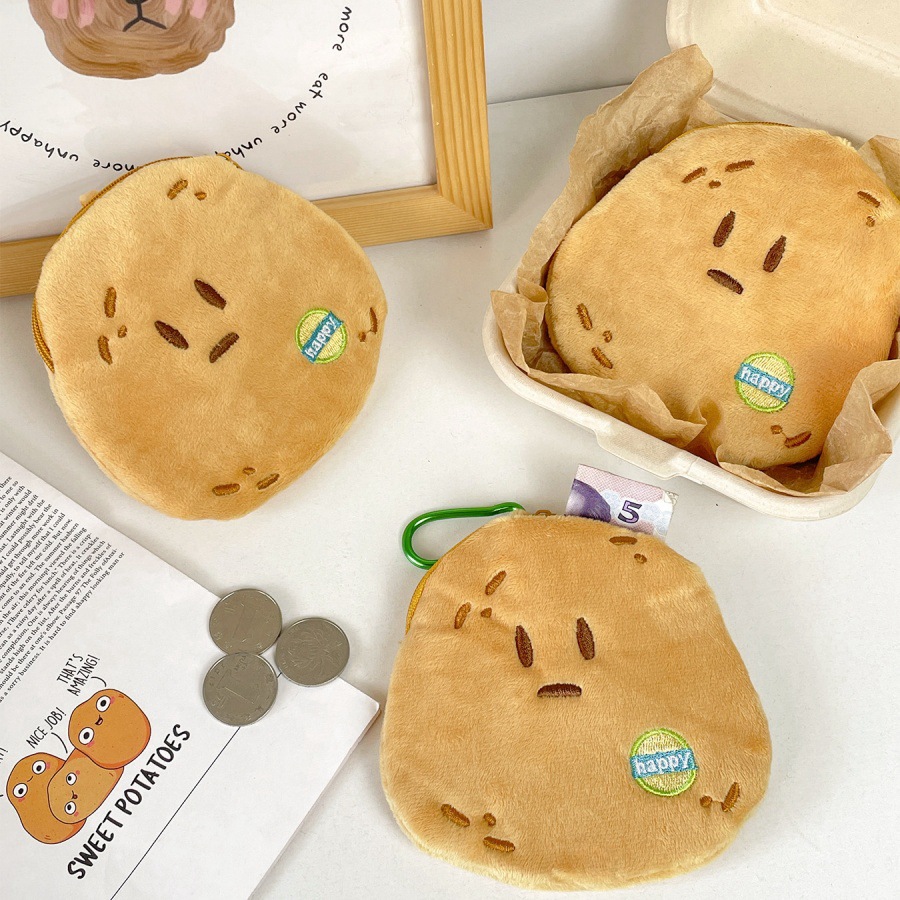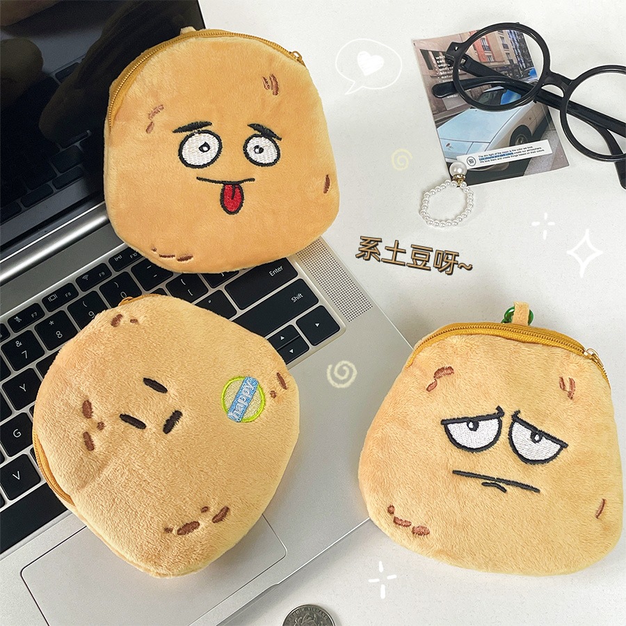 귀여운 노란색 감자 모양 봉제 동전 지갑, 모조 감자 열쇠고리, 이어폰 가방, 동전 휴대용 수납 가방 도매스토어 가기