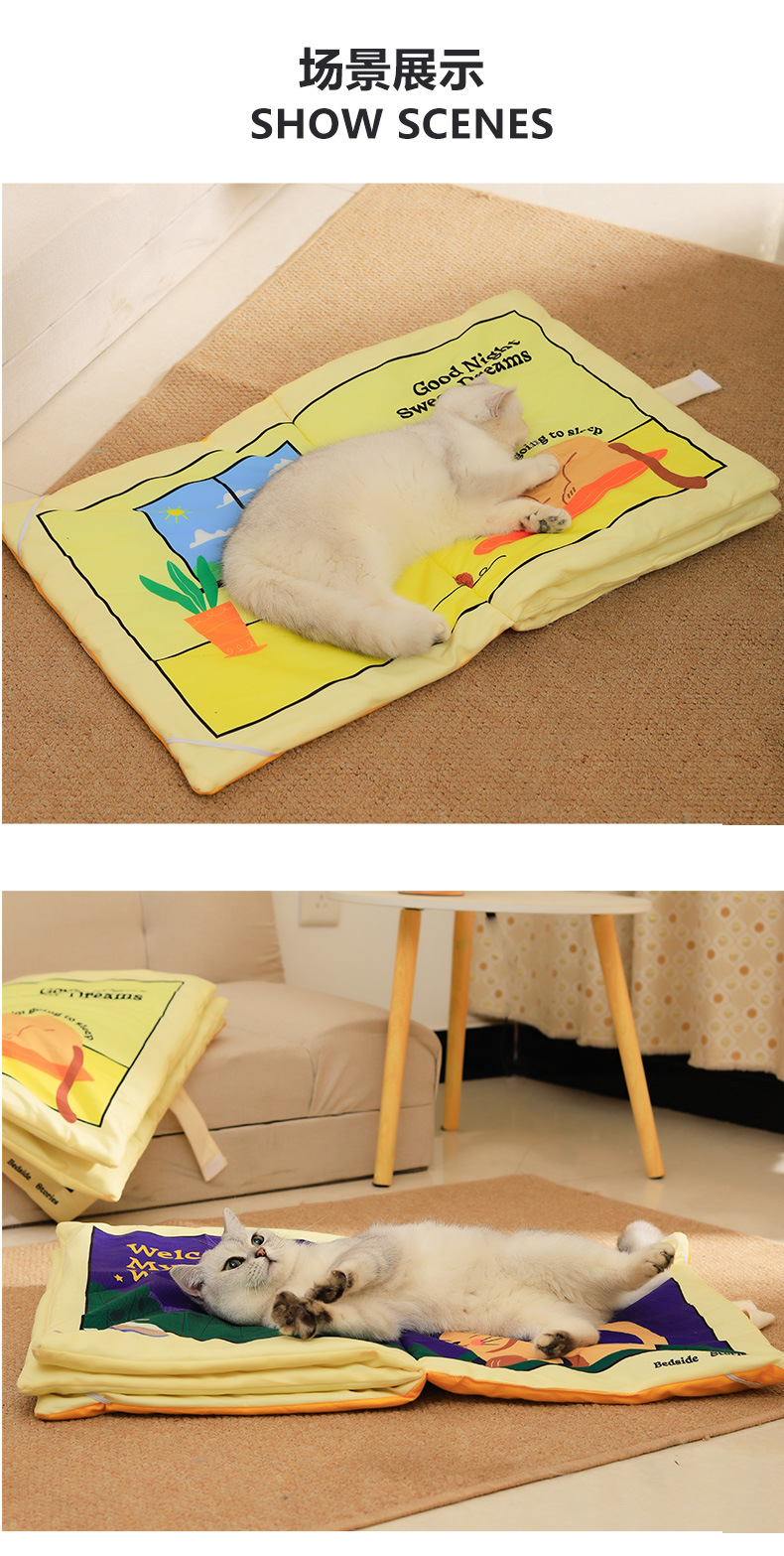 애완 고양이 케이지 책 모양 둥지 애완 고양이 소형견 담요 사계절용 보온 매트 접이식 만화책 모양 매트스토어 가기