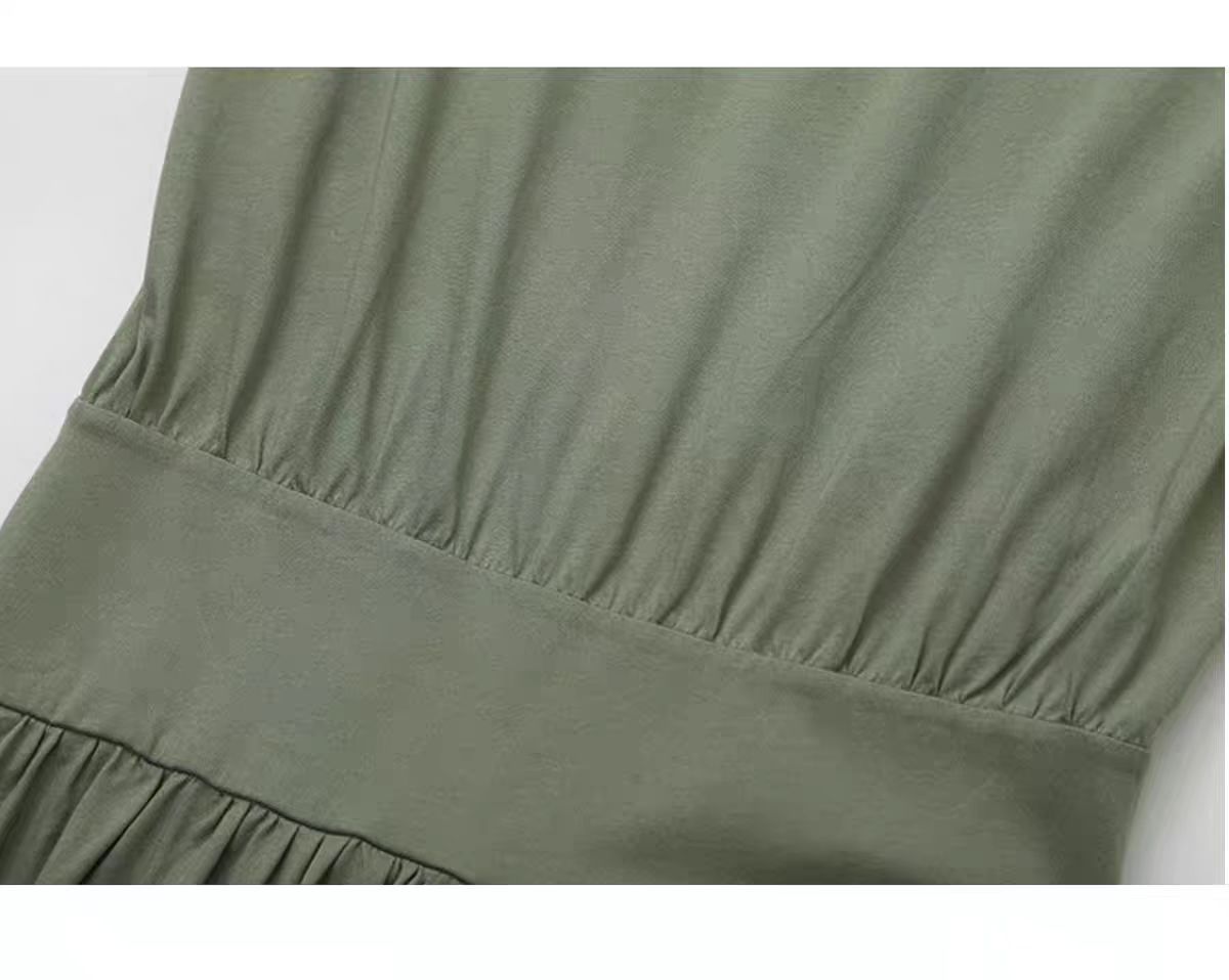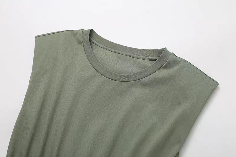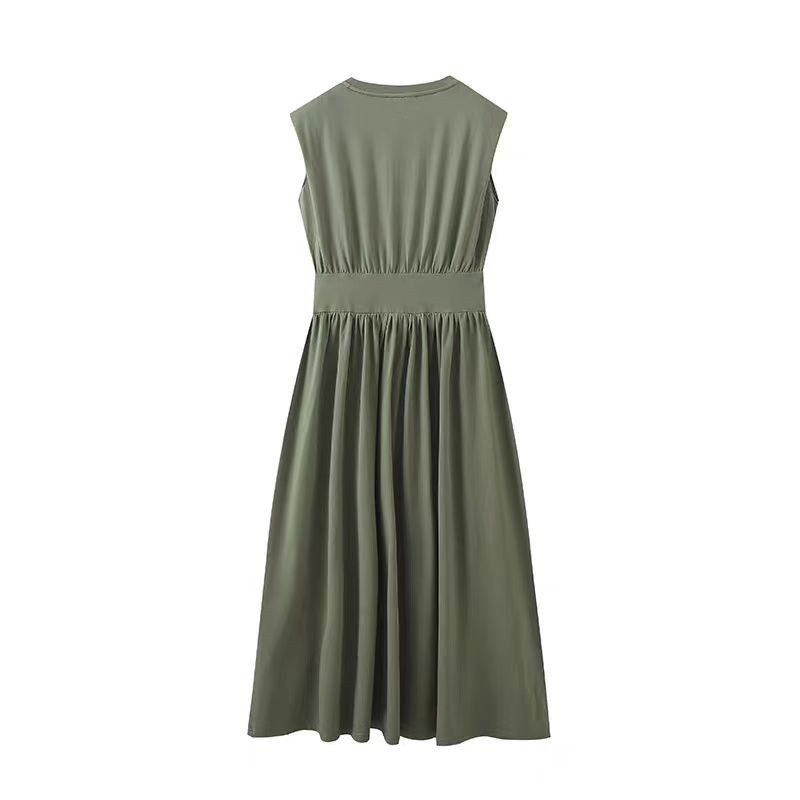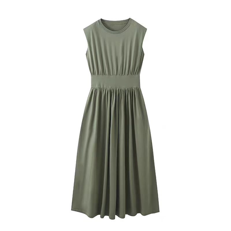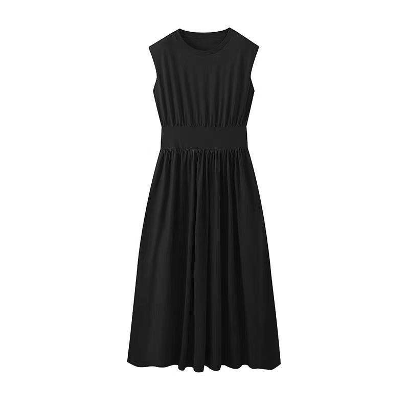 미니멀리스트 스타일 2024 여름 프랑스 스타일 간단한 넓은 어깨 꽉 허리 슬리밍 캐주얼 라운드 넥 니트 조끼 원피스 긴 원피스스토어 가기