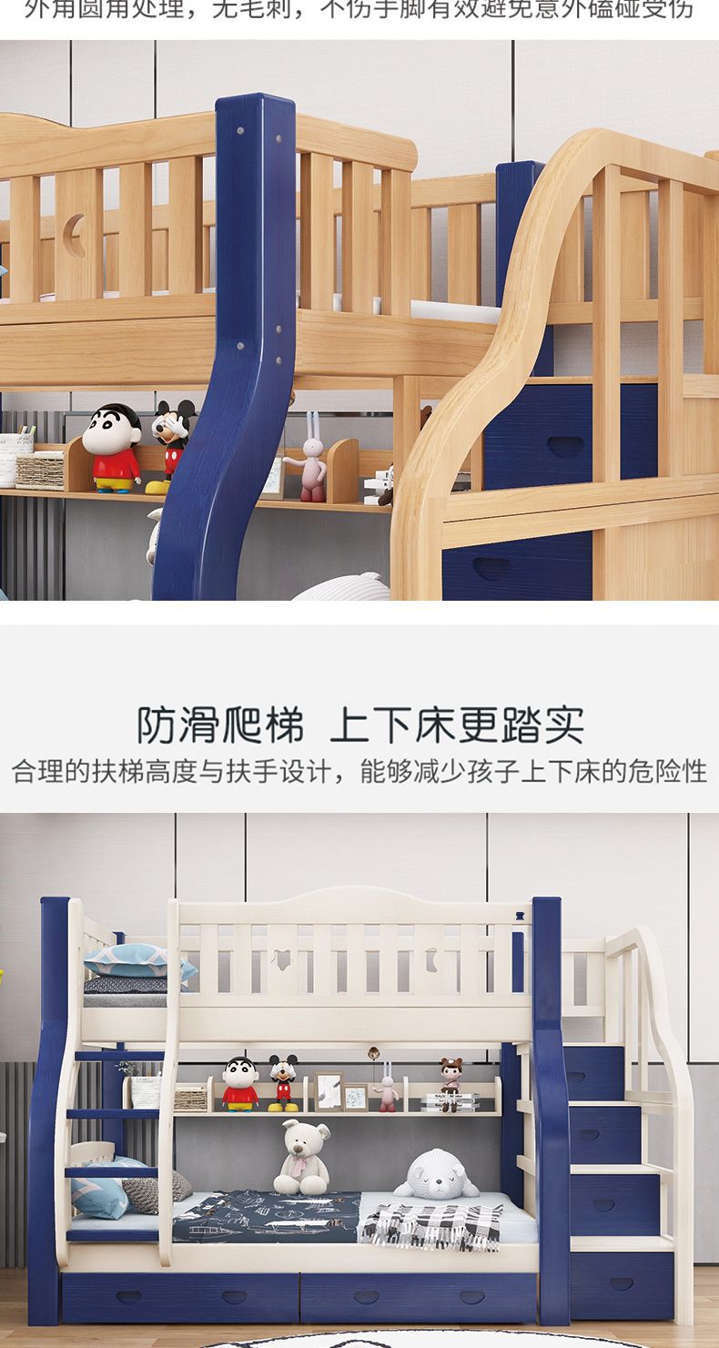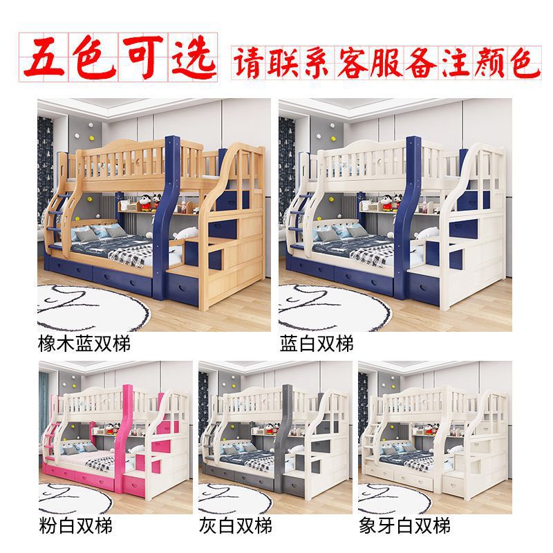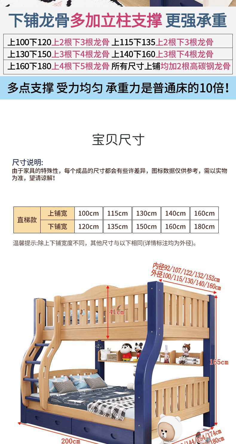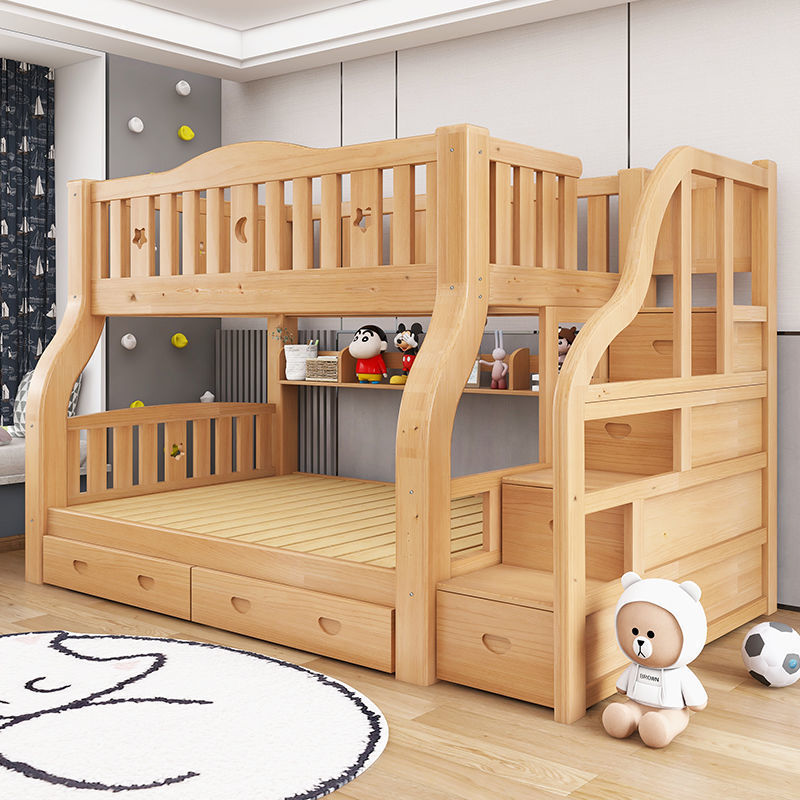 만화풍 원목 이층침대 성인용 이층침대 높낮이 조절 침대 어린이 이층침대 모자식 침대