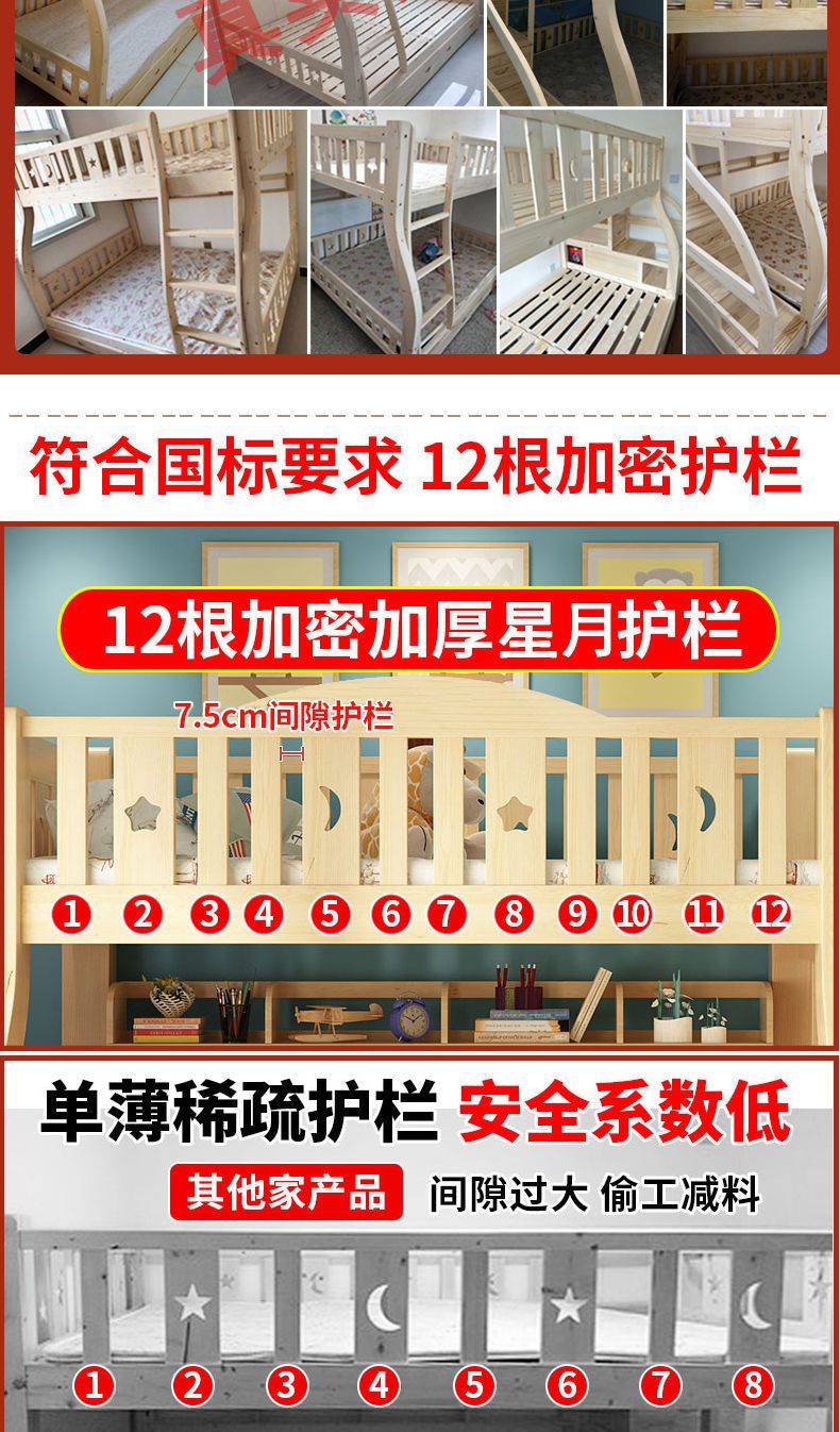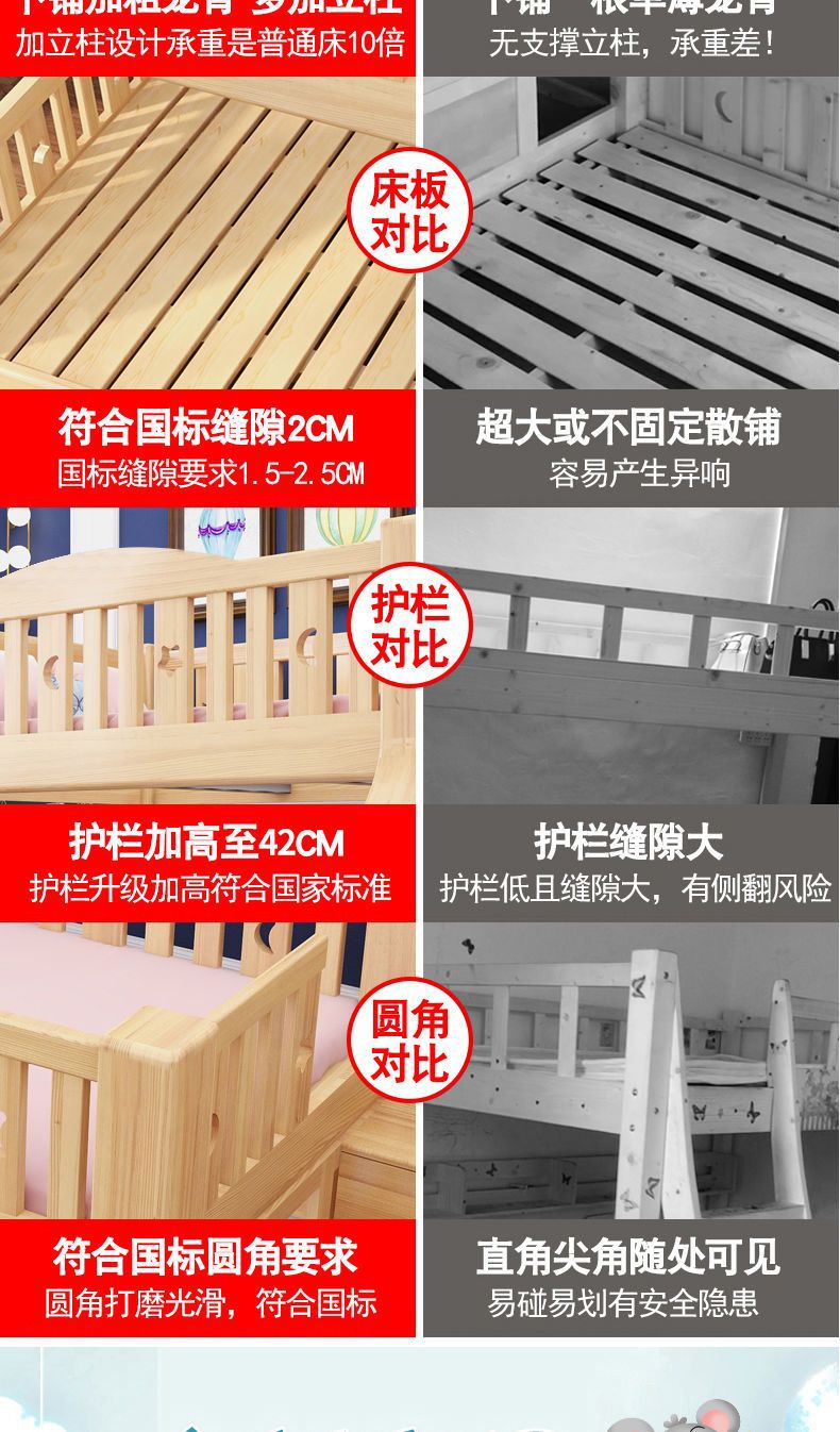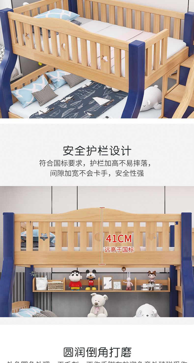 만화풍 원목 이층침대 성인용 이층침대 높낮이 조절 침대 어린이 이층침대 모자식 침대