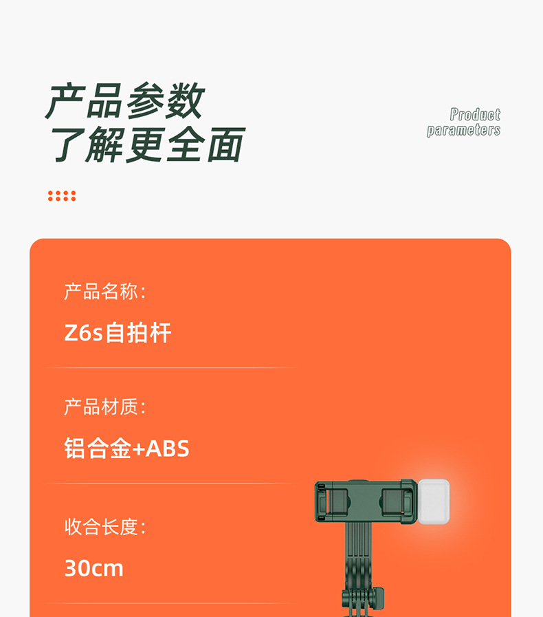 • R1SL-1.7m 싱글 채우기 라이트 셀카 스틱 화이트
