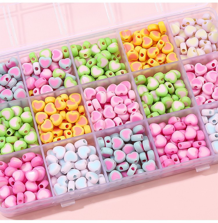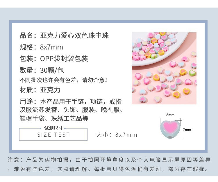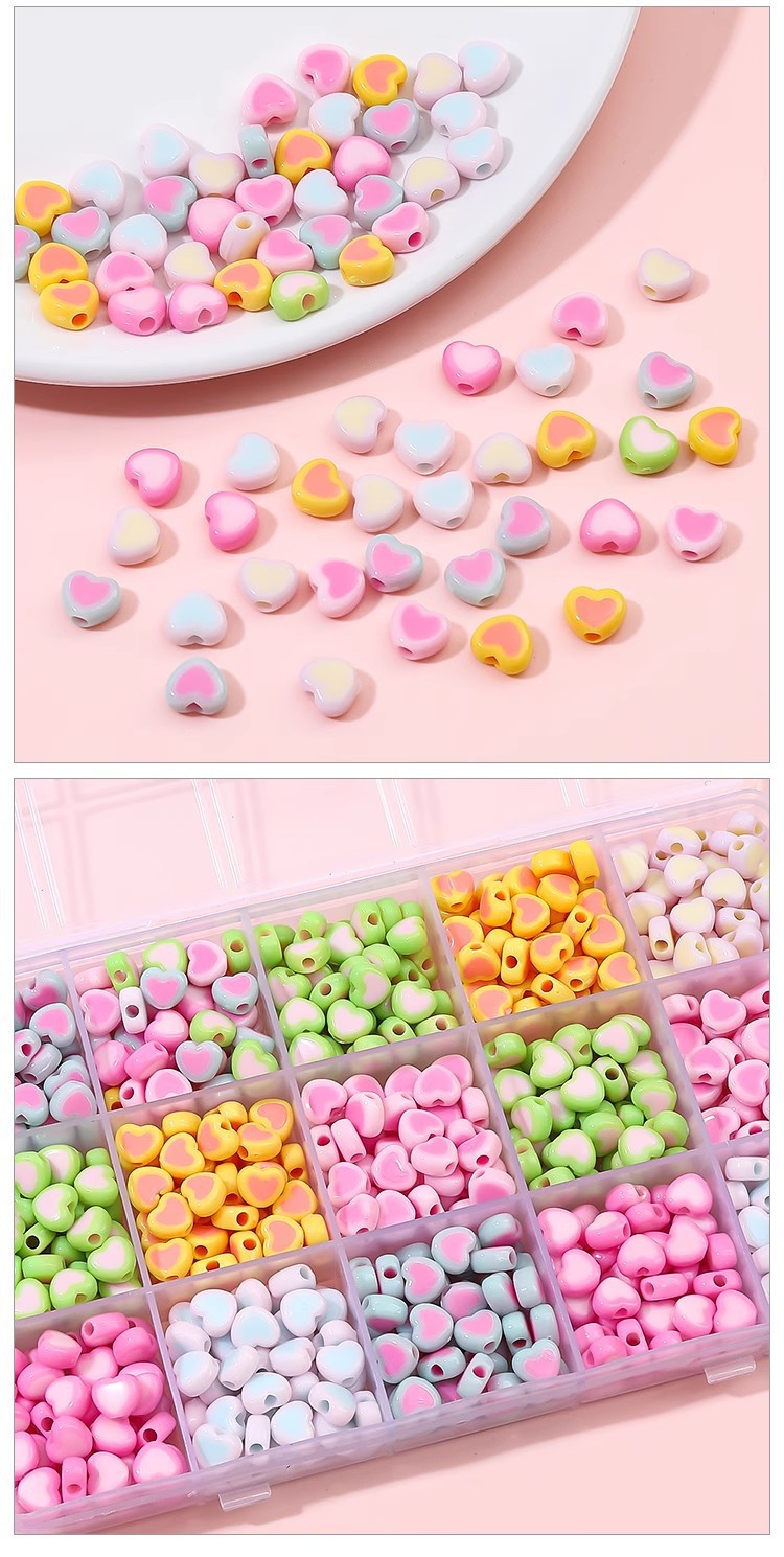 라이트 컬러 크림 아크릴 2 색 사랑 구슬 구슬 DIY 수제 구슬 팔찌 보석 액세서리스토어 가기