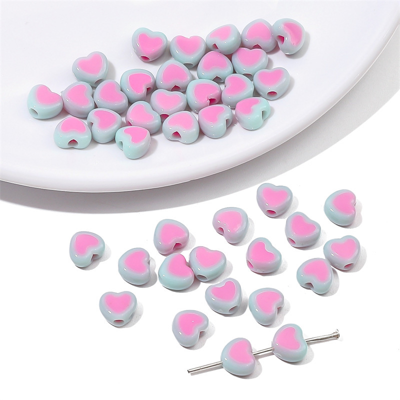 라이트 컬러 크림 아크릴 2 색 사랑 구슬 구슬 DIY 수제 구슬 팔찌 보석 액세서리