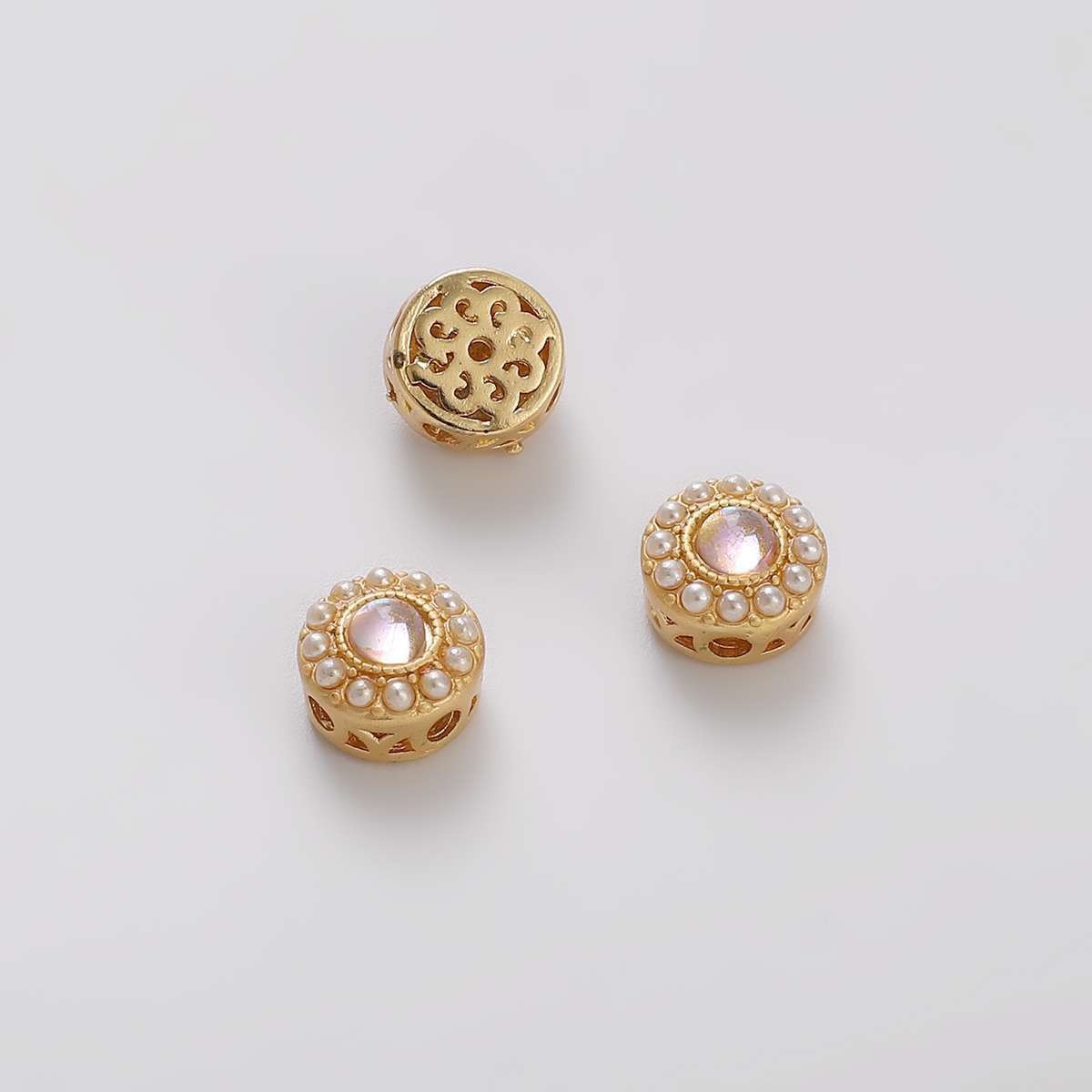 • 둥근 십자가 12x12mm 조리개 약 1.5mm 금 흰색 유리 1/가방
