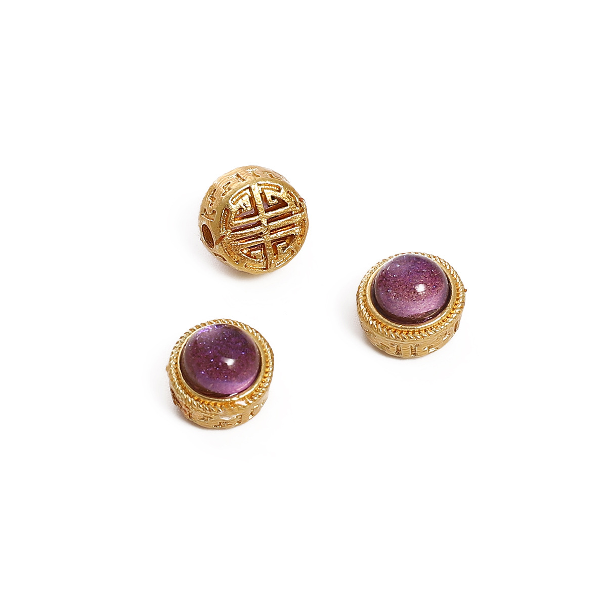 • 둥근 (약간 작은) 9mm 조리개 약 1.5mm 금 보라색 유리 1/가방
