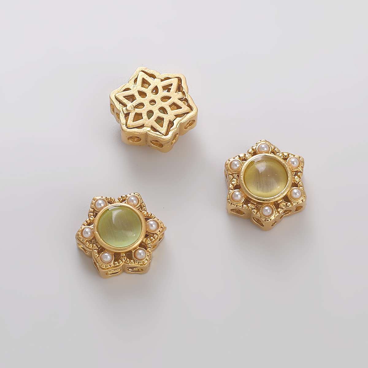 • 6 각형 꽃 12x13mm 조리개 약 1.5mm 금 라이트 그린 유리 1/가방