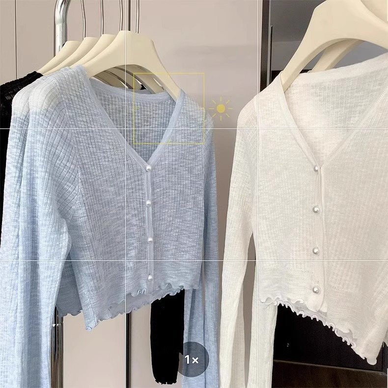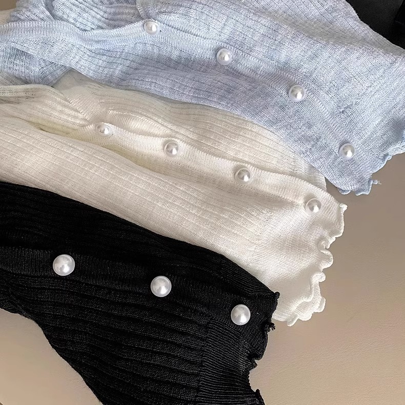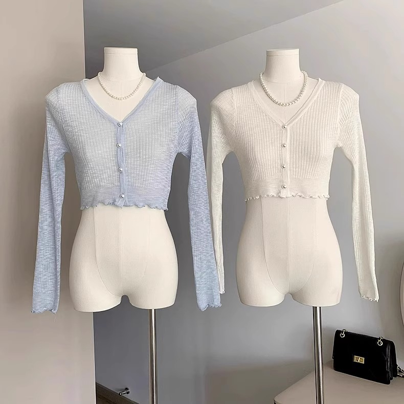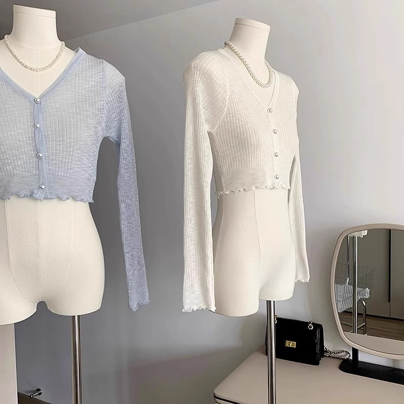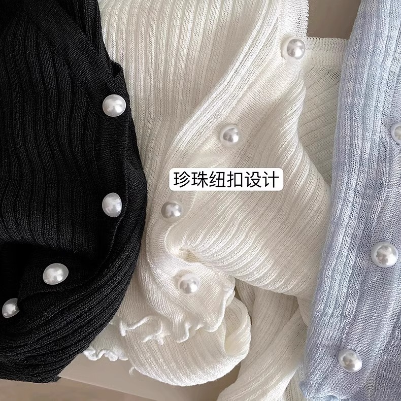 2024 새로운 얇은 선 스크린 니트 카디건 재킷 여성의 여름 아이스 실크 목도리 오버 셔츠 짧은 에어컨 셔츠