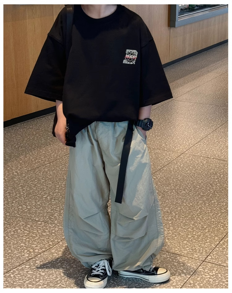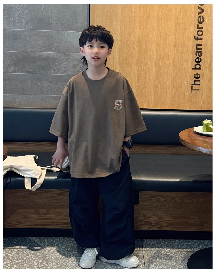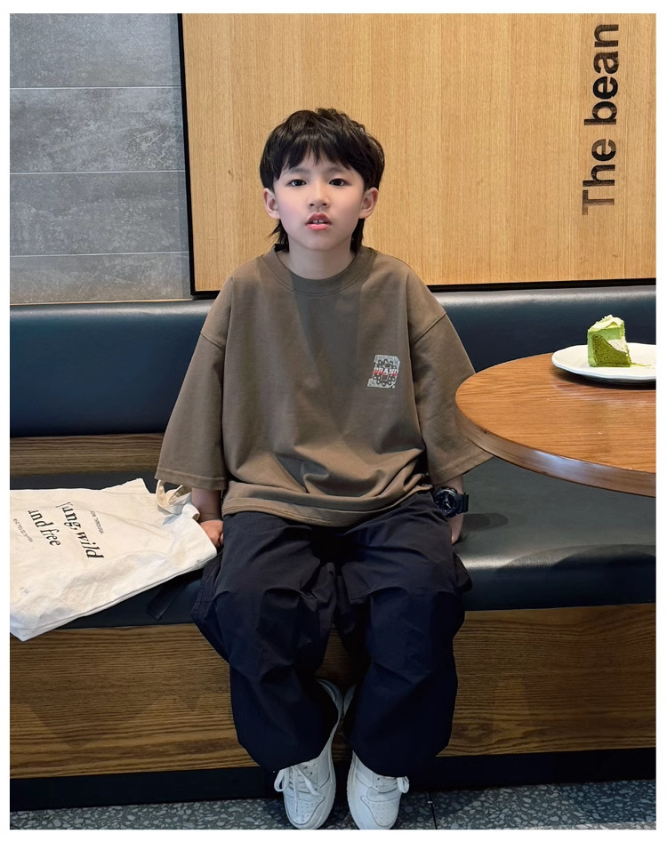 어린이 의류 2024 여름 소년 중 · 대형 어린이 한식 캐주얼 레트로 프린트 티셔츠 어린이 반팔 탑 의류