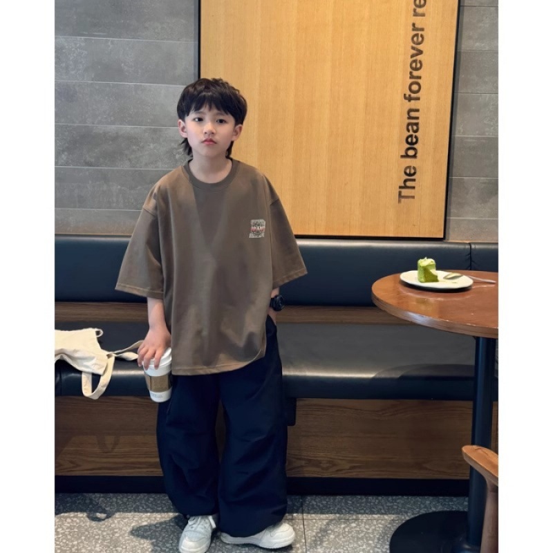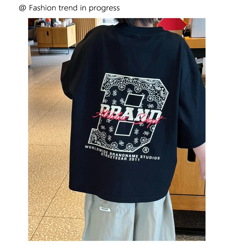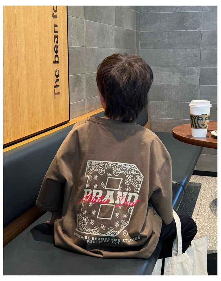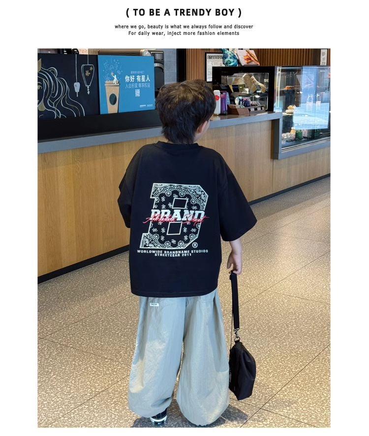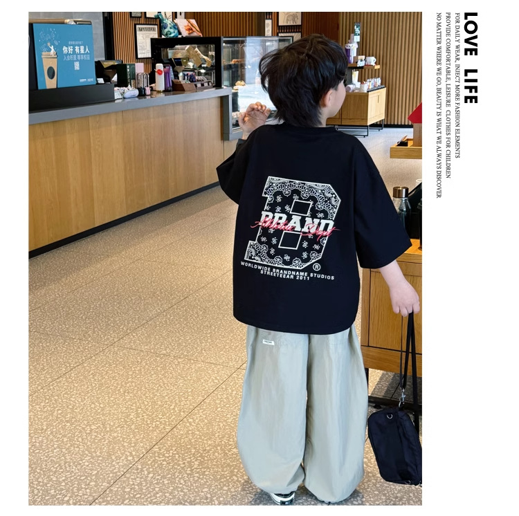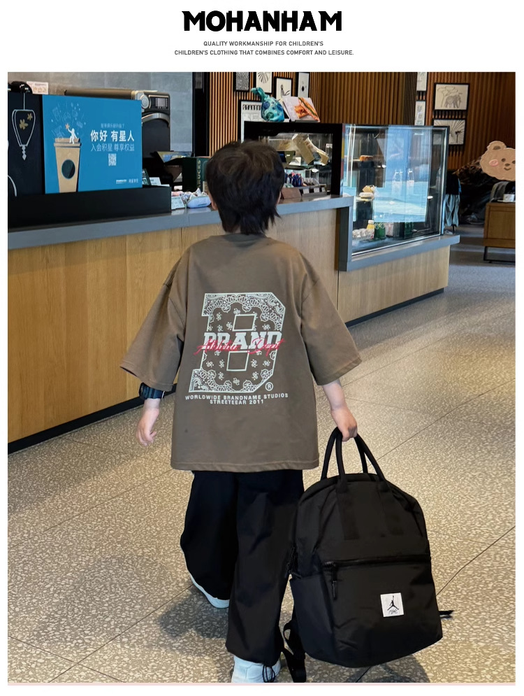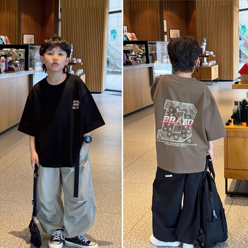 어린이 의류 2024 여름 소년 중 · 대형 어린이 한식 캐주얼 레트로 프린트 티셔츠 어린이 반팔 탑 의류스토어 가기