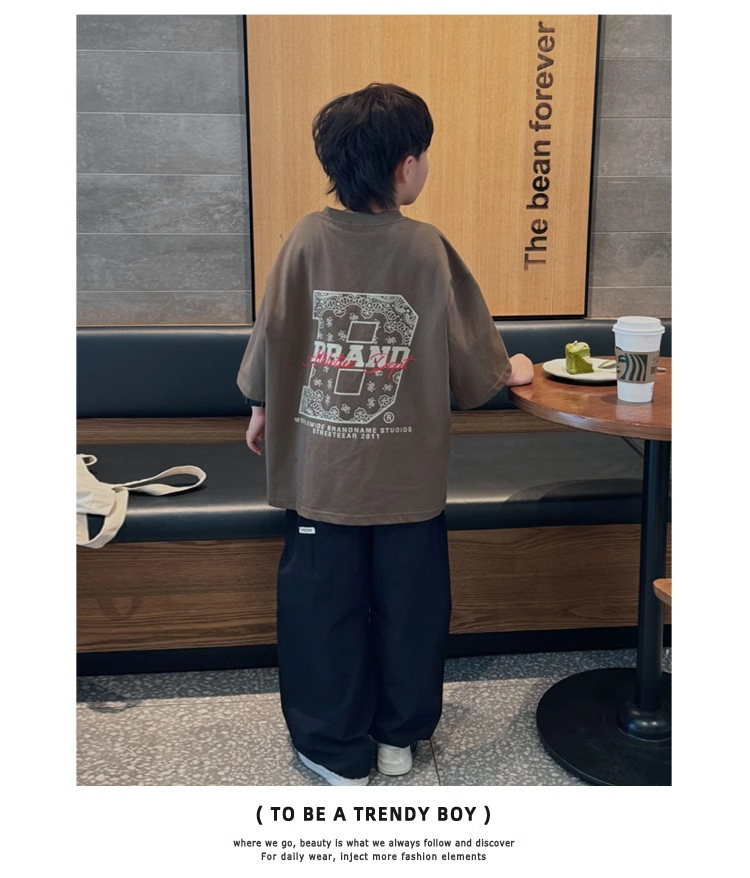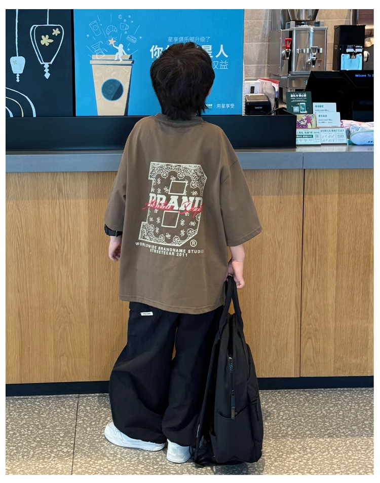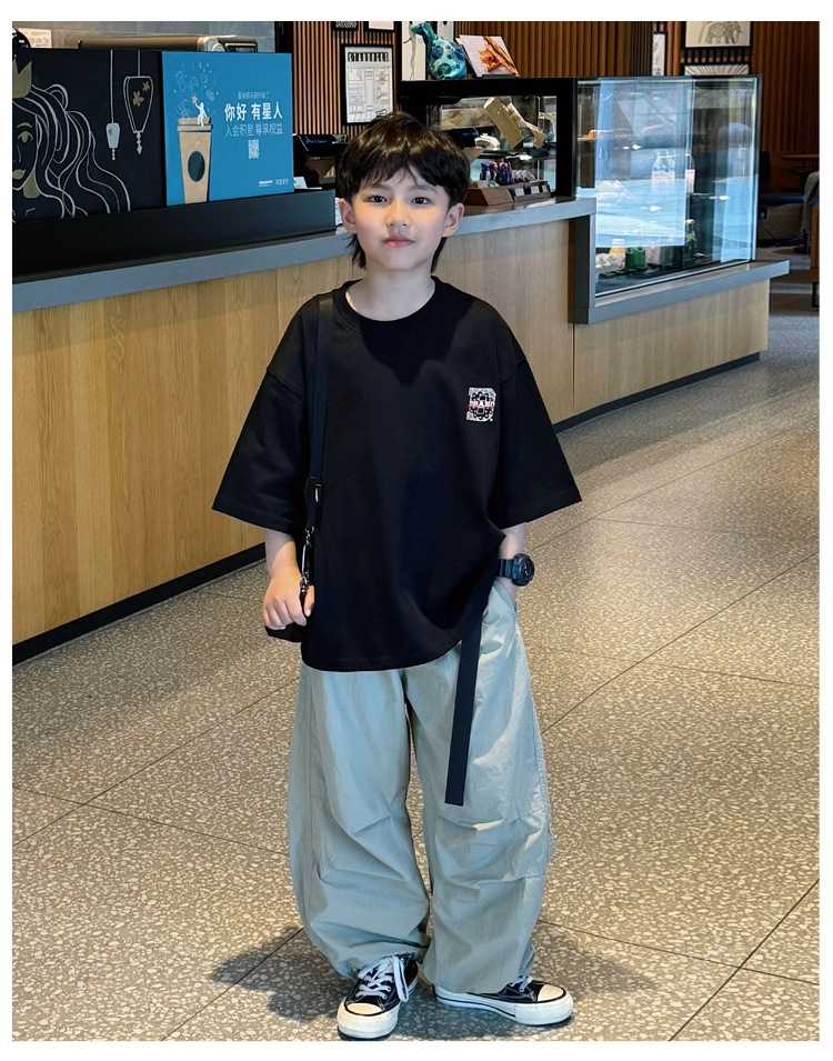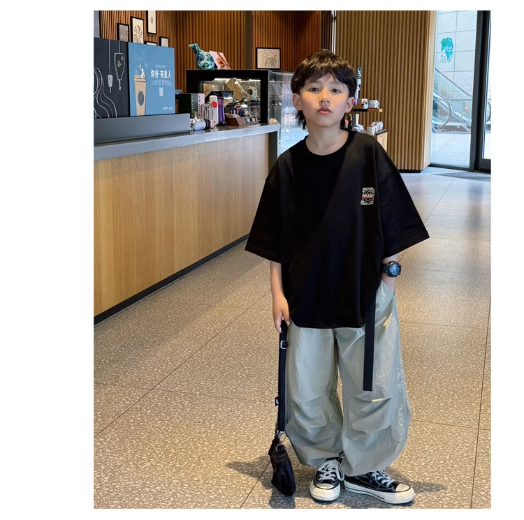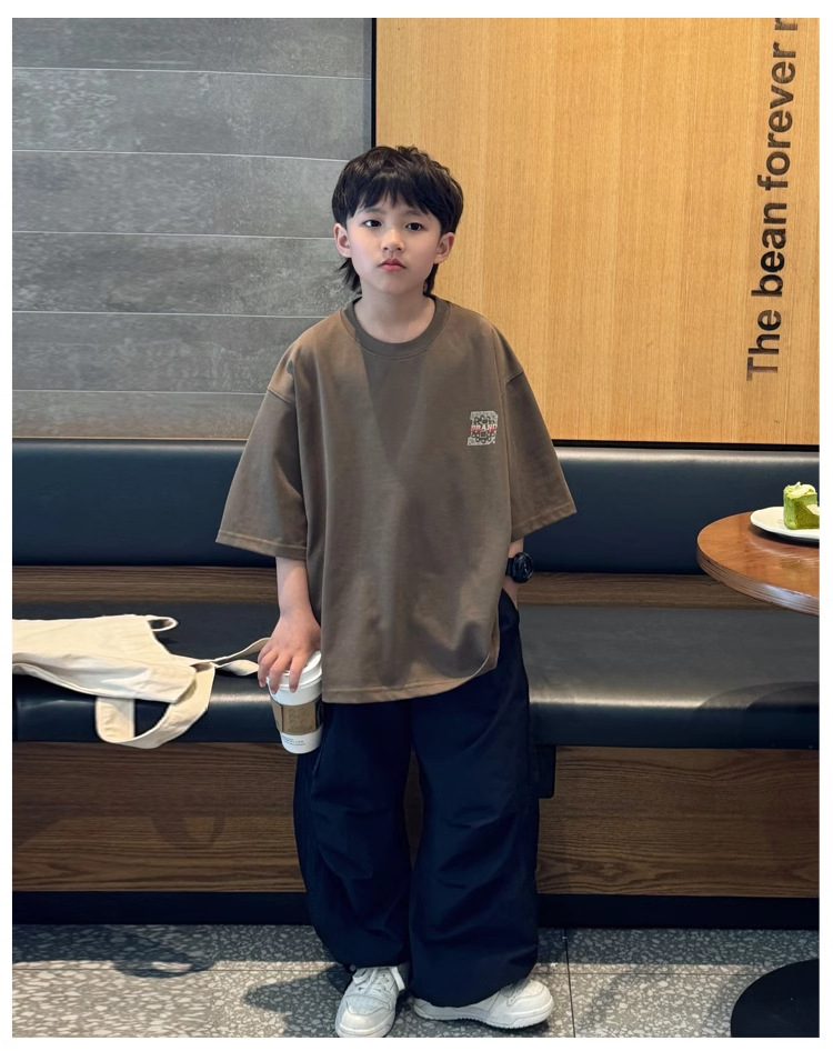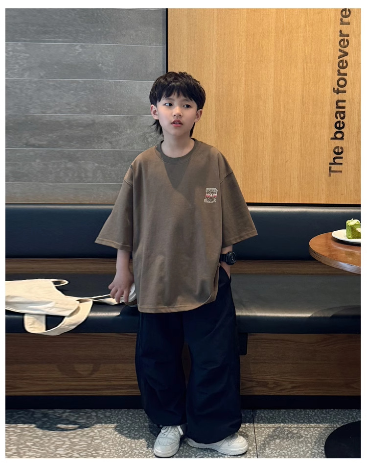 어린이 의류 2024 여름 소년 중 · 대형 어린이 한식 캐주얼 레트로 프린트 티셔츠 어린이 반팔 탑 의류스토어 가기