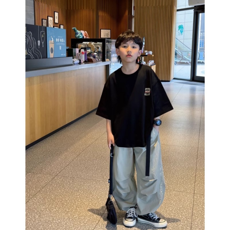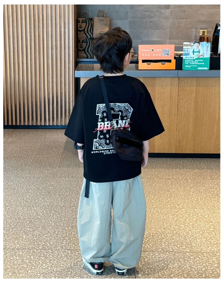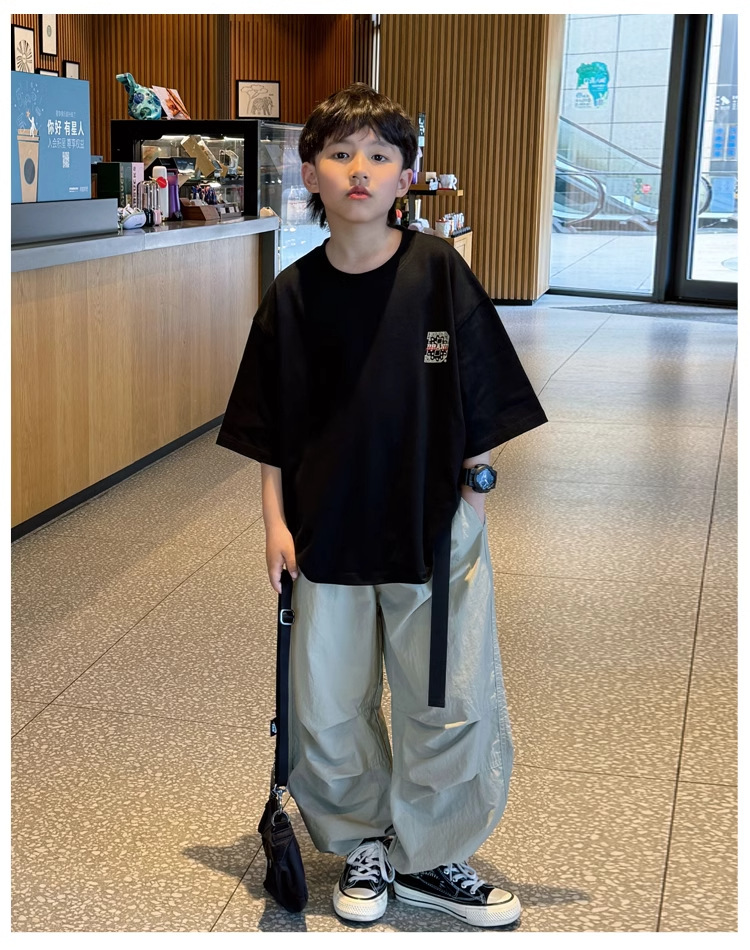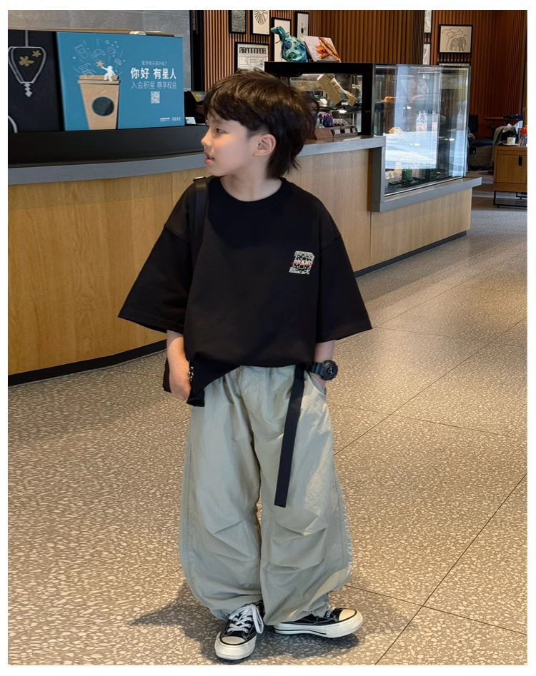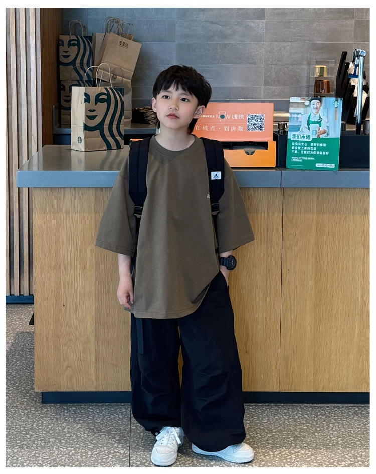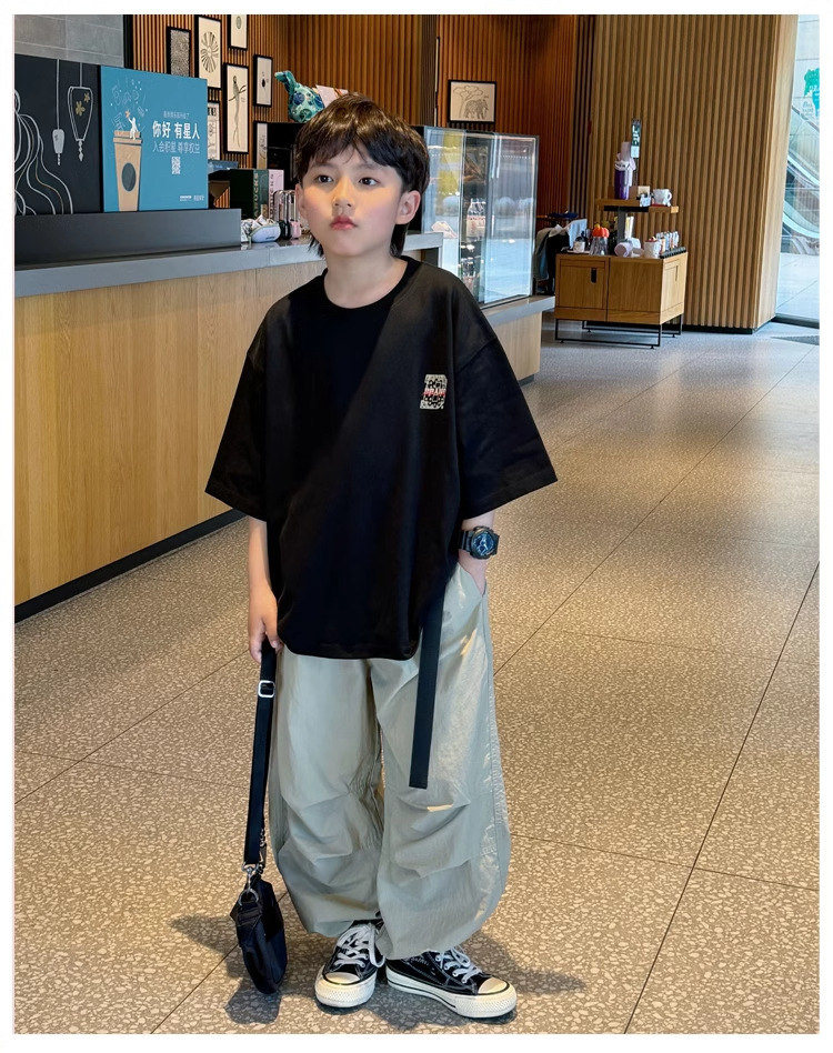 어린이 의류 2024 여름 소년 중 · 대형 어린이 한식 캐주얼 레트로 프린트 티셔츠 어린이 반팔 탑 의류스토어 가기