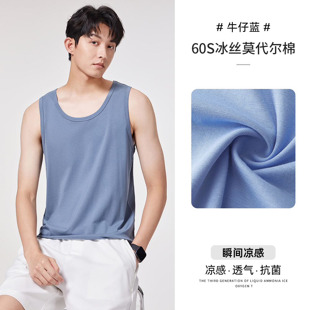 [60S Lanjing Modal] 하이 엔드 여름 남성 조끼 얇은 아이스 실크 원활한 단색 착용 민소매 티셔츠스토어 가기