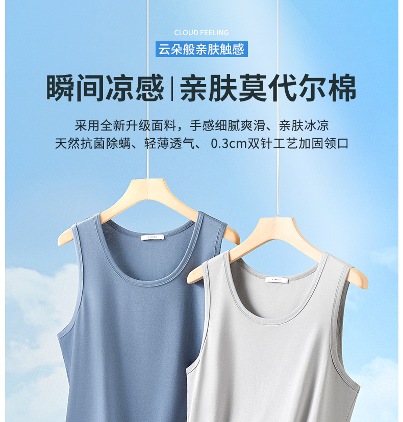 [60S Lanjing Modal] 하이 엔드 여름 남성 조끼 얇은 아이스 실크 원활한 단색 착용 민소매 티셔츠