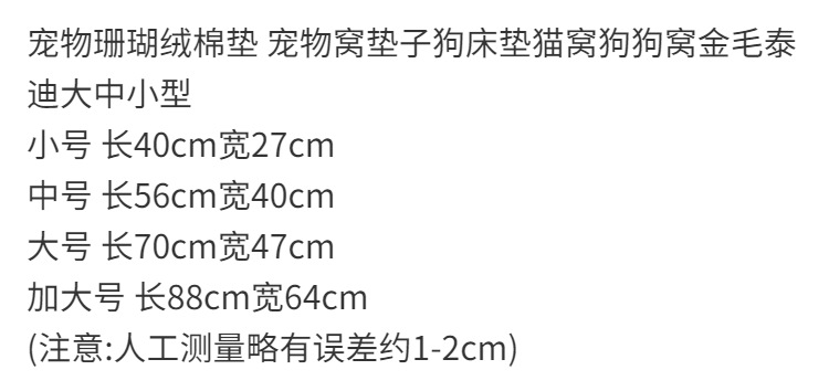 애완 동물 산호 양털 면 패드 애완 동물 개 사육장 패드 개 매트리스 고양이 사육장 따뜻한 둥지 황금 테디 대형 소형