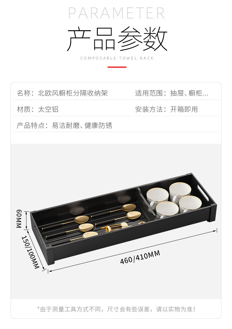 주방 서랍 보관 상자 다층 내장 나이프 및 포크 가정용 캐비닛 브래지어 블루 보울 젓가락으로 식기 파티션 랙