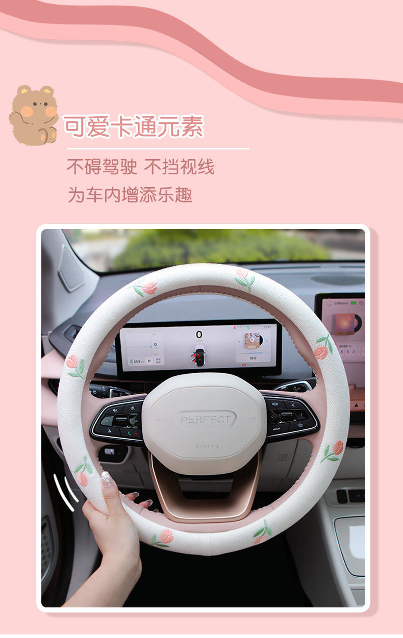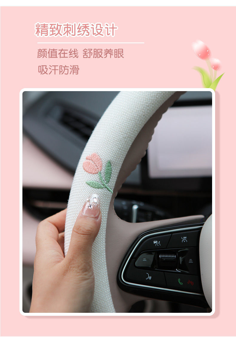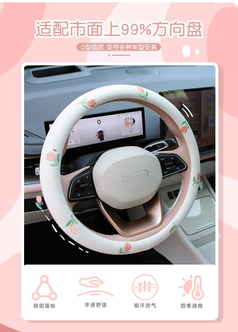 자동차 핸들 커버 여름 통기성 여신 스타일 귀여운 만화 미끄럼 방지 내마모성 사계절 범용 장식 핸들 커버스토어 가기