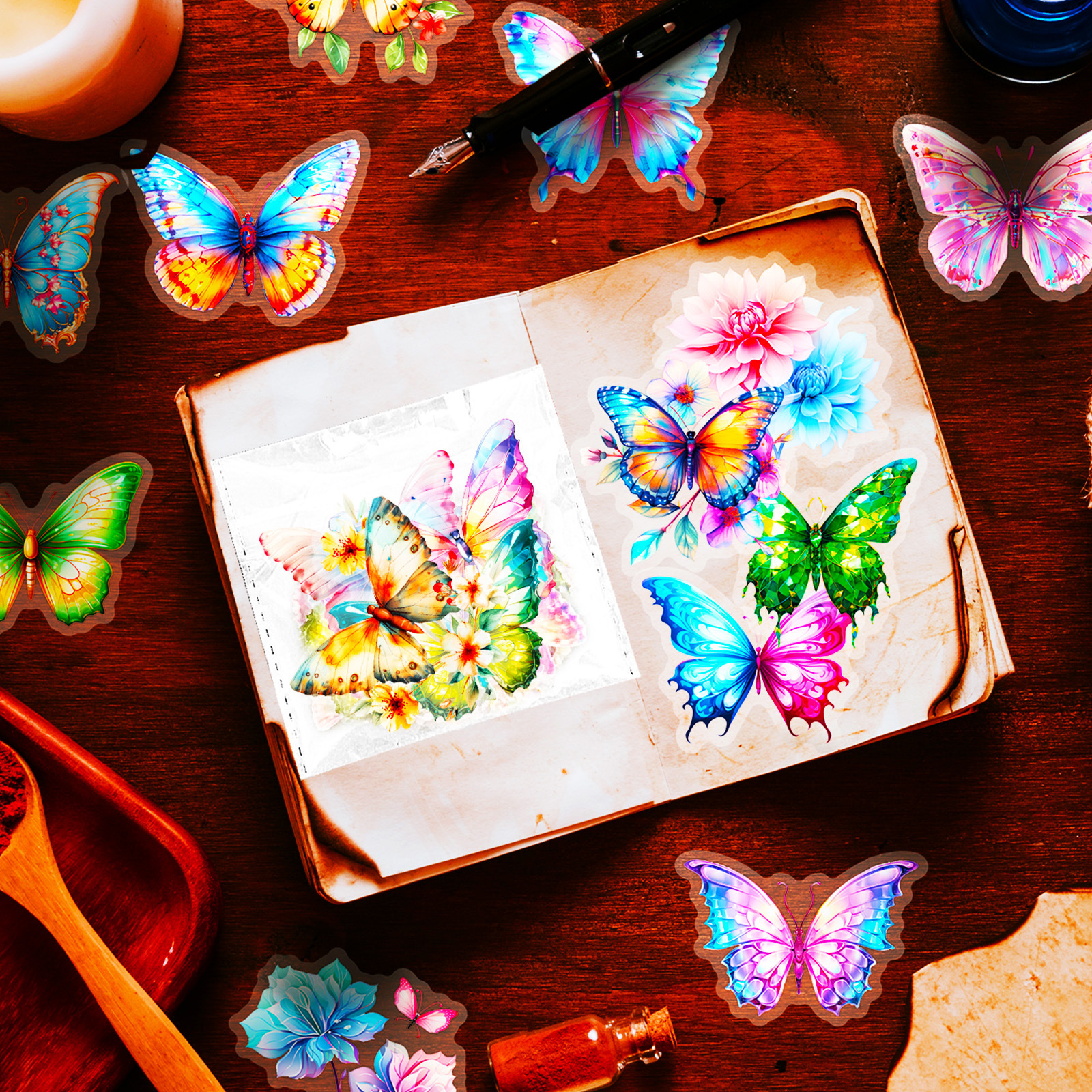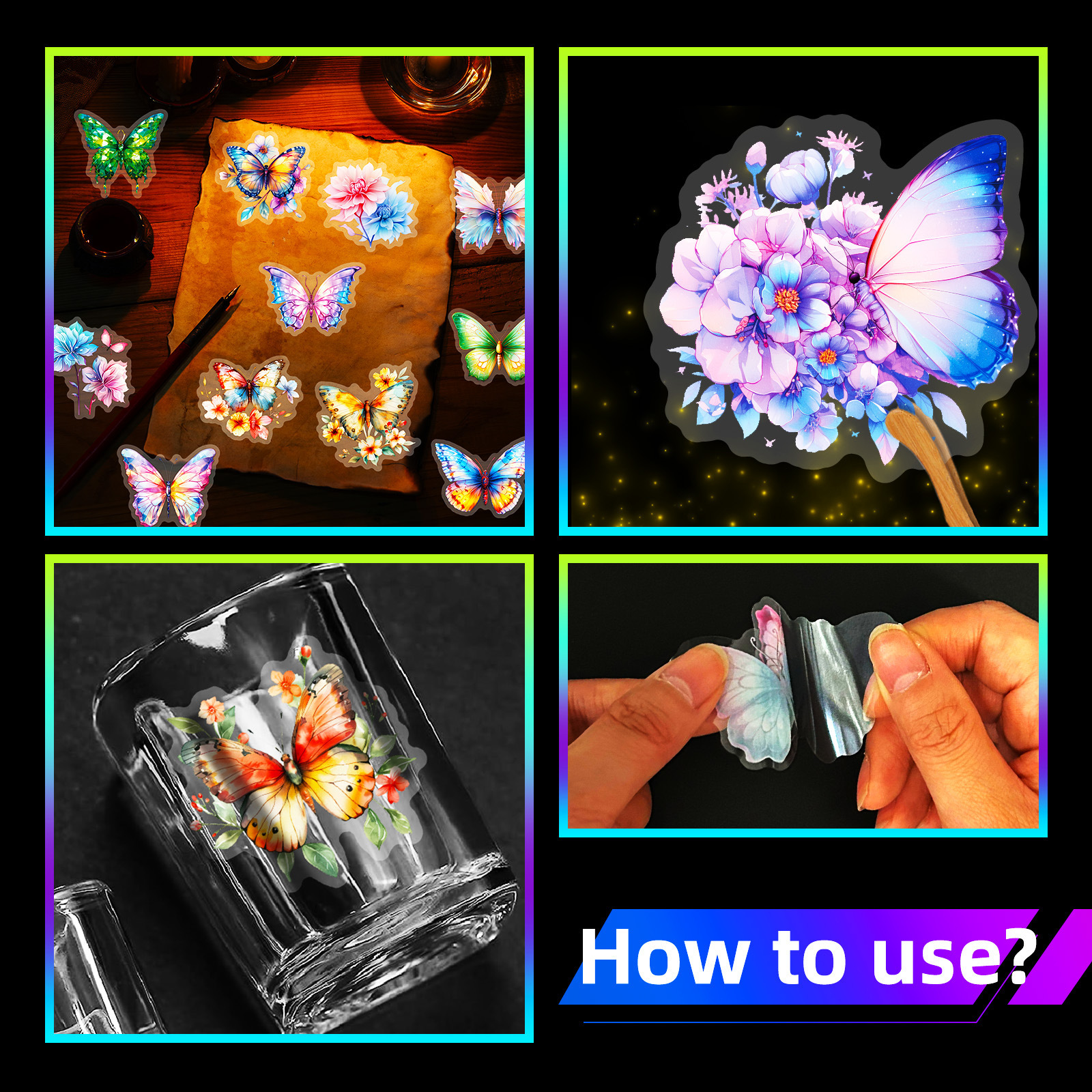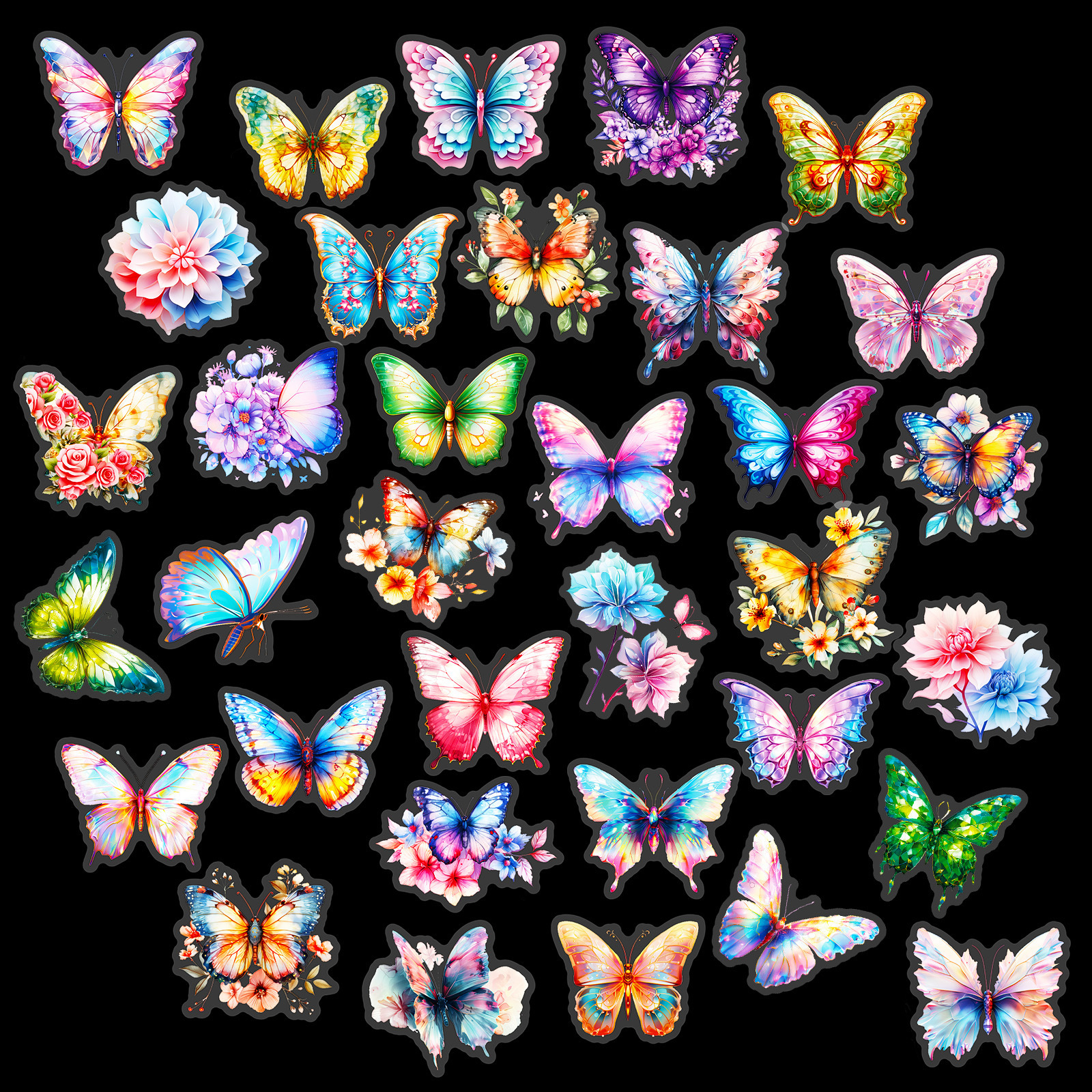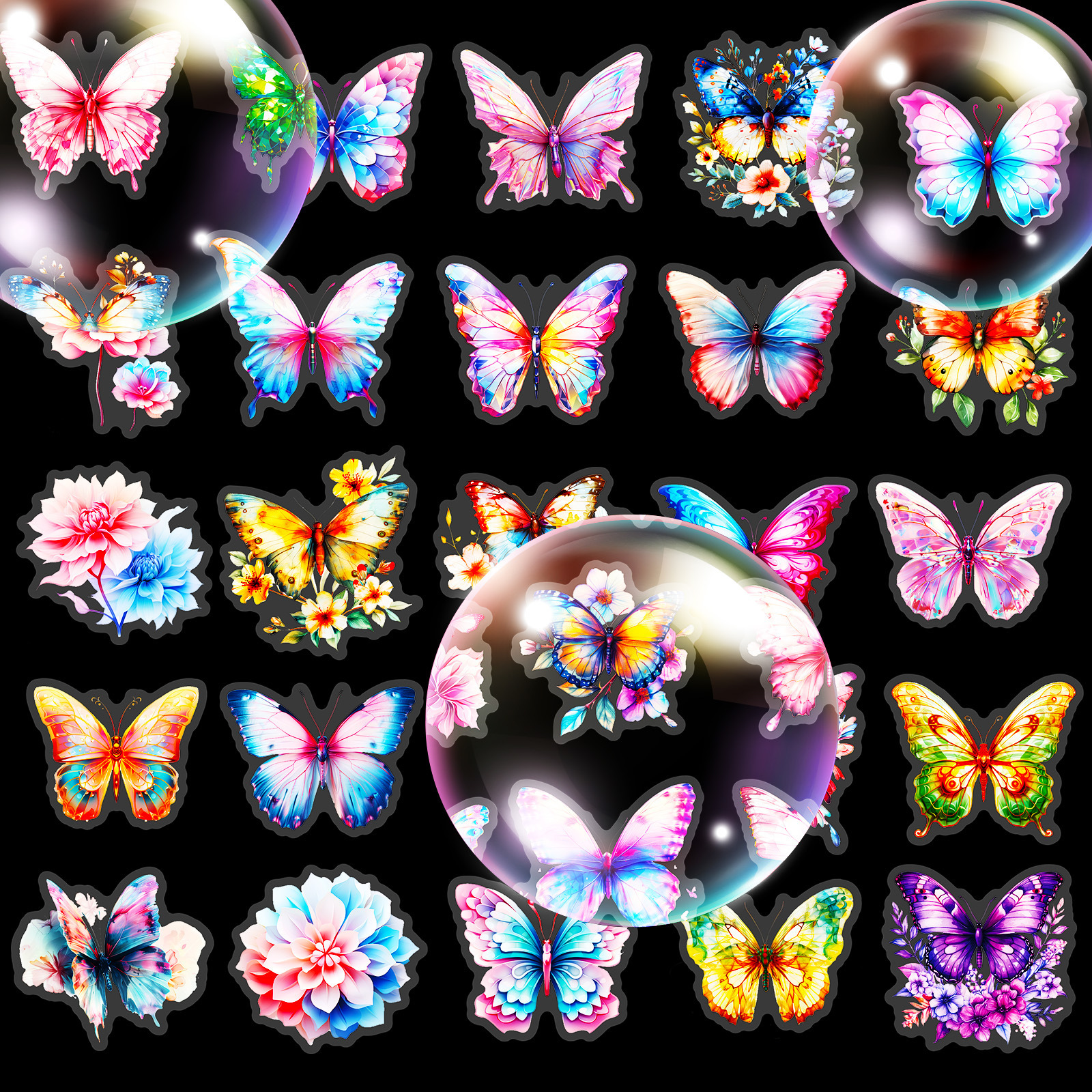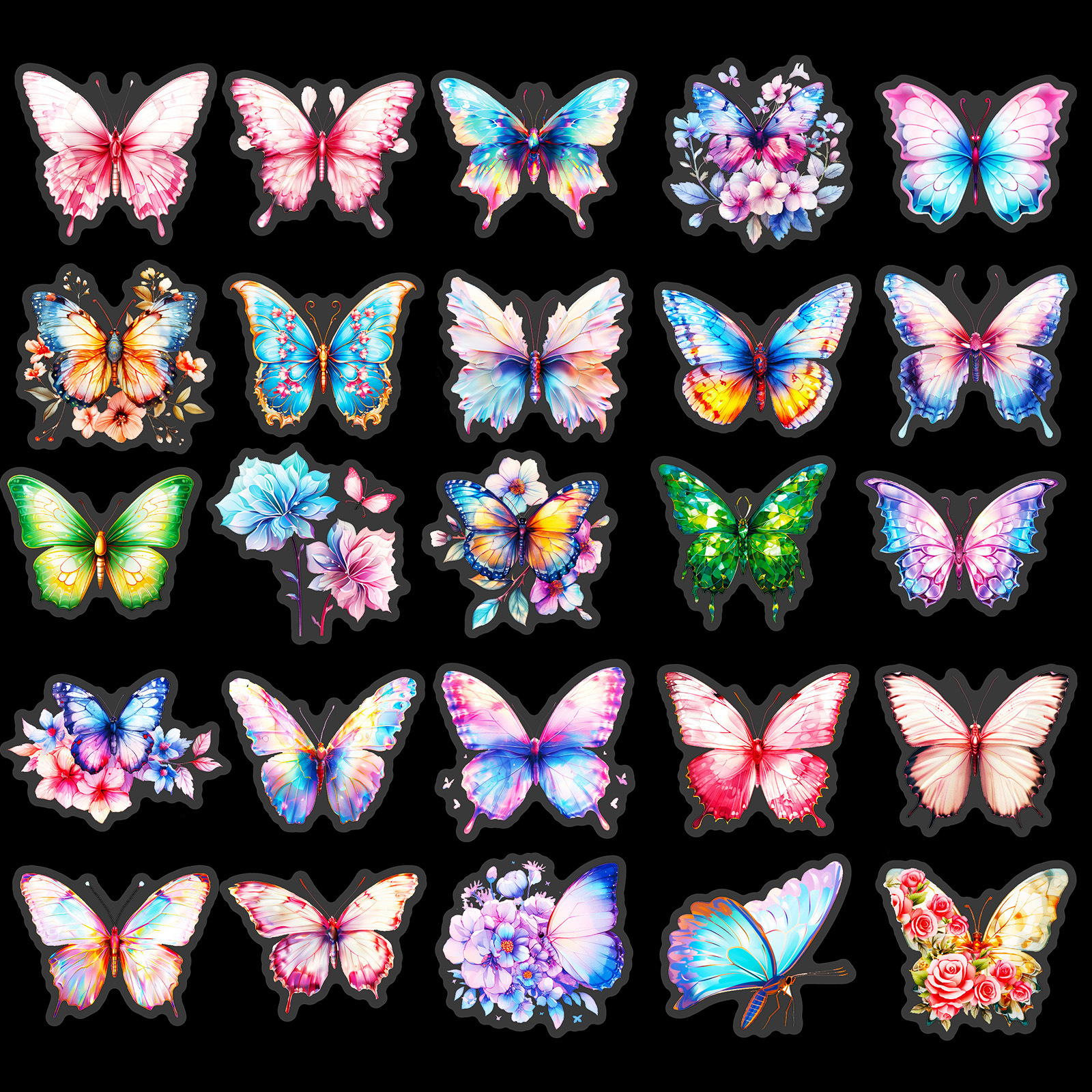 50 애완 동물 컬러 나비 스티커 방수 스티커 DIY 워터 컵 스티커 휴대 전화 쉘 장식 귀여운 작은 스티커 나비 스티커스토어 가기