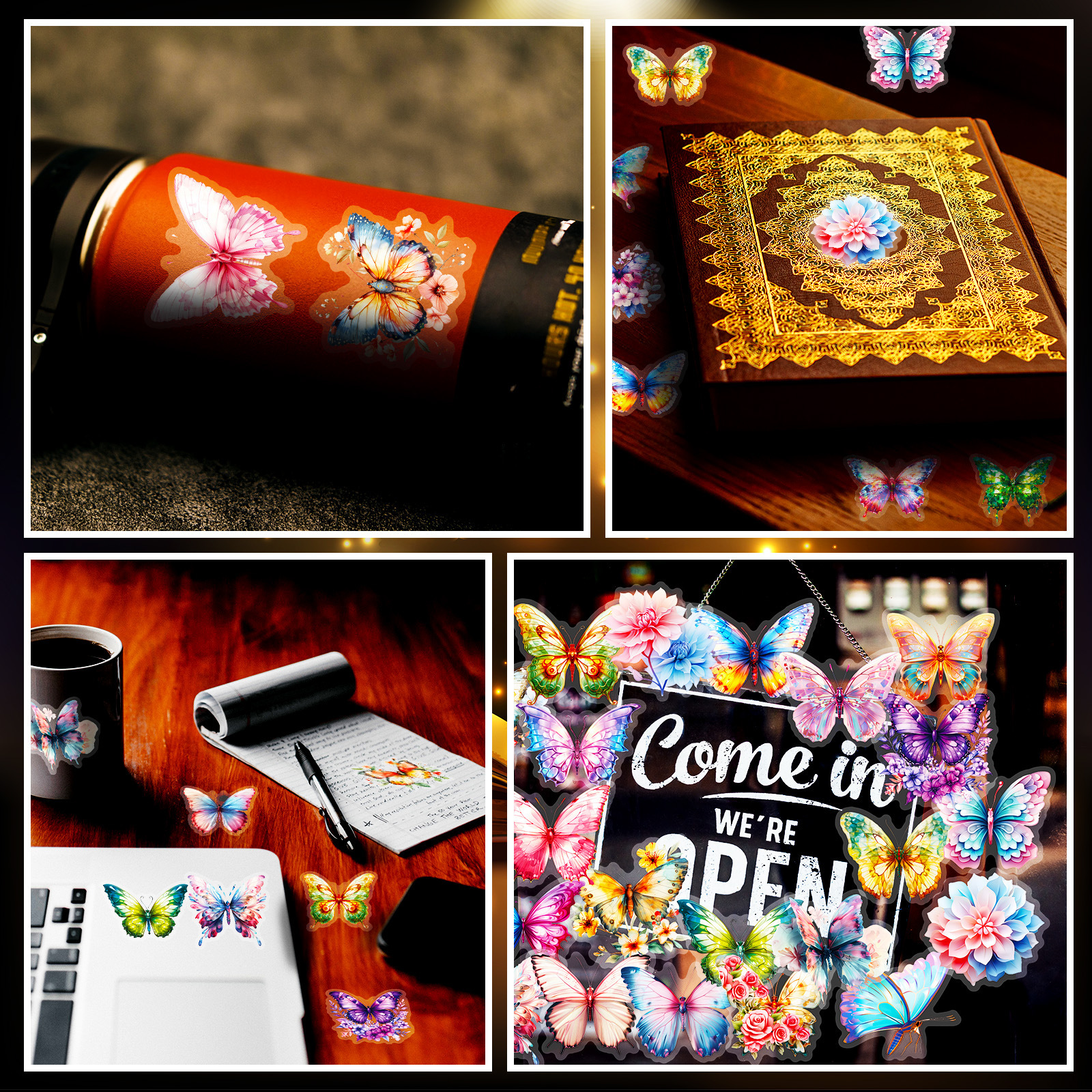 50 애완 동물 컬러 나비 스티커 방수 스티커 DIY 워터 컵 스티커 휴대 전화 쉘 장식 귀여운 작은 스티커 나비 스티커