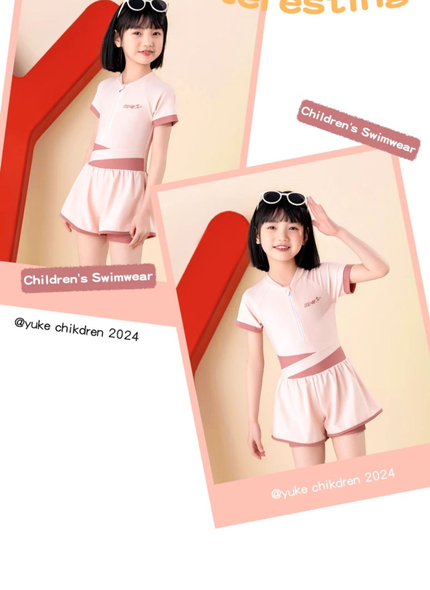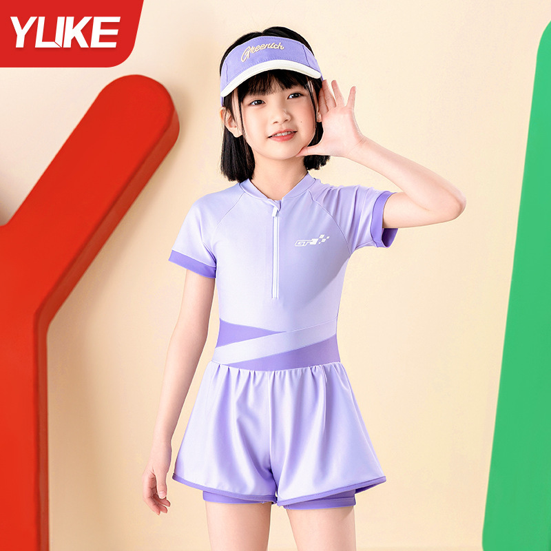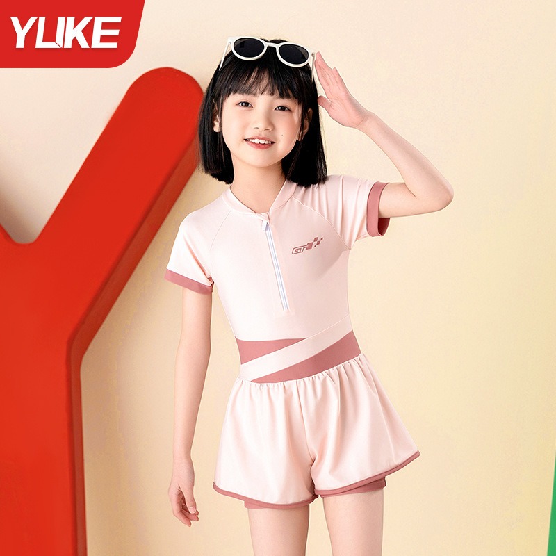 어린이 수영복 여아 원피스 플랫 앵글 수영복 2024 여름 새 선 스크린 빠른 건조 중형 어린이 수영복 도매스토어 가기