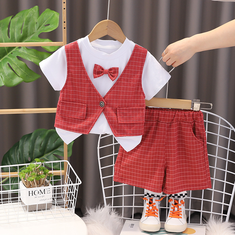 어린이 세트 세트 여름 호스트 플라워 보이의 원피스 한 살짜리 소년 아기 생일 세트