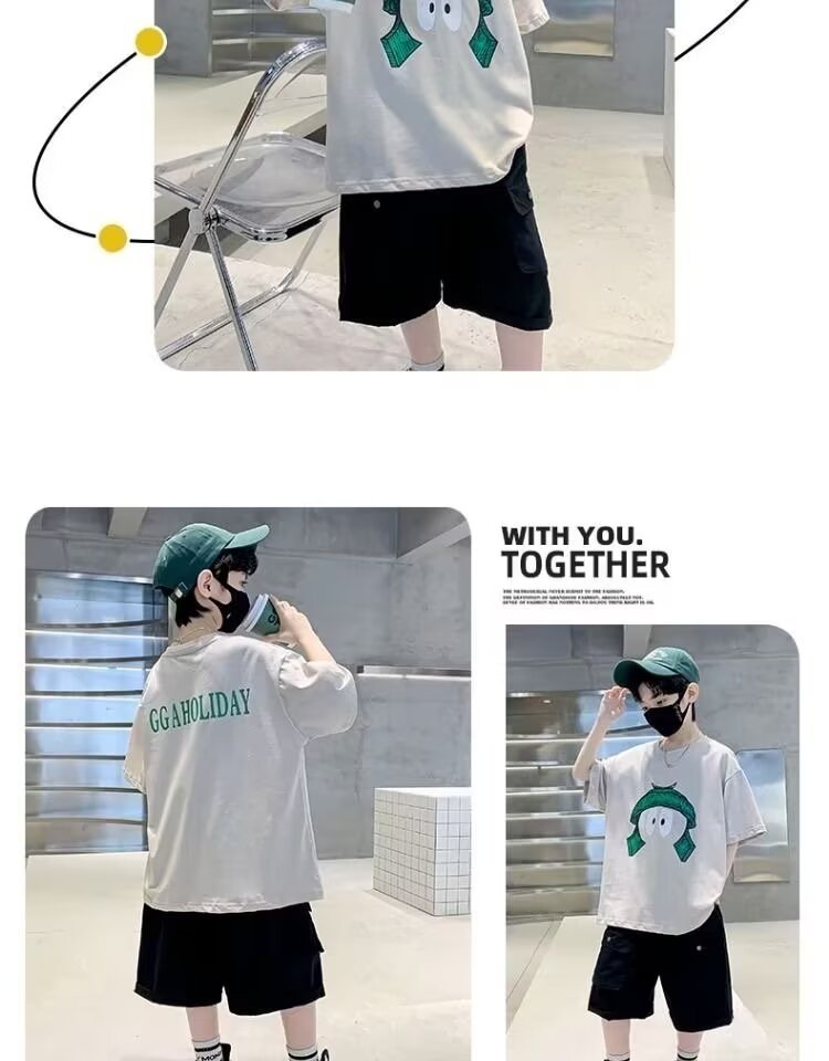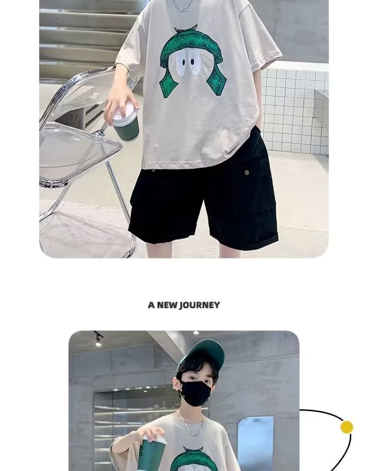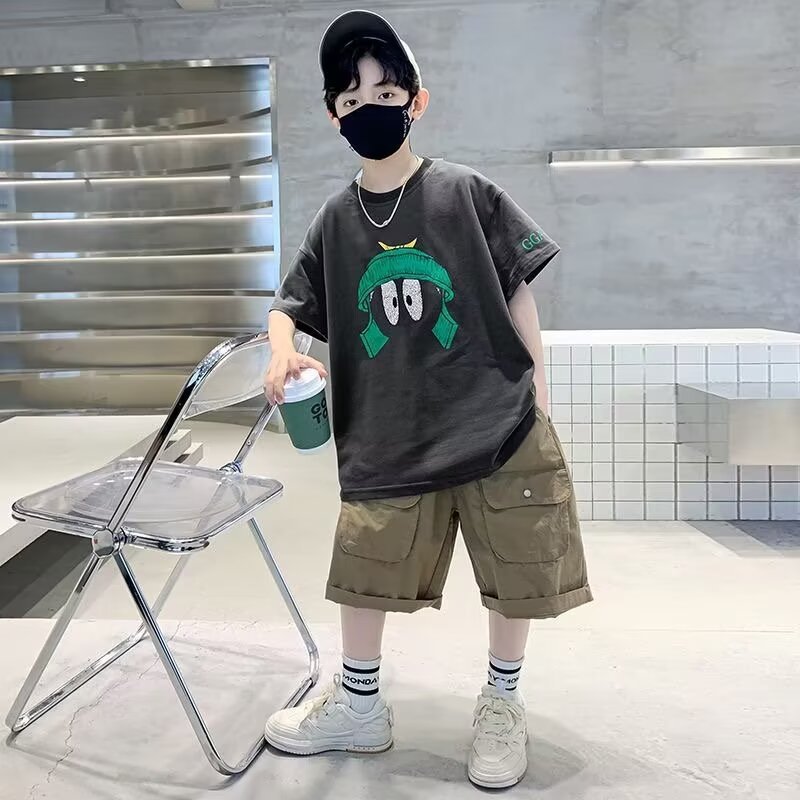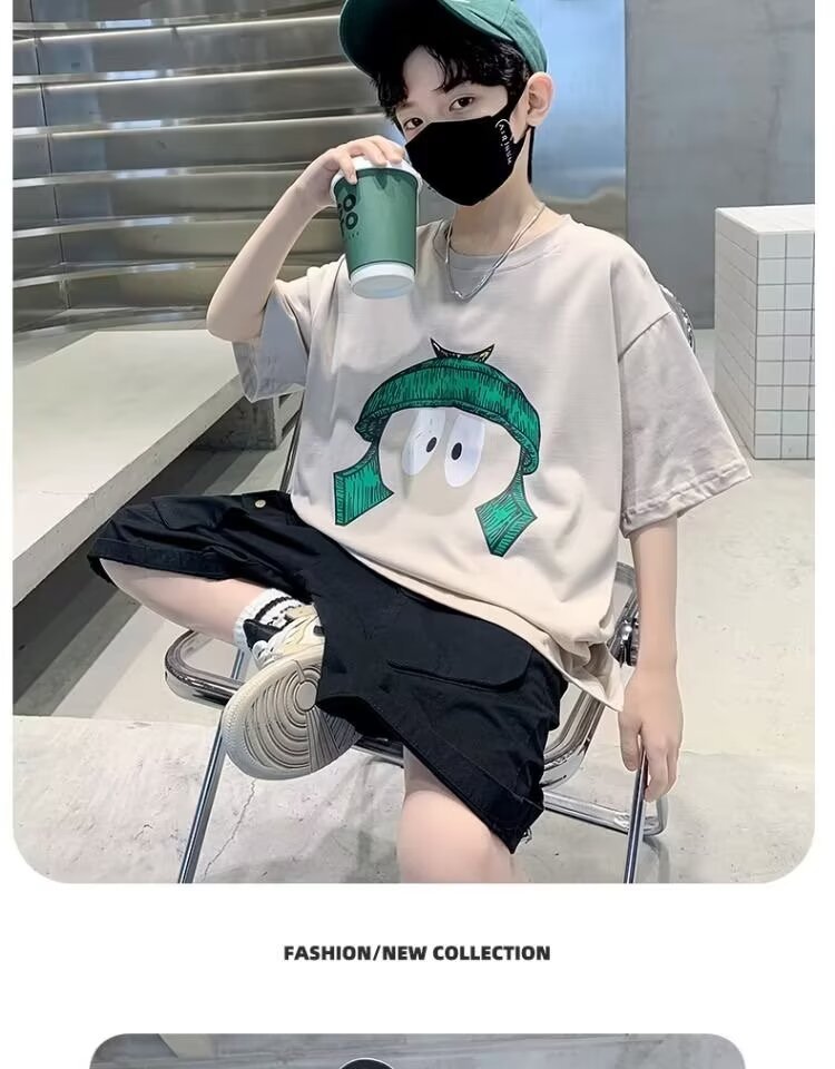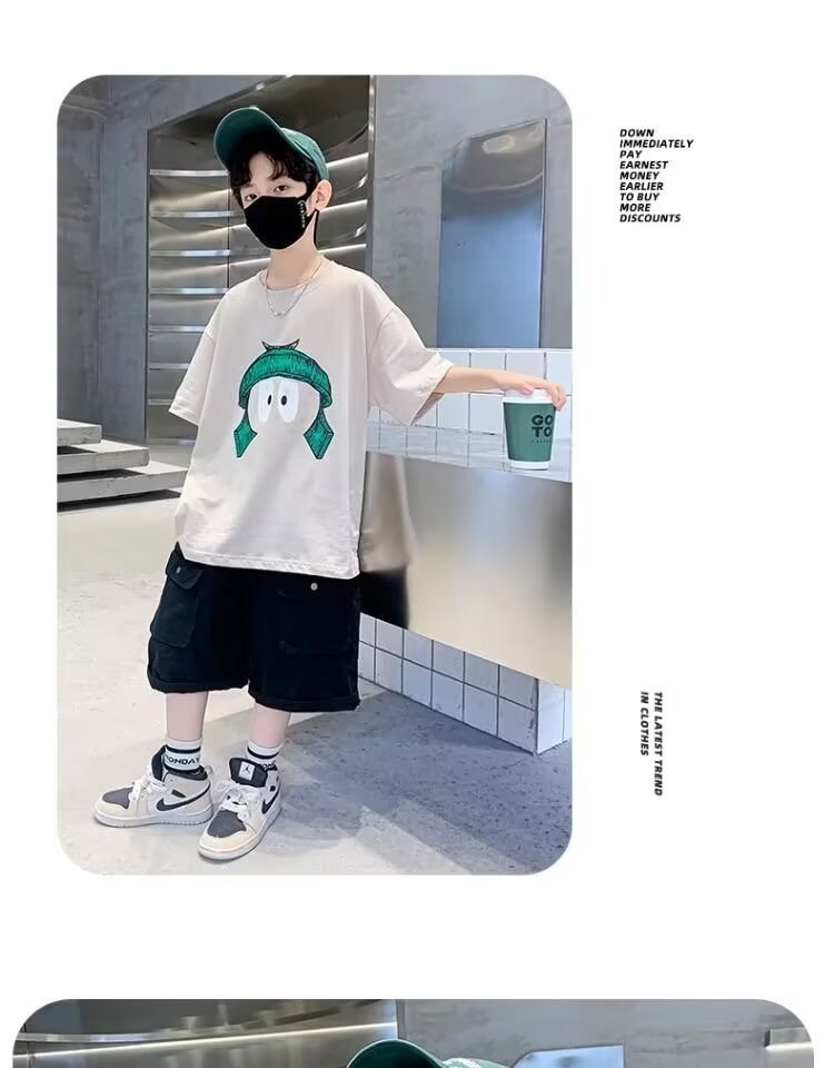 2024 년 새로운 여름 스포츠 유행 소년 잘 생긴 길거리 조수 세트 그물 빨간 아동복 cuhk 소년 여름 의류스토어 가기