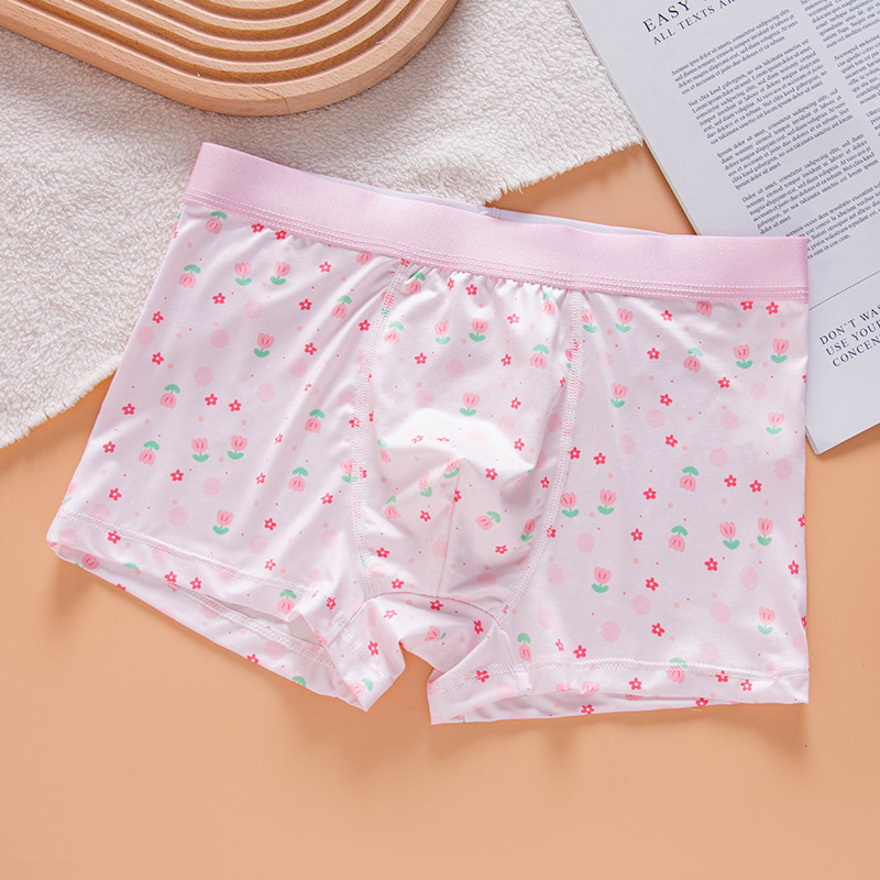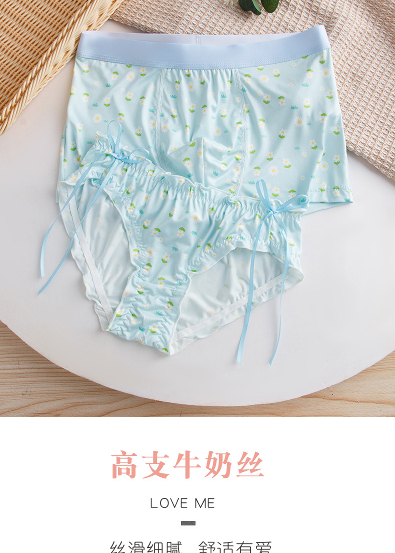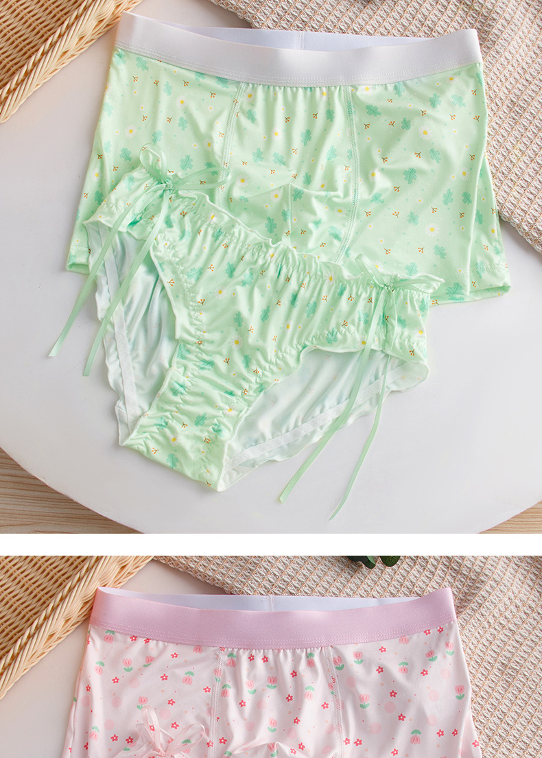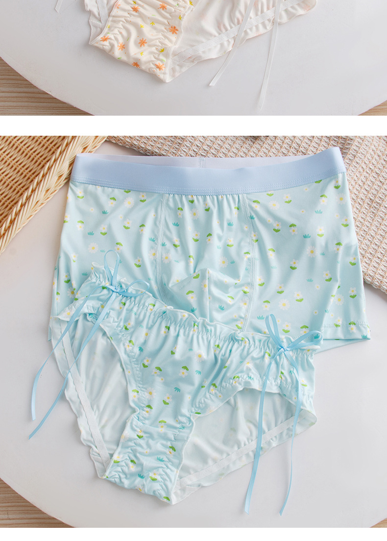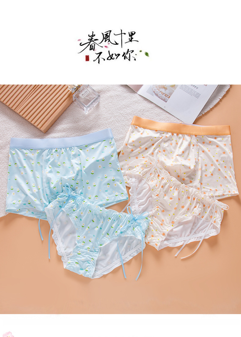 작은 꽃 커플 속옷 남자와 여자 2024 여름 새로운 귀여운 연인 남자 복서 여자의 삼각형 반바지 도매스토어 가기
