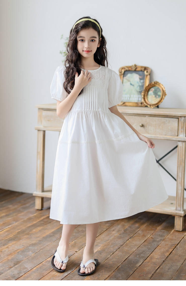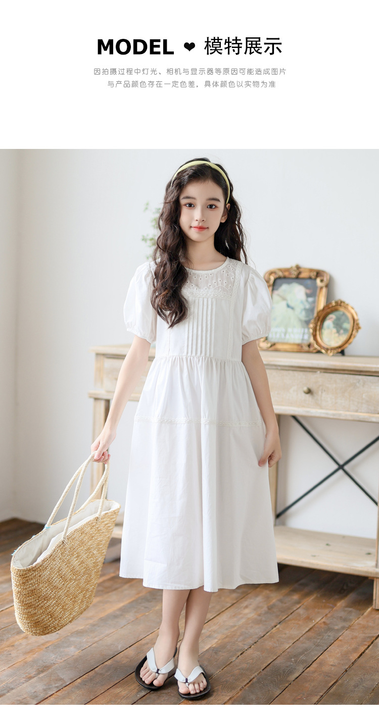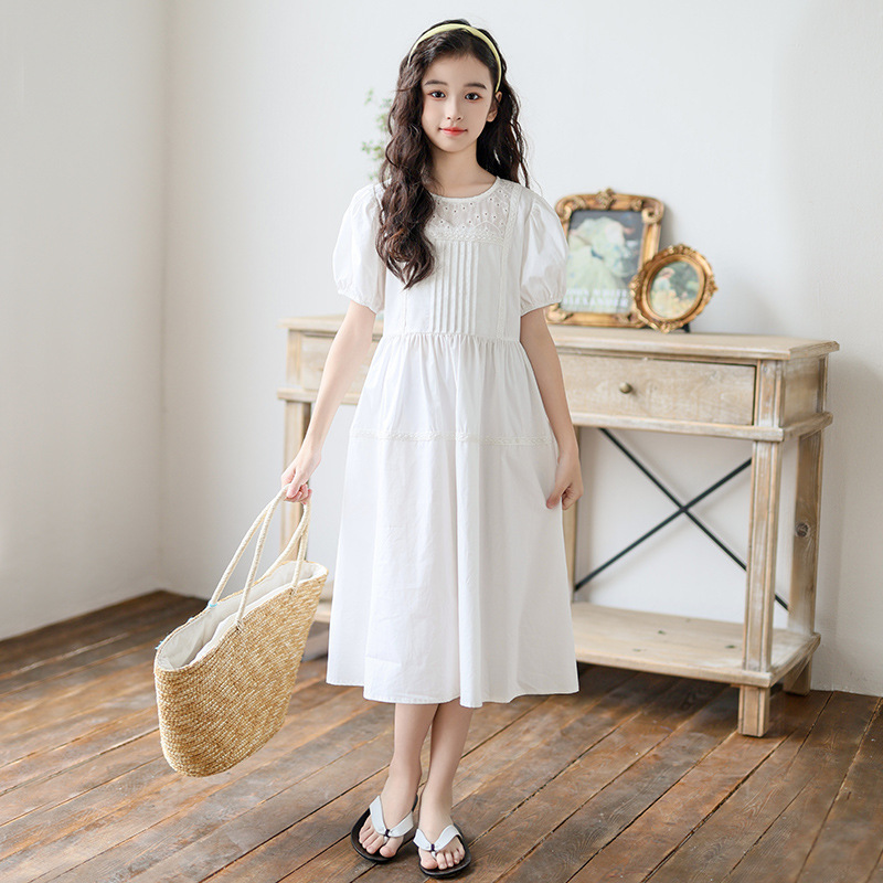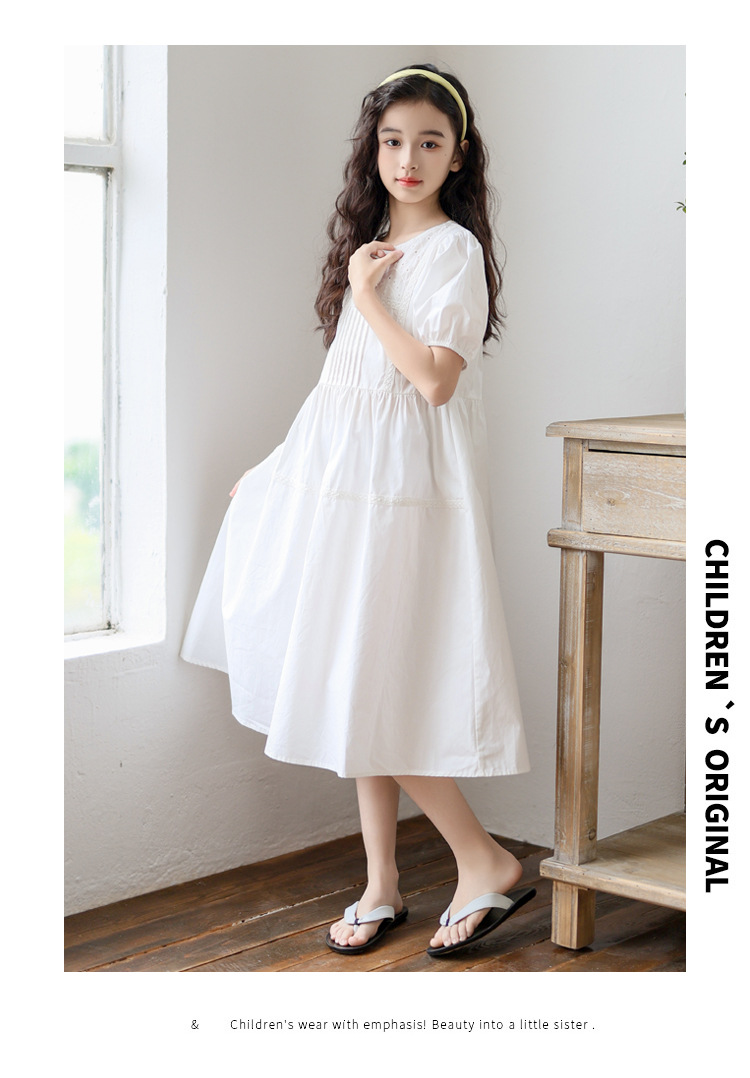 어린이 소녀 원피스 여름 리본 바느질 목화 스커트 2024 새로운 어린이 어린 소녀 어린이 원피스스토어 가기