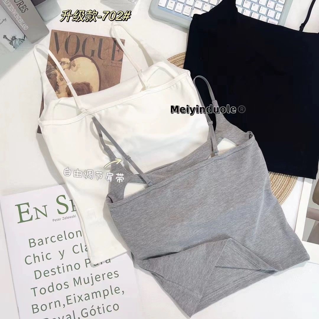 2024 새로운 여름 카미 솔 여성 스파이스 소녀 솔리드 컬러 아름다운 백 원피스 가슴 패드 외부 착용 튜브 탑베이스 셔츠스토어 가기