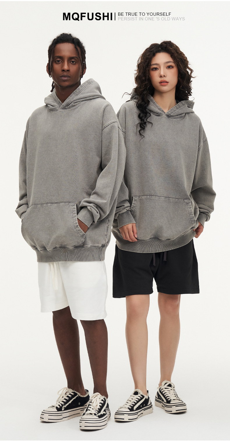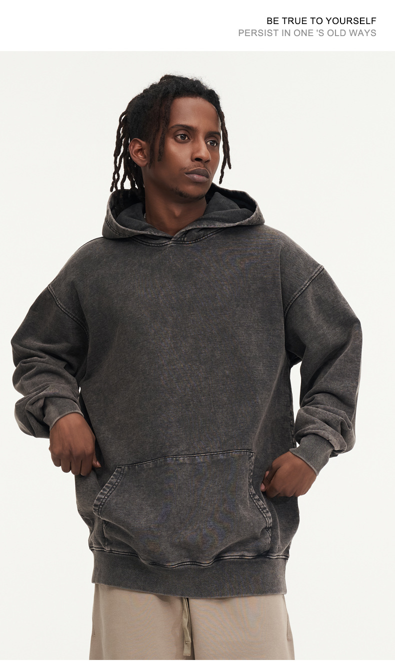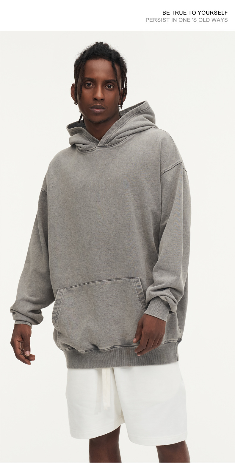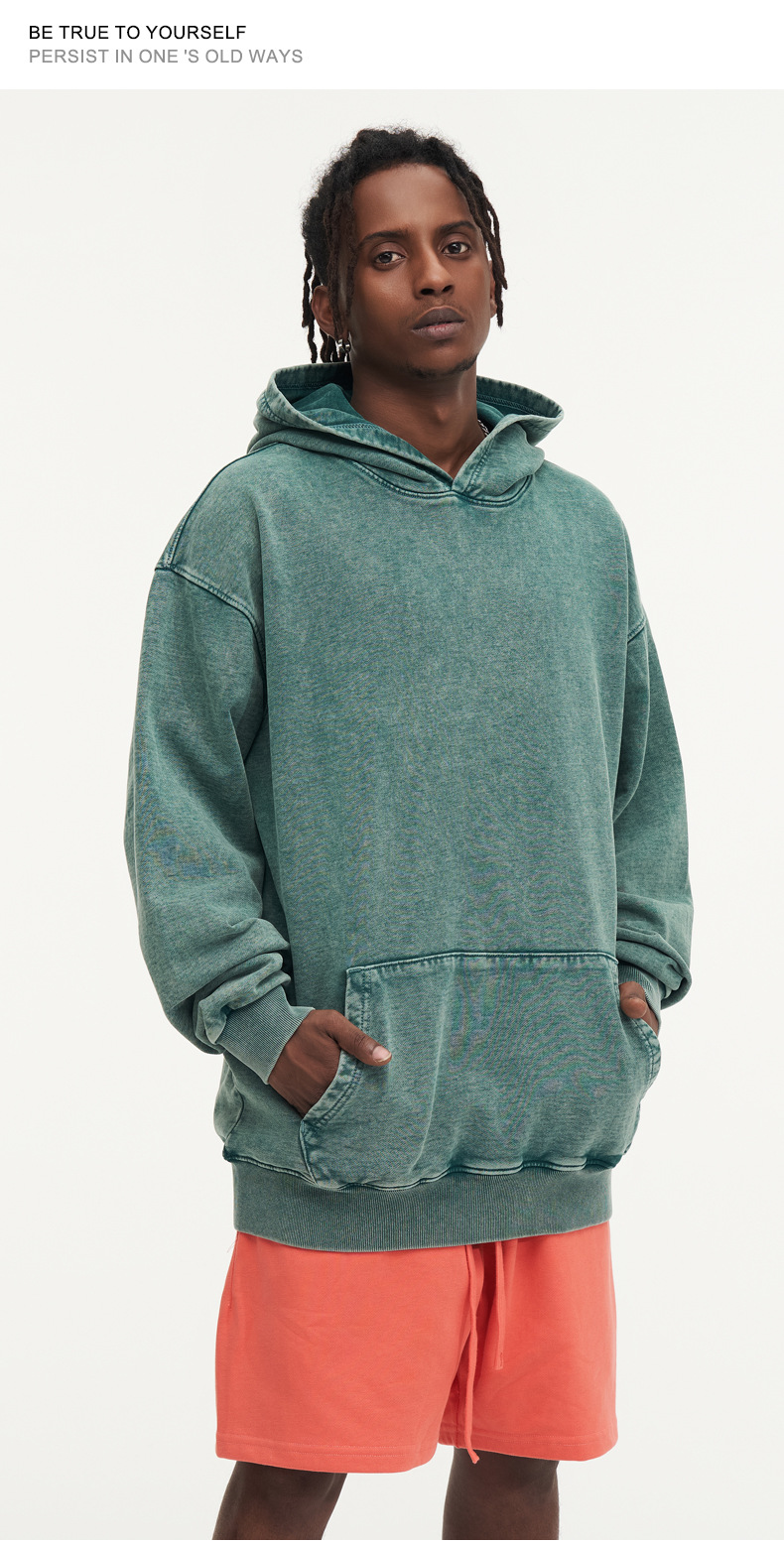맞춤형 미국식 425g 헤비급 후드 티셔츠 워시드 스노우플레이크 남성용 스웨트셔츠 유럽 및 미국 대형 사이즈스토어 가기