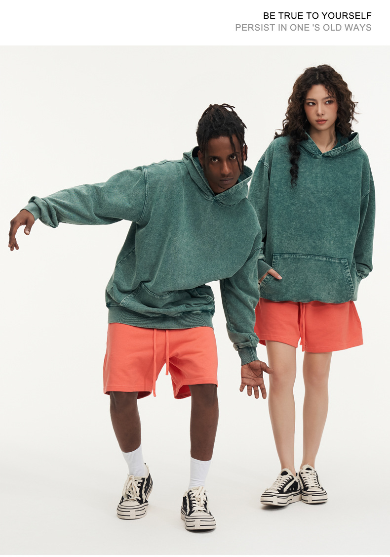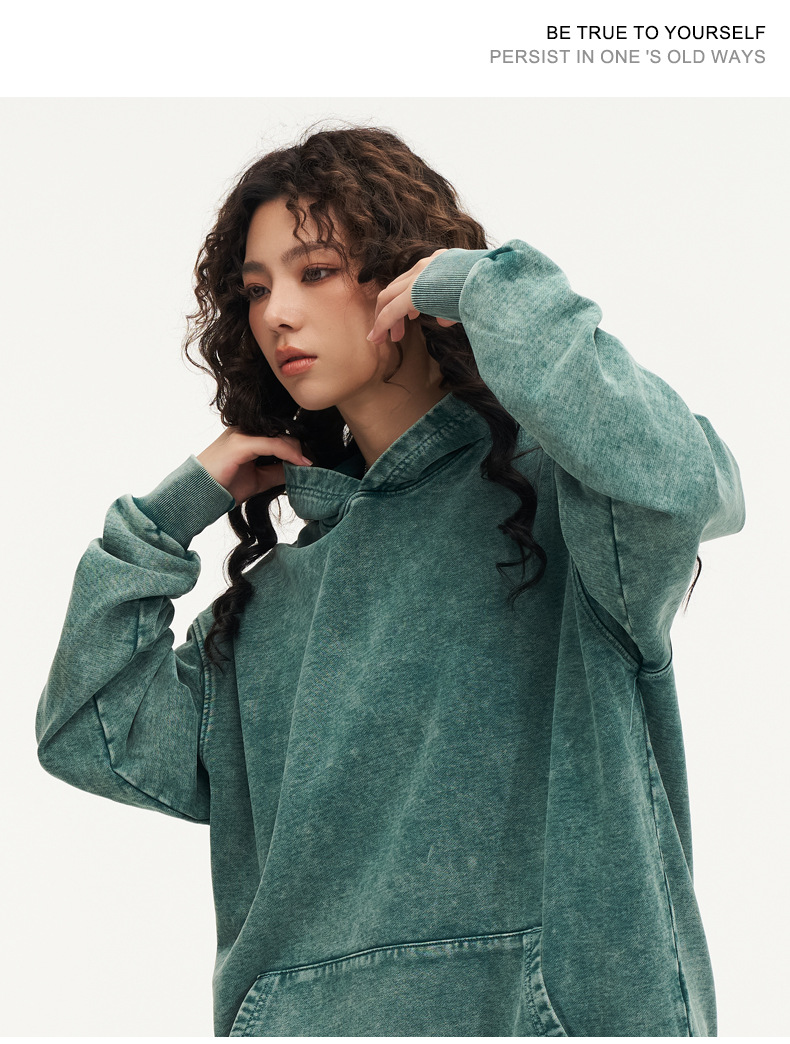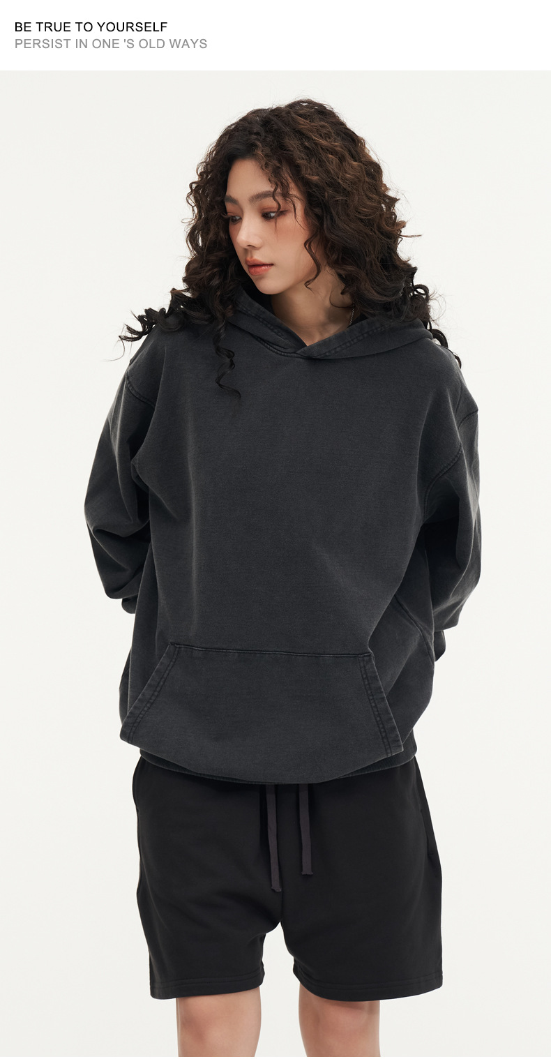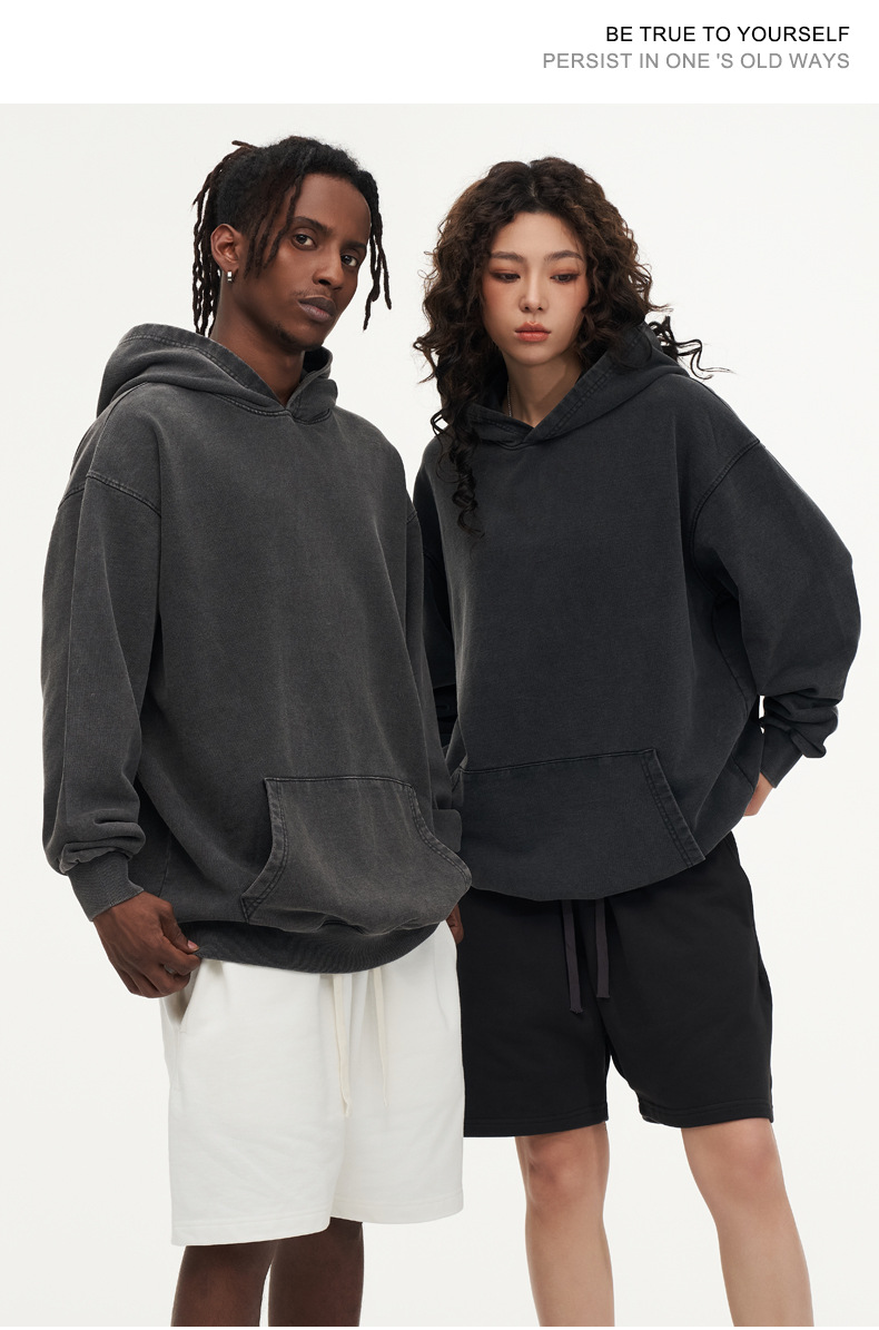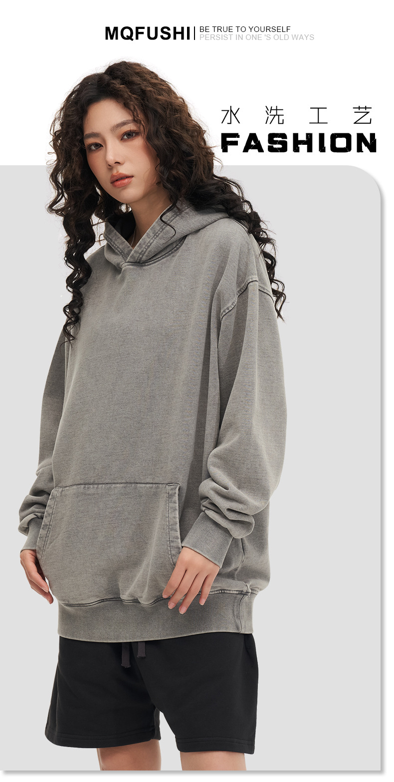 맞춤형 미국식 425g 헤비급 후드 티셔츠 워시드 스노우플레이크 남성용 스웨트셔츠 유럽 및 미국 대형 사이즈스토어 가기