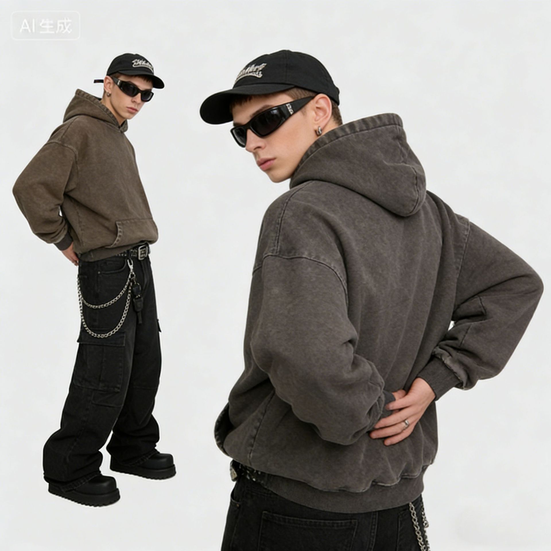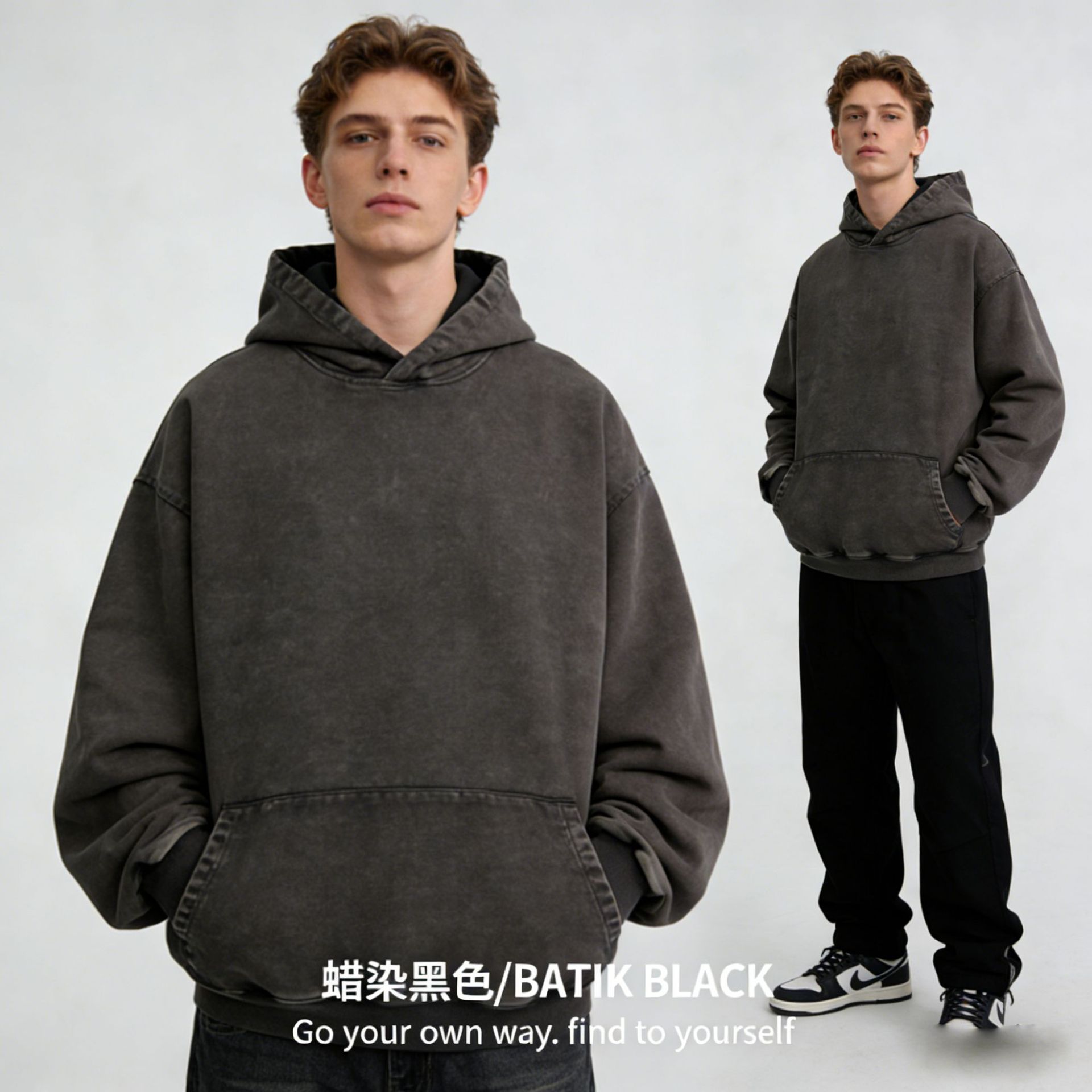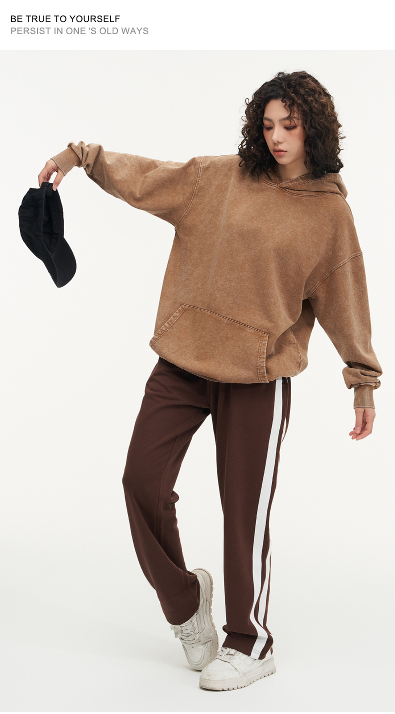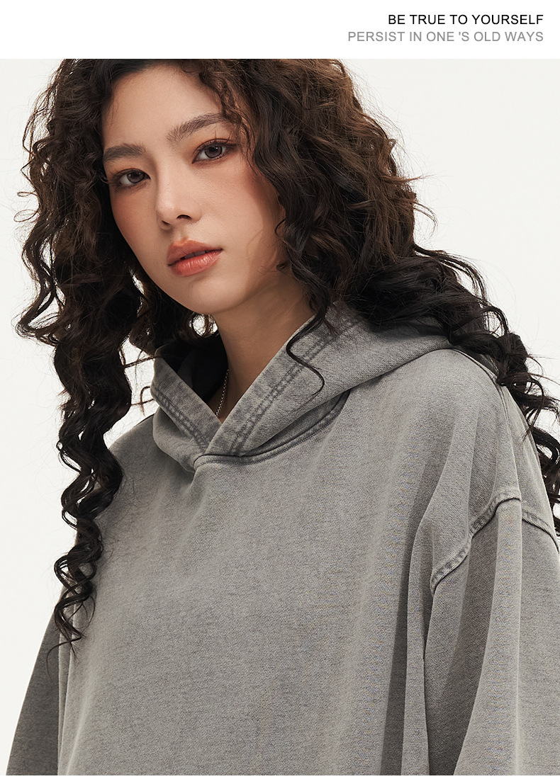 맞춤형 미국식 425g 헤비급 후드 티셔츠 워시드 스노우플레이크 남성용 스웨트셔츠 유럽 및 미국 대형 사이즈스토어 가기