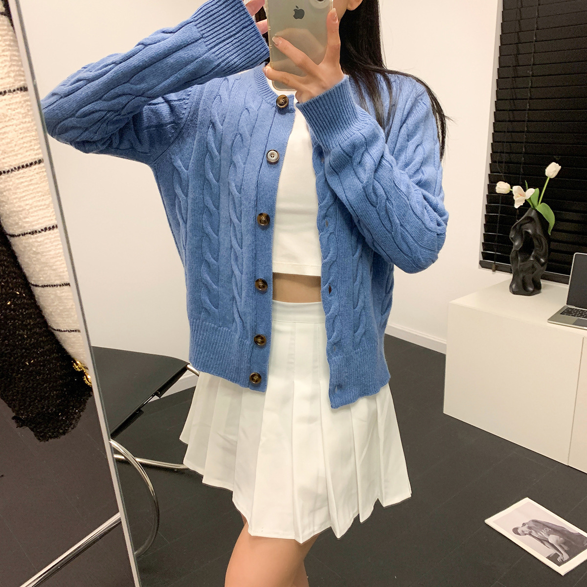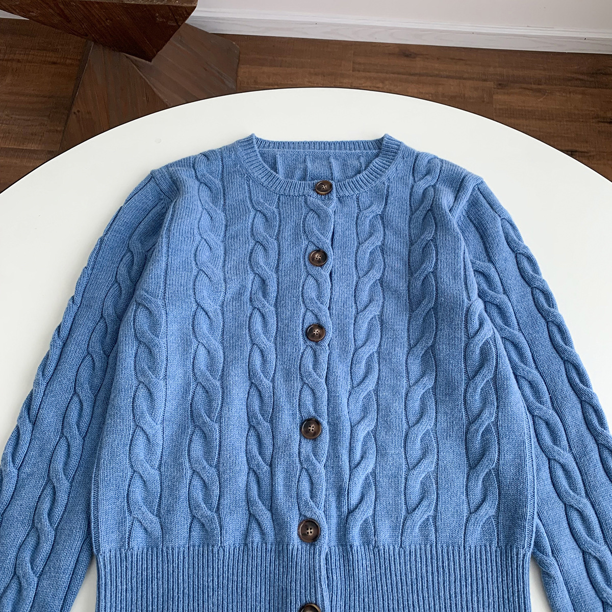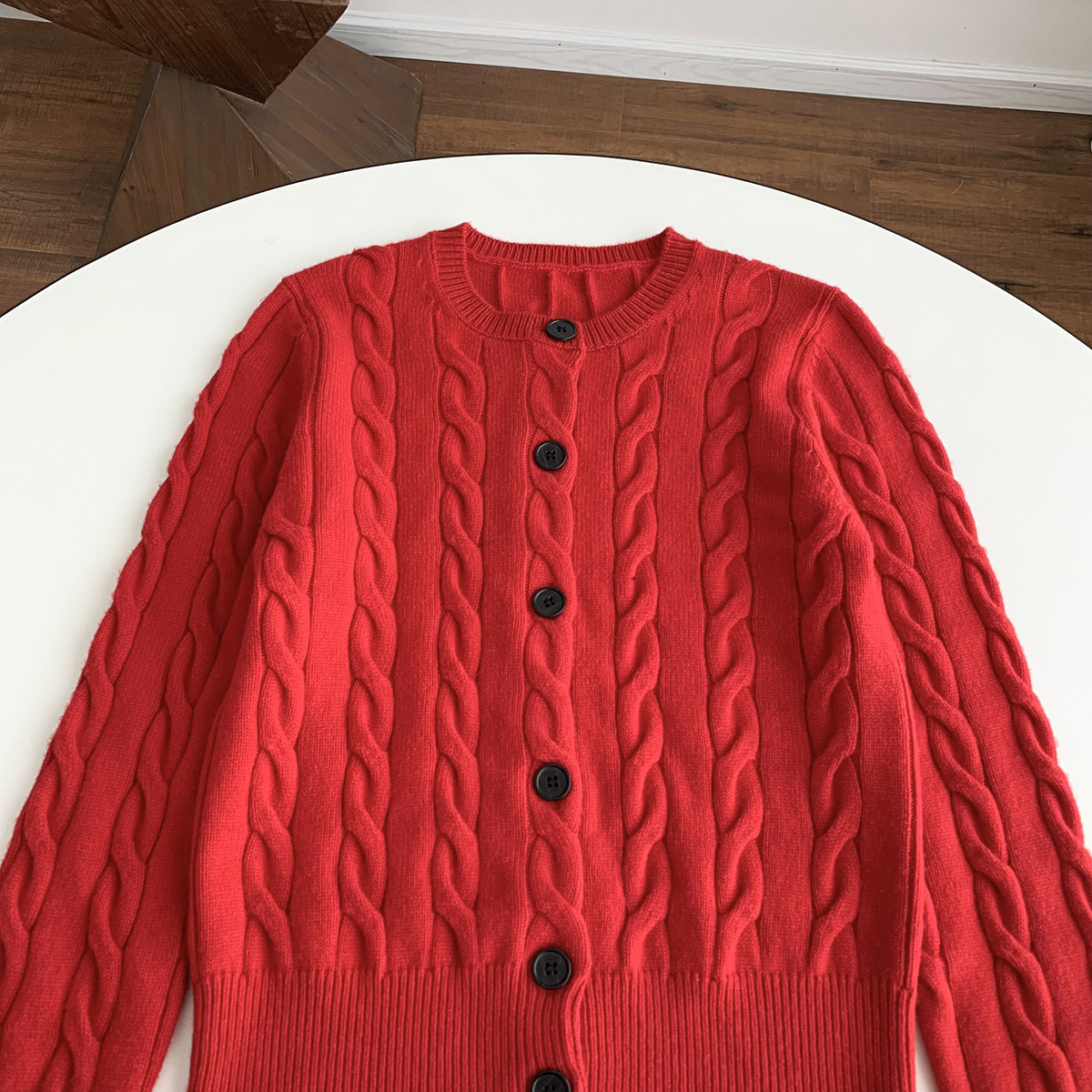 Rl Raf 자수 트위스트 크루 넥 스웨터 여성 카디건 우아한 통근 울 니트 여성용 짧은 두꺼운 재킷