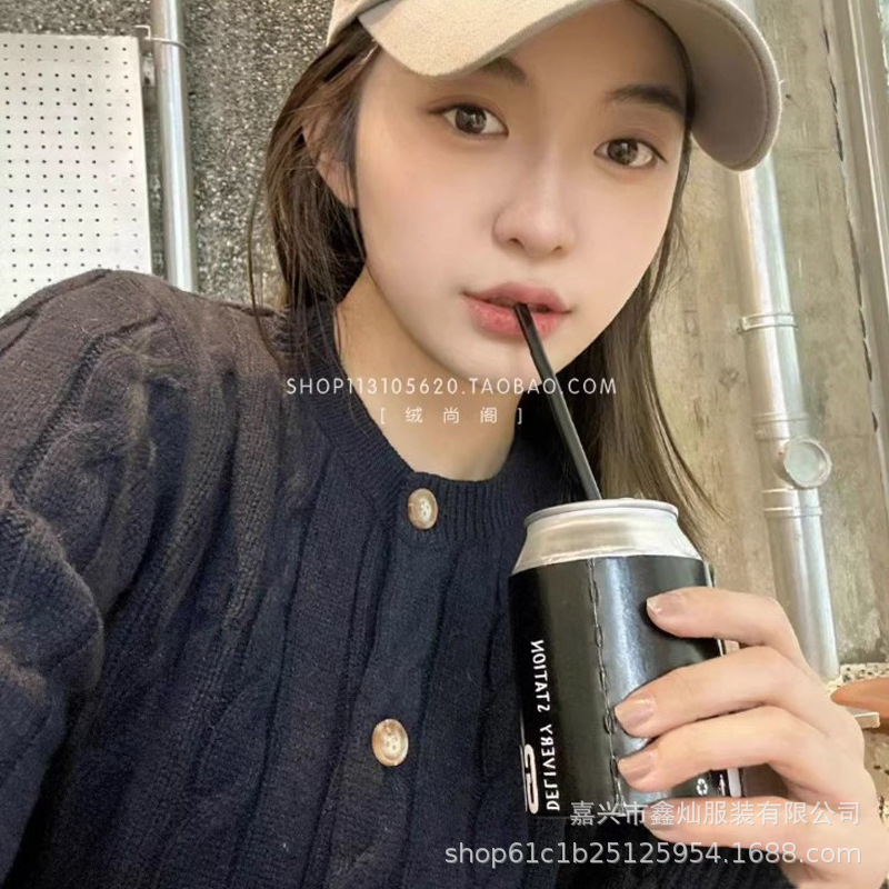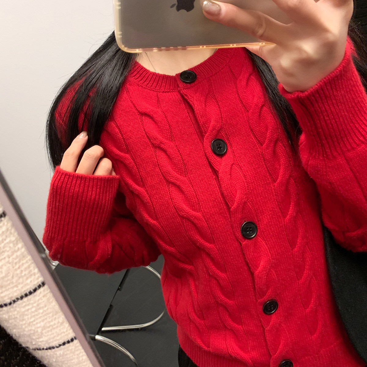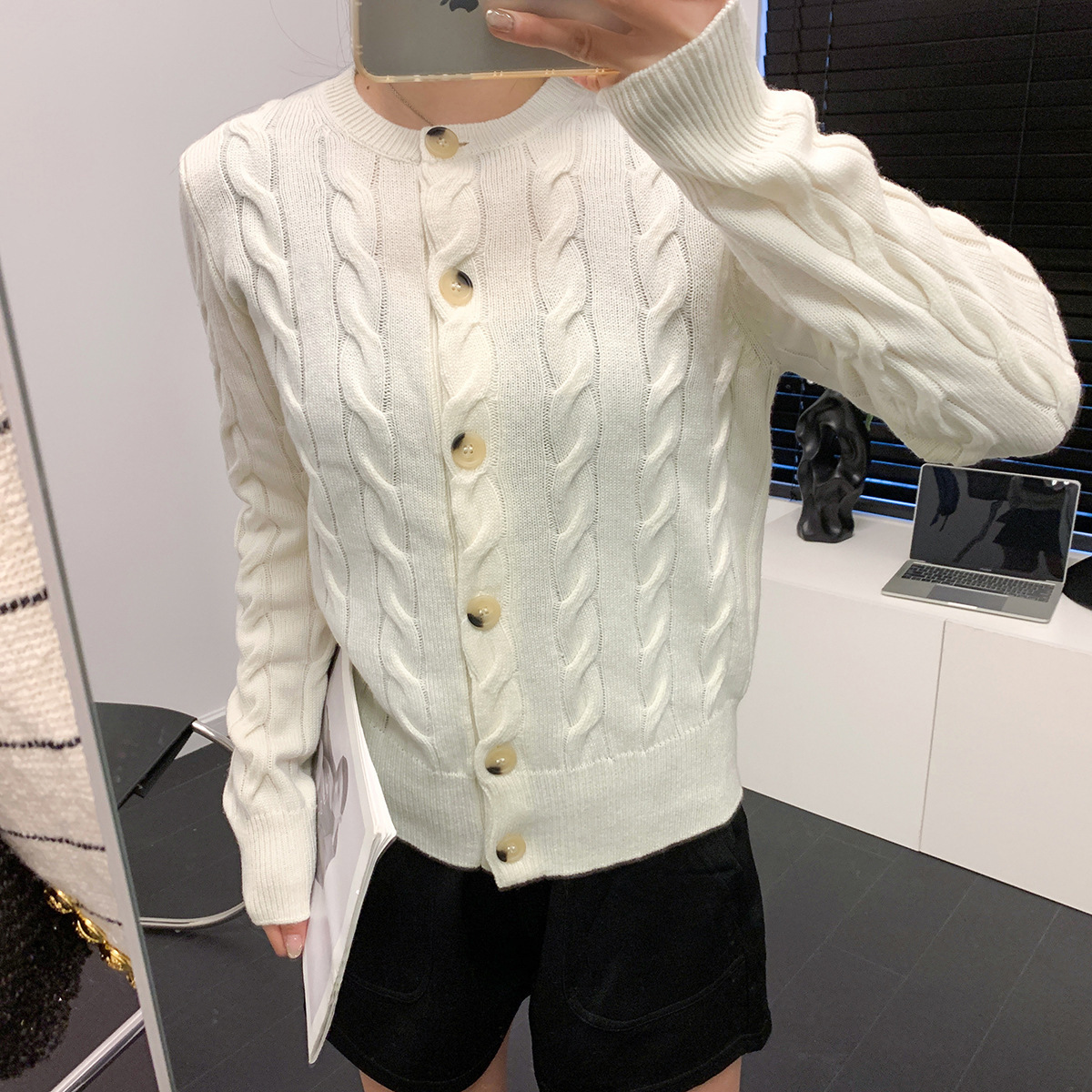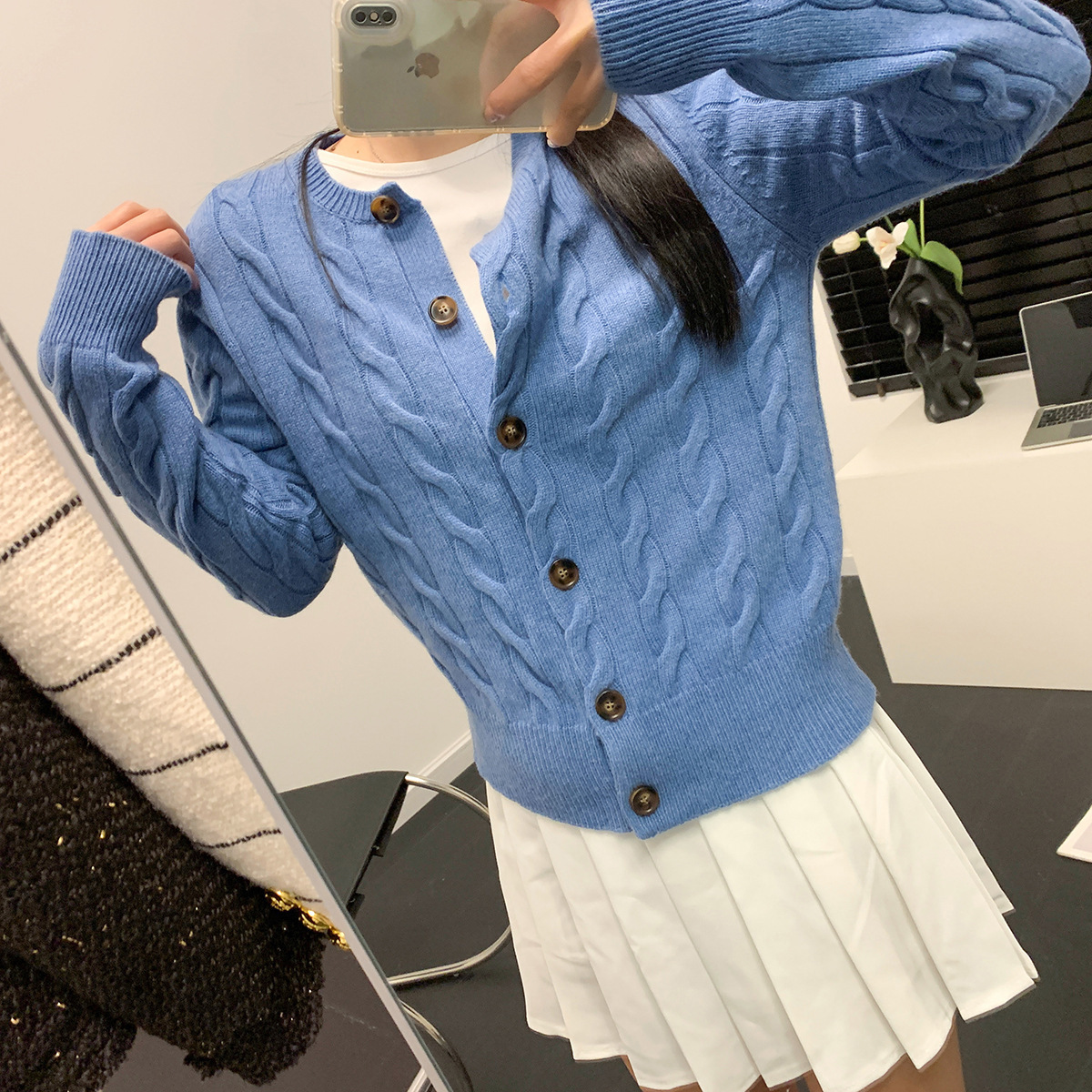 Rl Raf 자수 트위스트 크루 넥 스웨터 여성 카디건 우아한 통근 울 니트 여성용 짧은 두꺼운 재킷