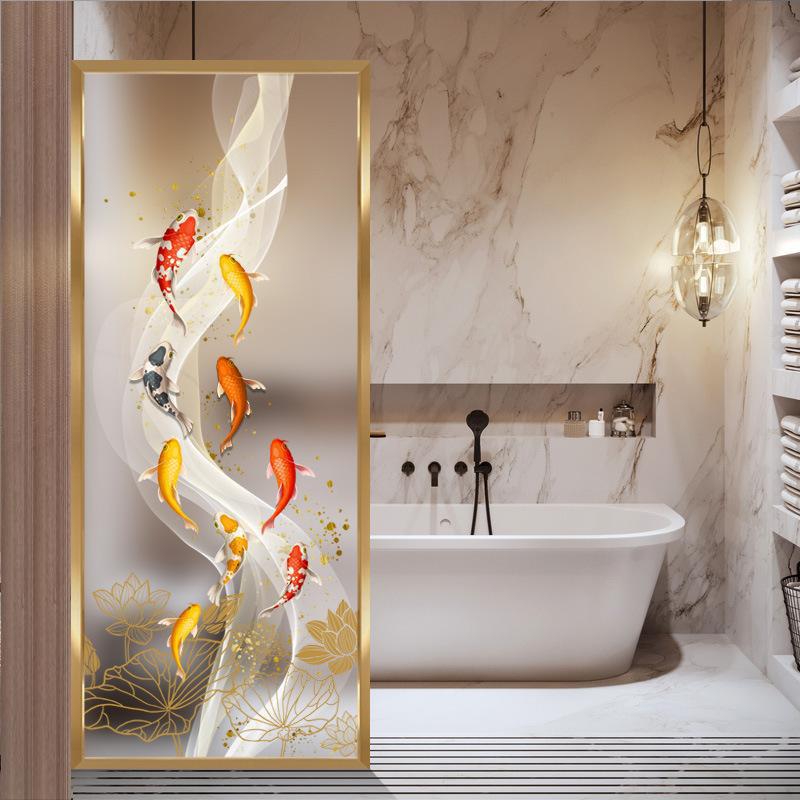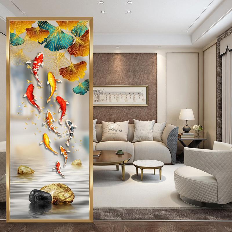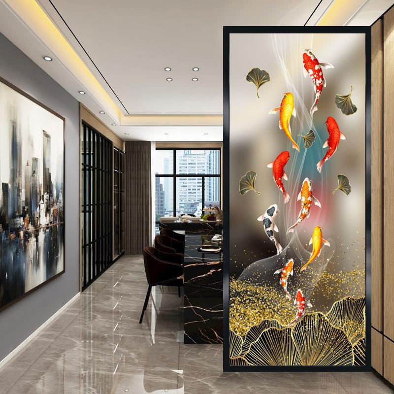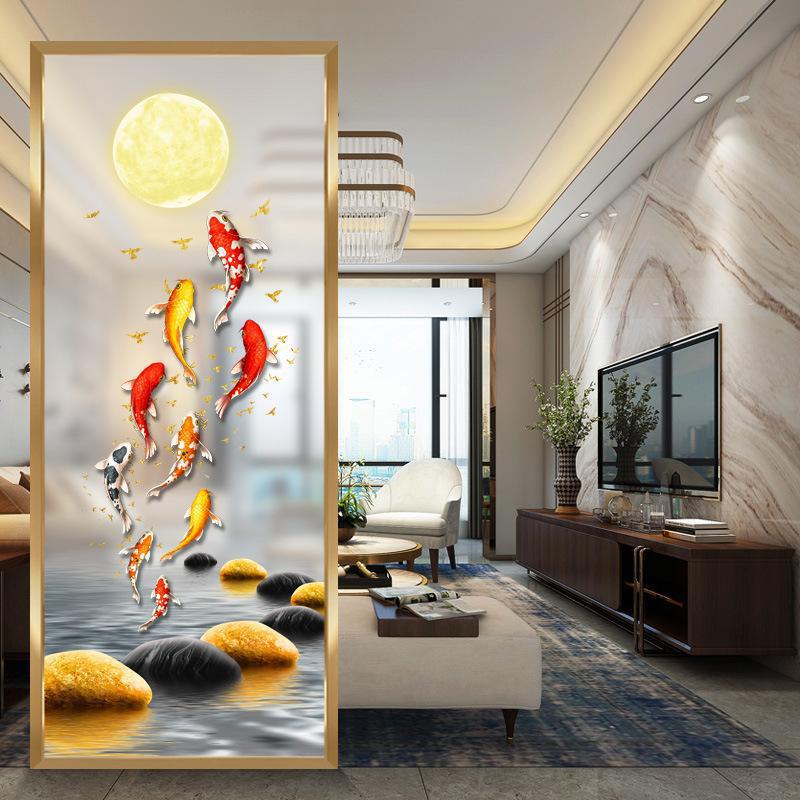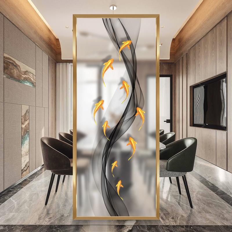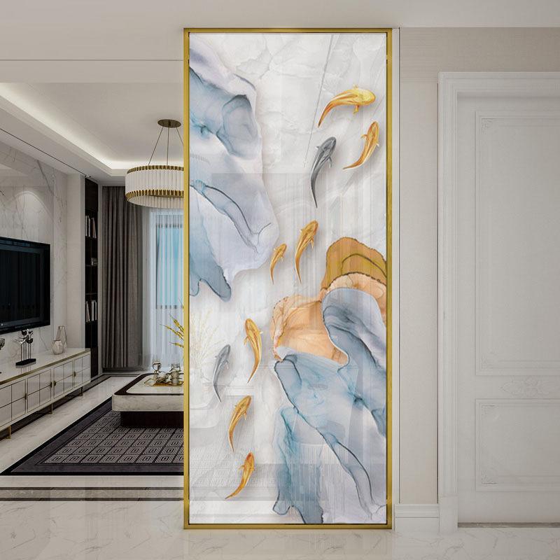 예술적 유리 파티션 빛 럭셔리 아이언 거실 홈 잉어 토템 장식 대피소 스크린 미스터리 닫기 도어 스테인레스 스틸