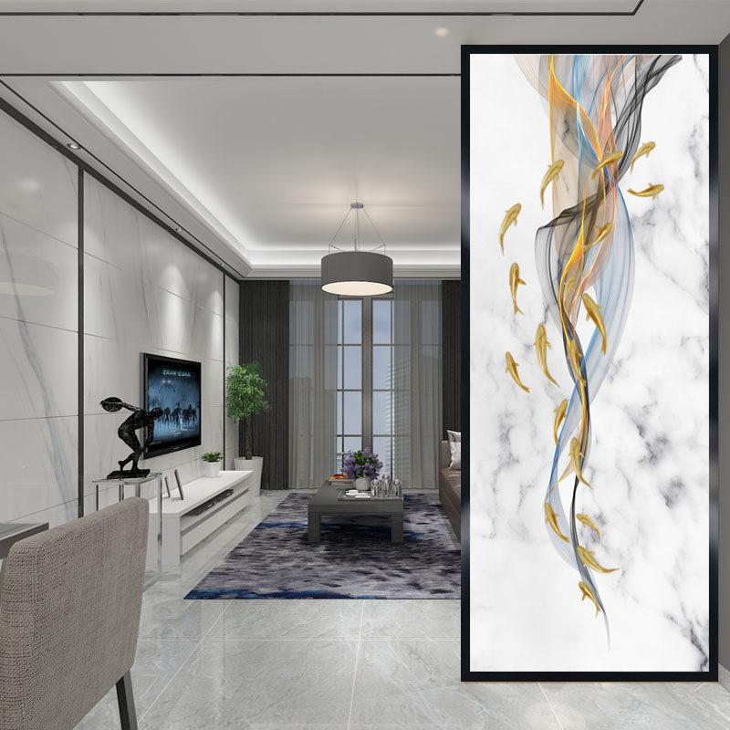 예술적 유리 파티션 빛 럭셔리 아이언 거실 홈 잉어 토템 장식 대피소 스크린 미스터리 닫기 도어 스테인레스 스틸스토어 가기