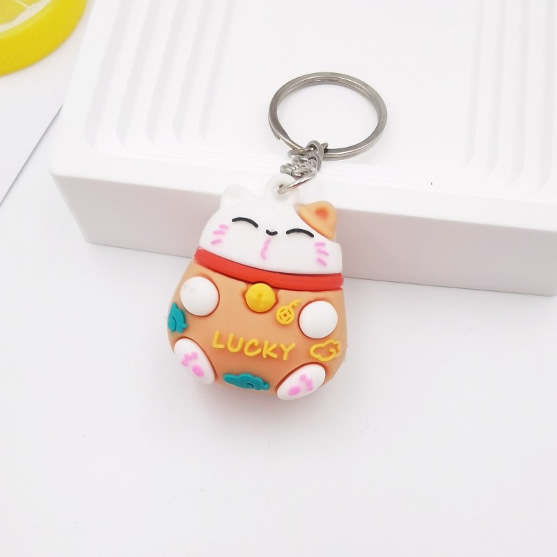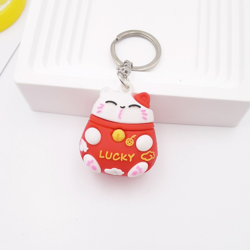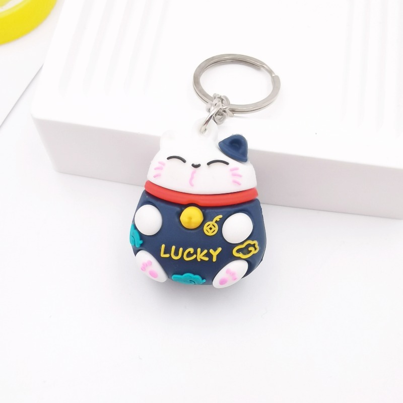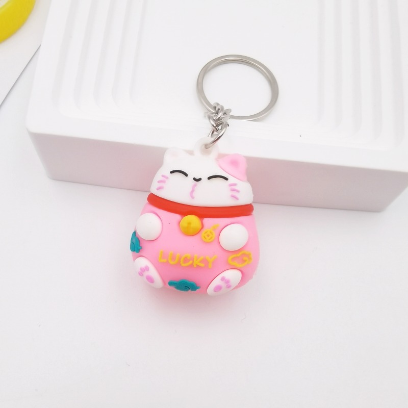만화 행운의 고양이 키 체인 펜던트 pvc 3 차원 인형 귀여운 커플 가방 장식품 실용적인 작은 선물