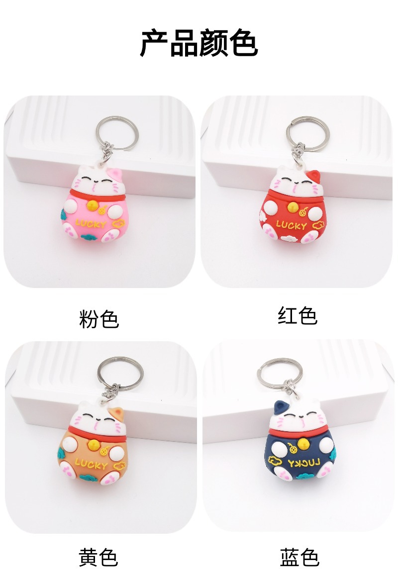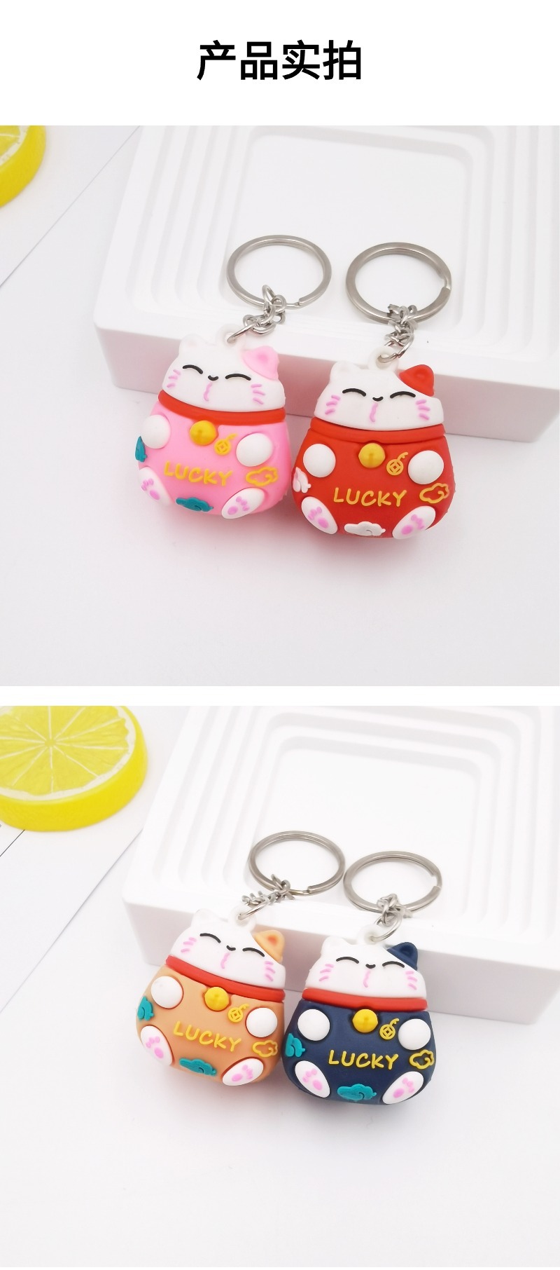 만화 행운의 고양이 키 체인 펜던트 pvc 3 차원 인형 귀여운 커플 가방 장식품 실용적인 작은 선물스토어 가기